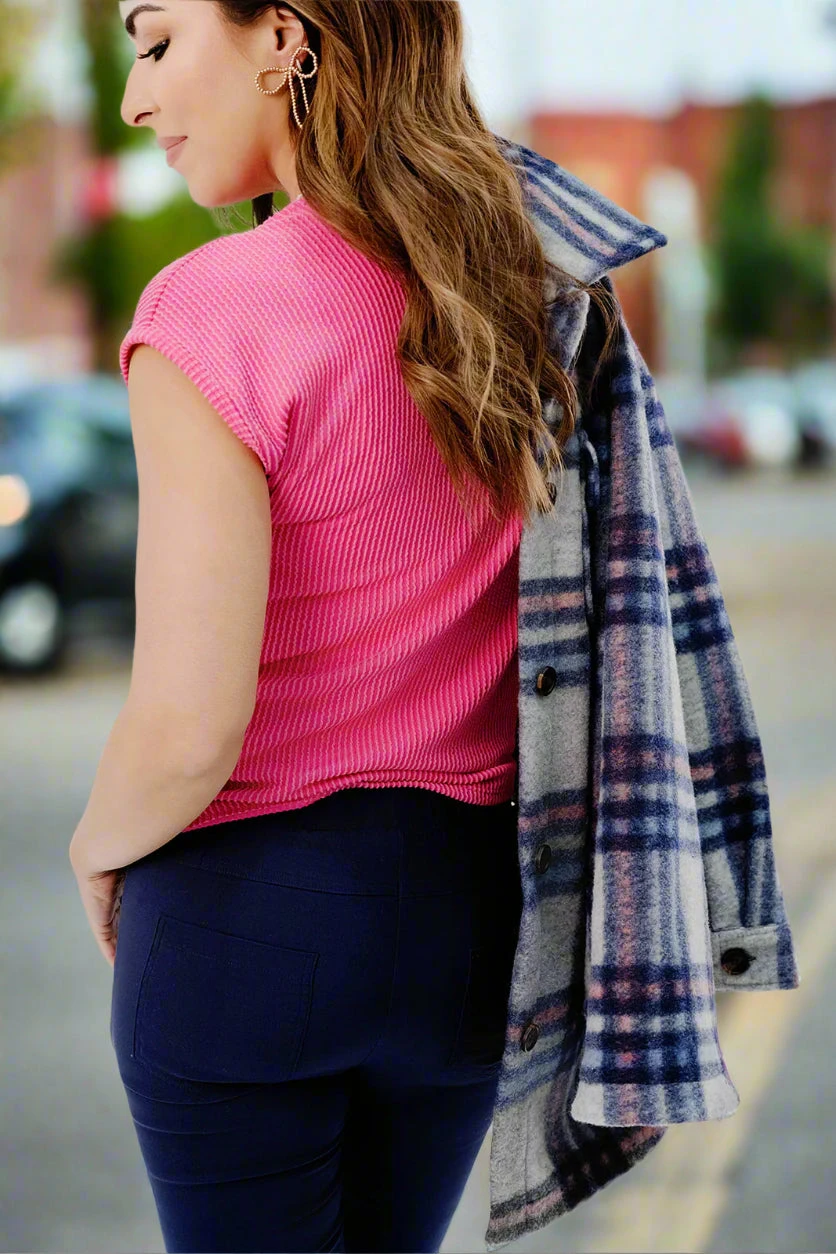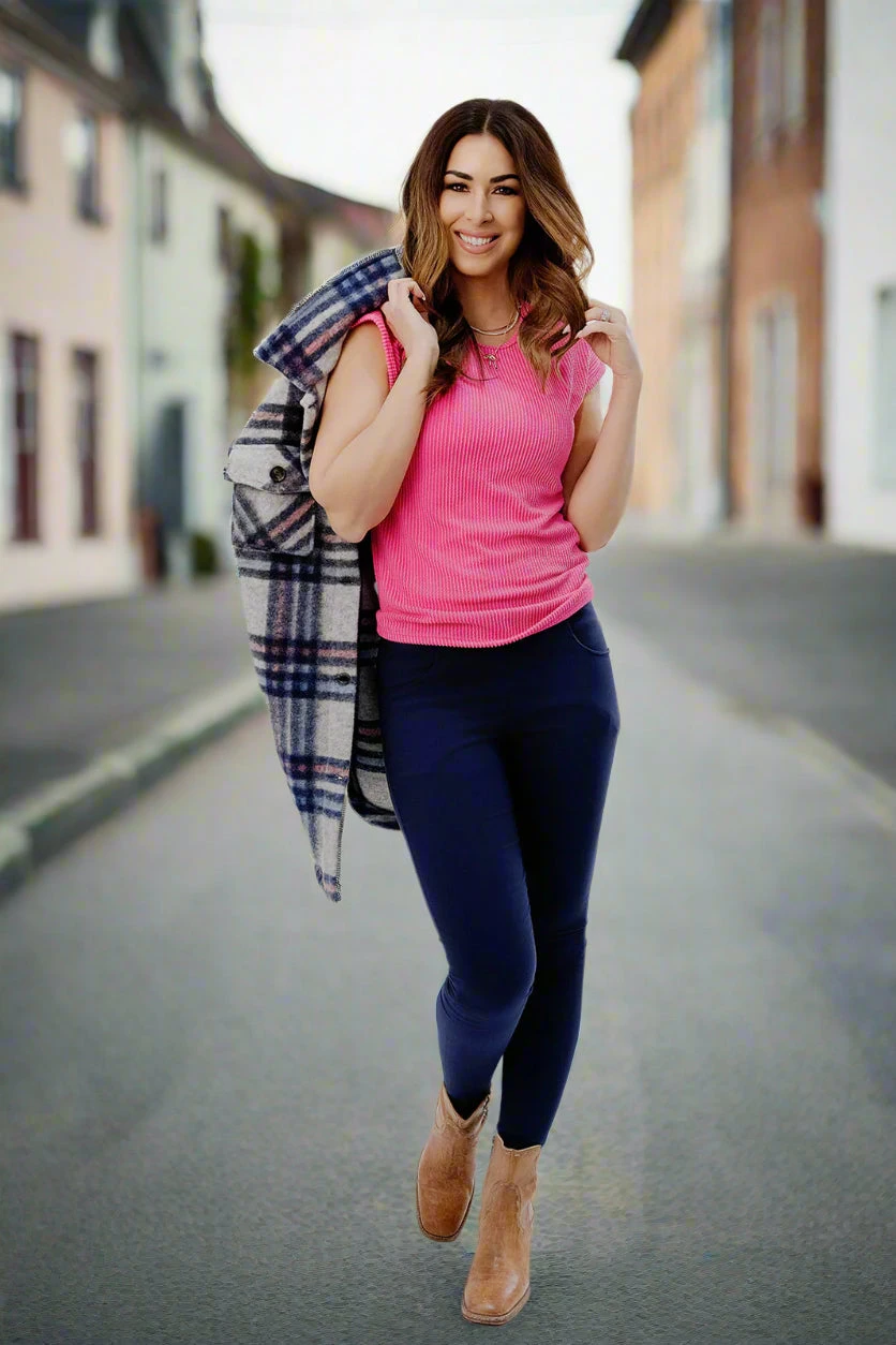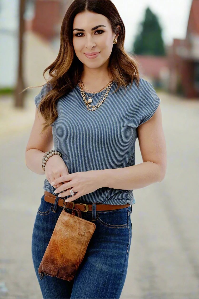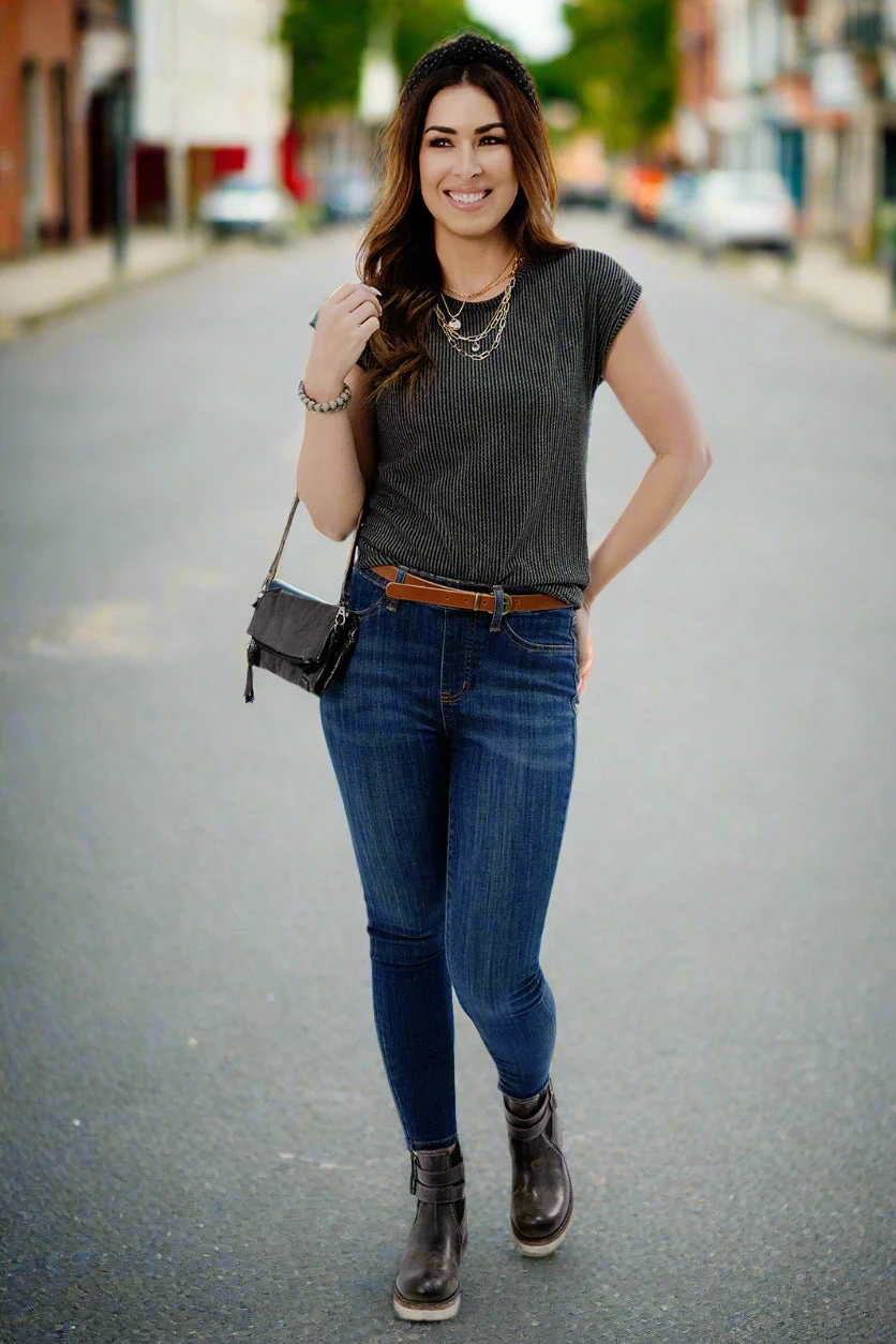 A simple dolman style sleeve tee with a fun texture to give it a chic vibe! The ribbed look can be either dressed up or down to match your style! We love that this can be worn with shorts for the warmer months or denim, joggers, or our Betsey’s Jeggings for the cooler ones. Chilly? Add a blazer, cardigan, or jacket with ease! Simply add your favorite accessories to elevate this piece.