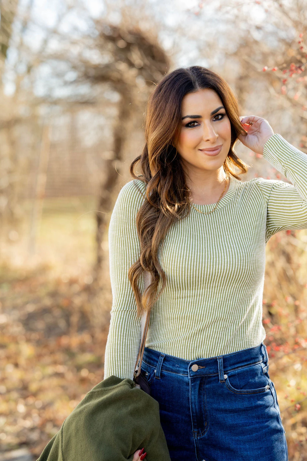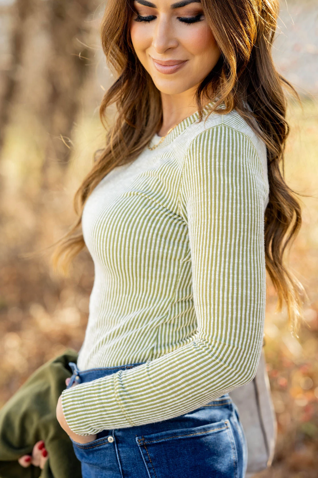 We love the simplicity of this tee which makes it easy to go with anything! With a ribbed texture and soft and lightweight material, this is definitely going to be a staple piece! Wear alone or use as a base for all of your layering pieces!