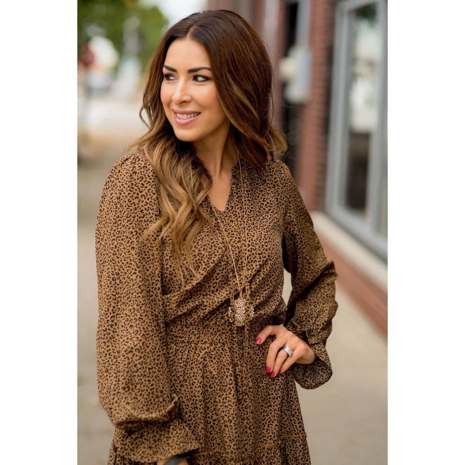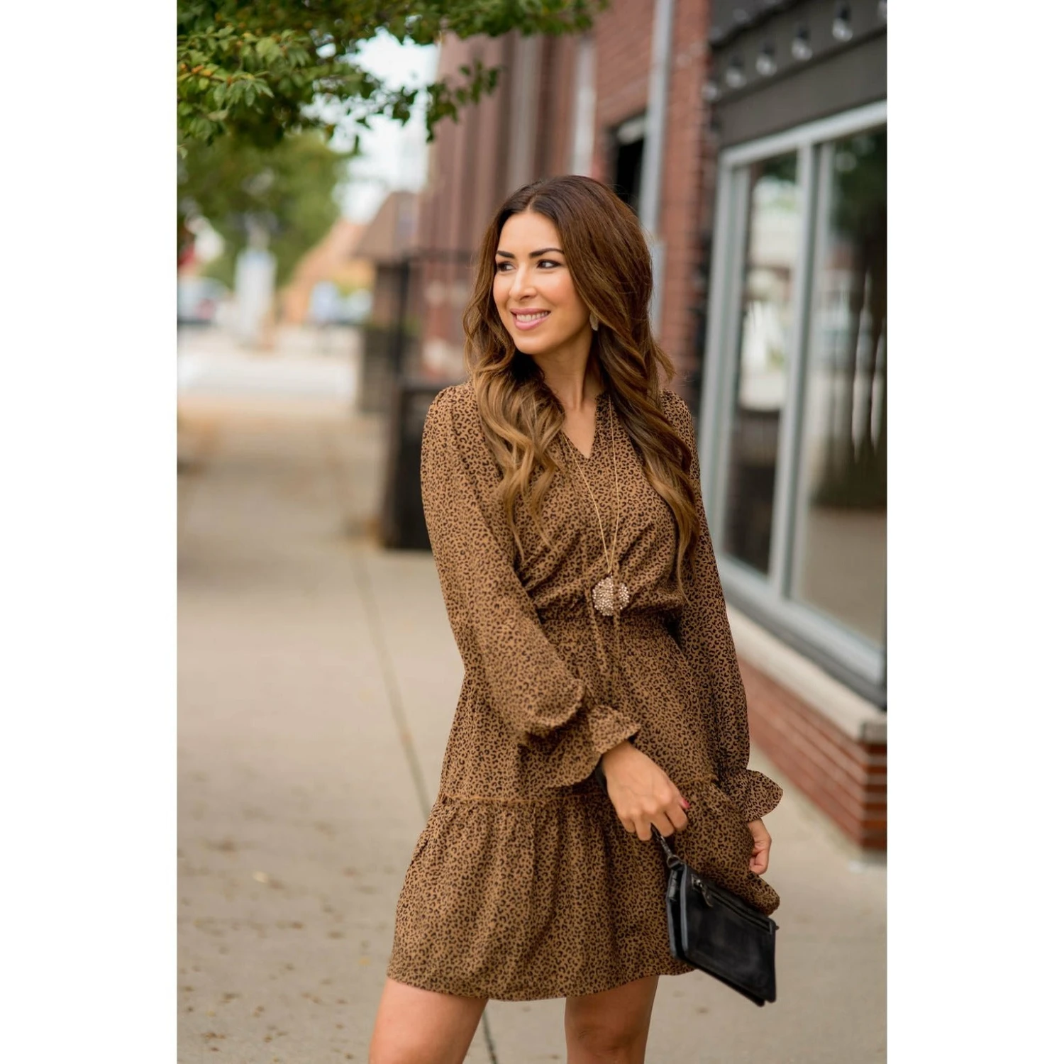 This leopard dress is a definite must have! With long sleeves that bloom out at the wrists, this dress is one you are going to fall in love with instantly! Don’t forget your favorite pair of Bed Stu boots to wear with this great look!