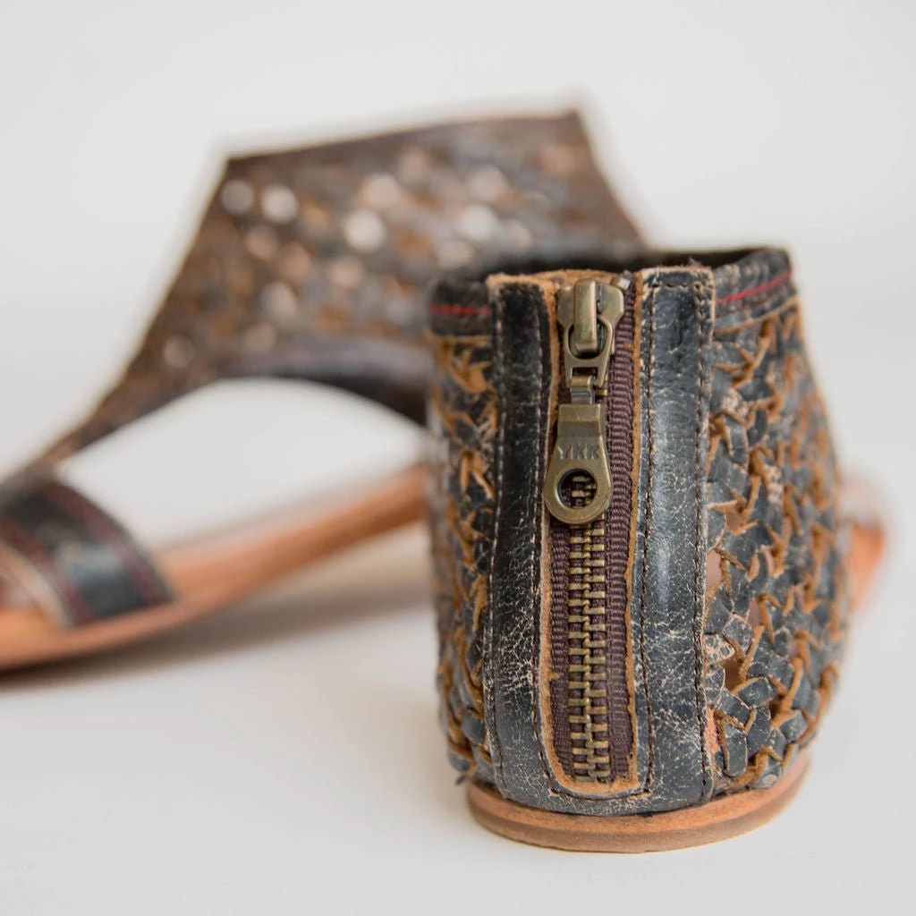 It’s here! Get giddy for this one-of-a-kind sandal. For those SOTO Lovers out there (we know that’s a lot of you) KIMBERLY is your next add to cart item. From the bold, straight cut off at the toe, red stitching detailing, to the stunning hand woven upper, KIMBERLY is a sight for sore eyes. Start spring off right in this unforgettable, sublime, awe-inspiring sandal.