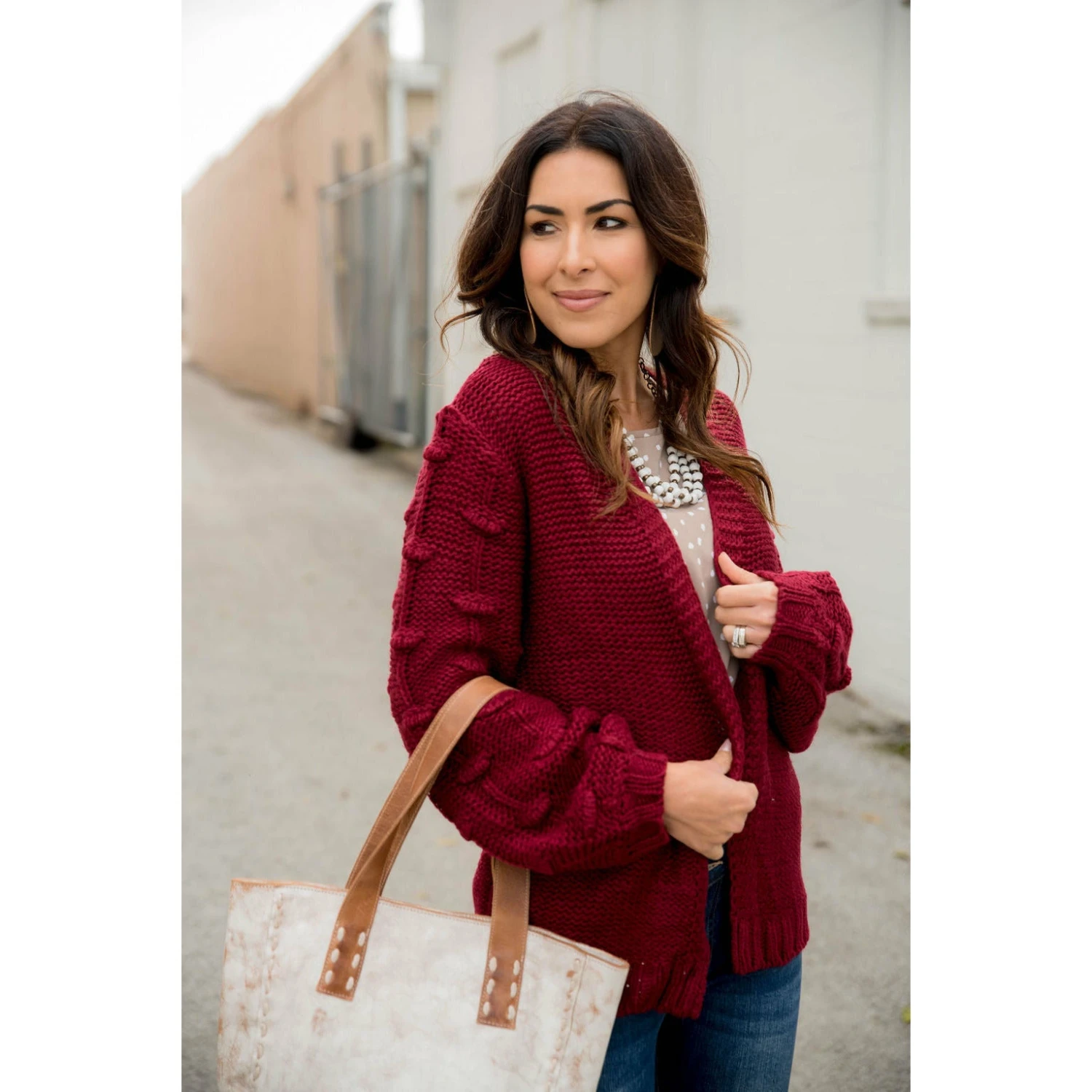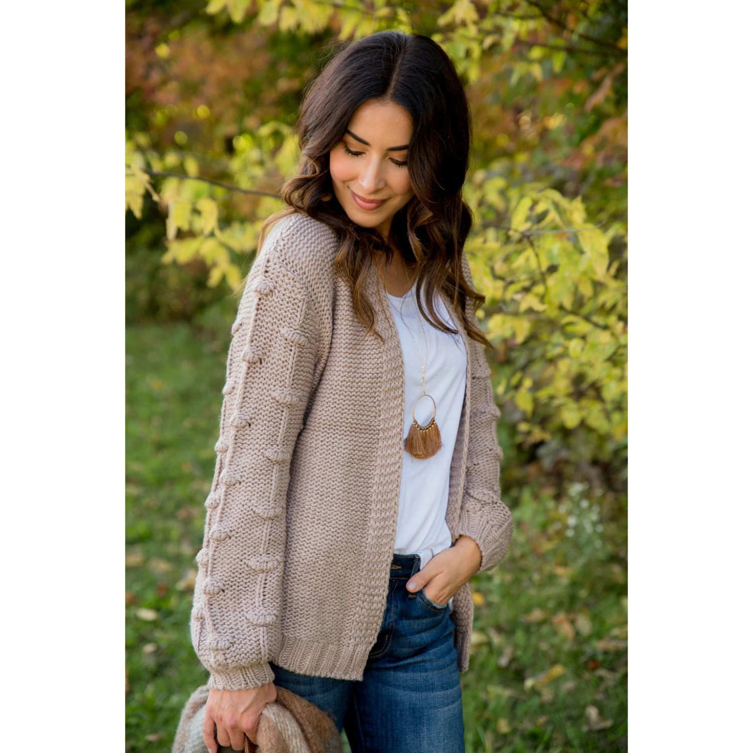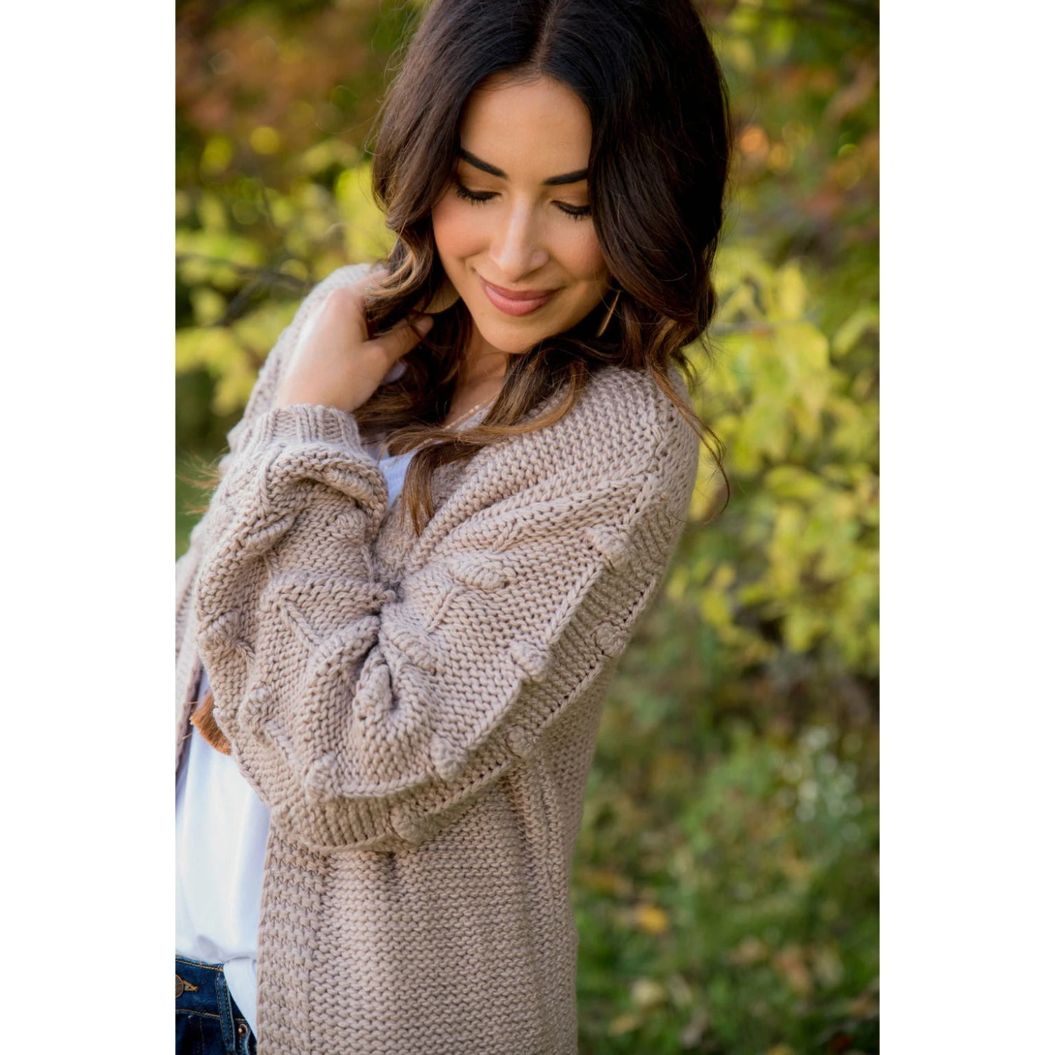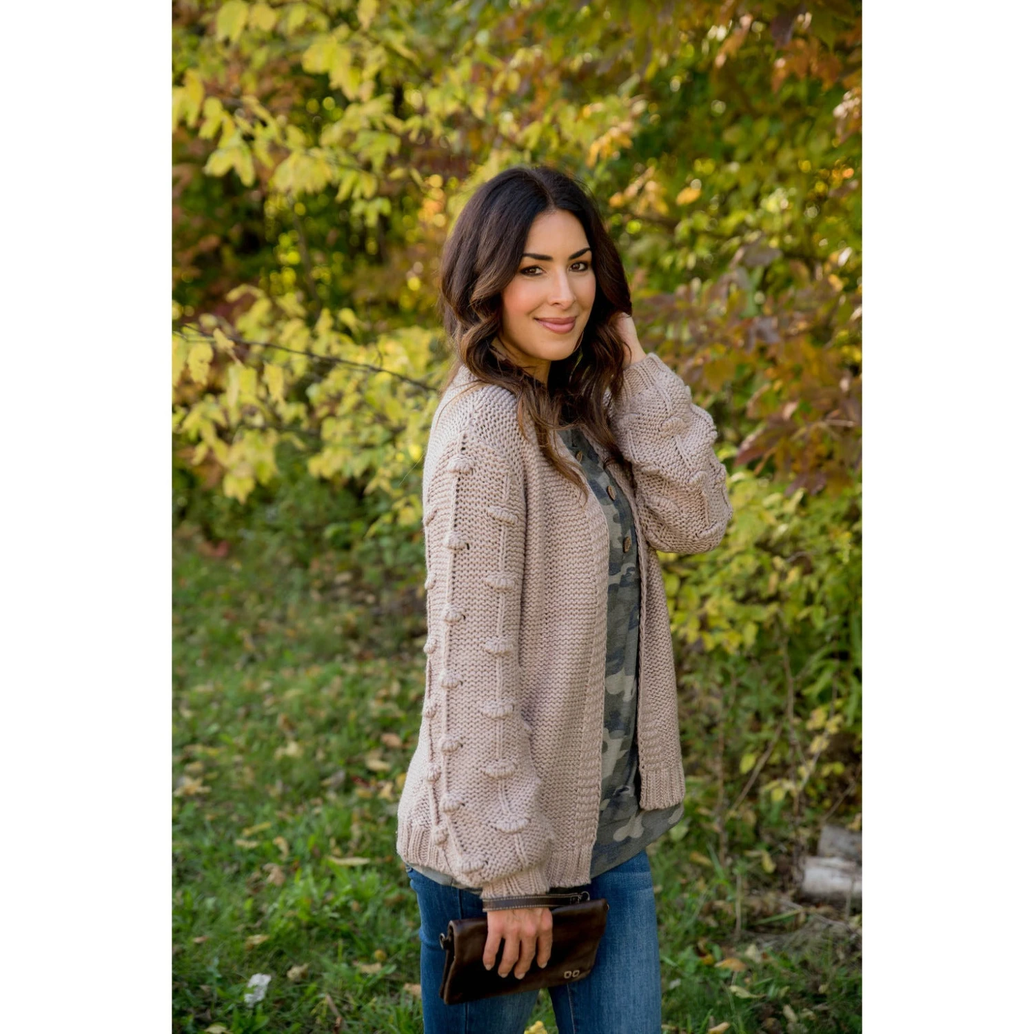 How cute is this cardigan?! The sleeves have special details to it to give you a fun look! This looks great over any tee or blouse!