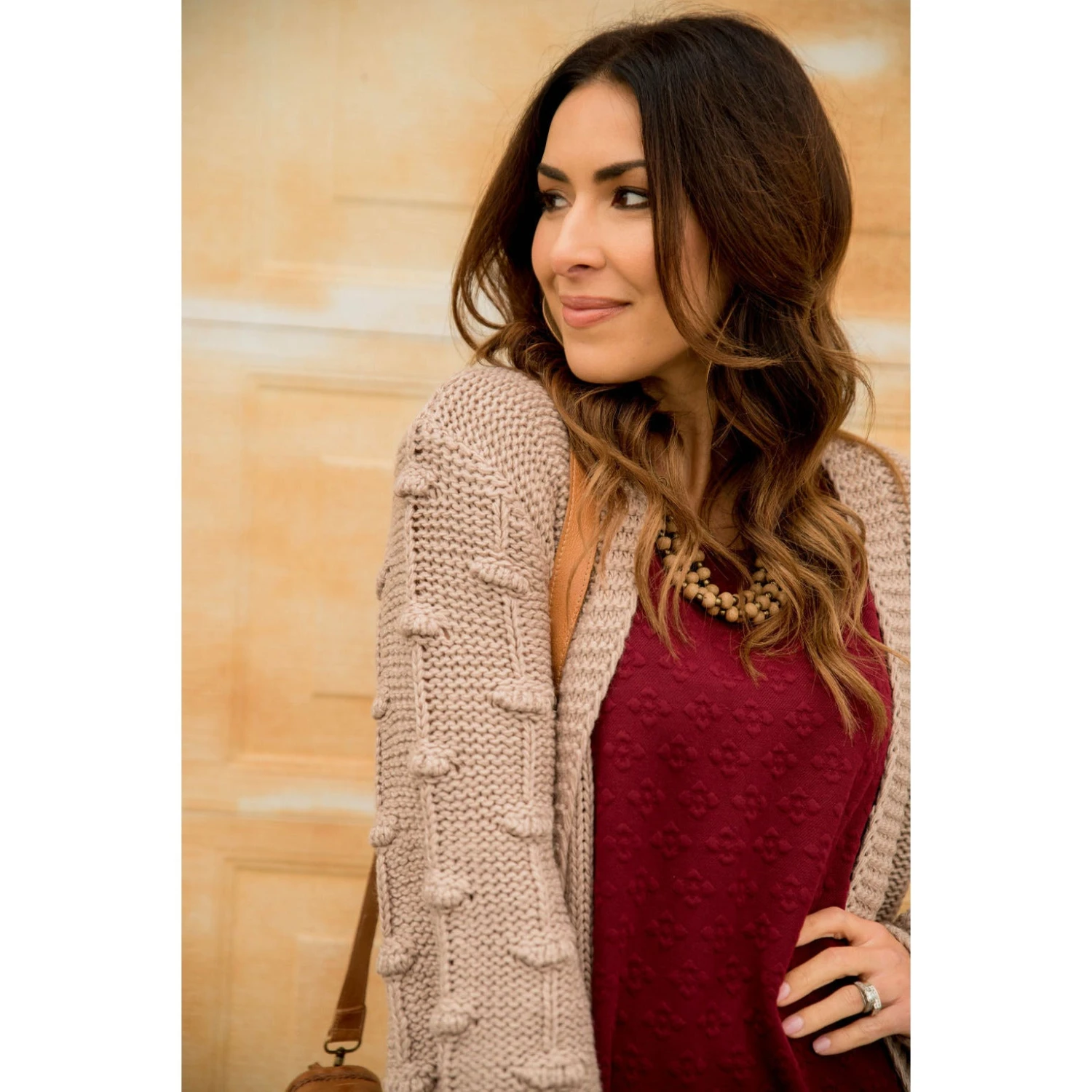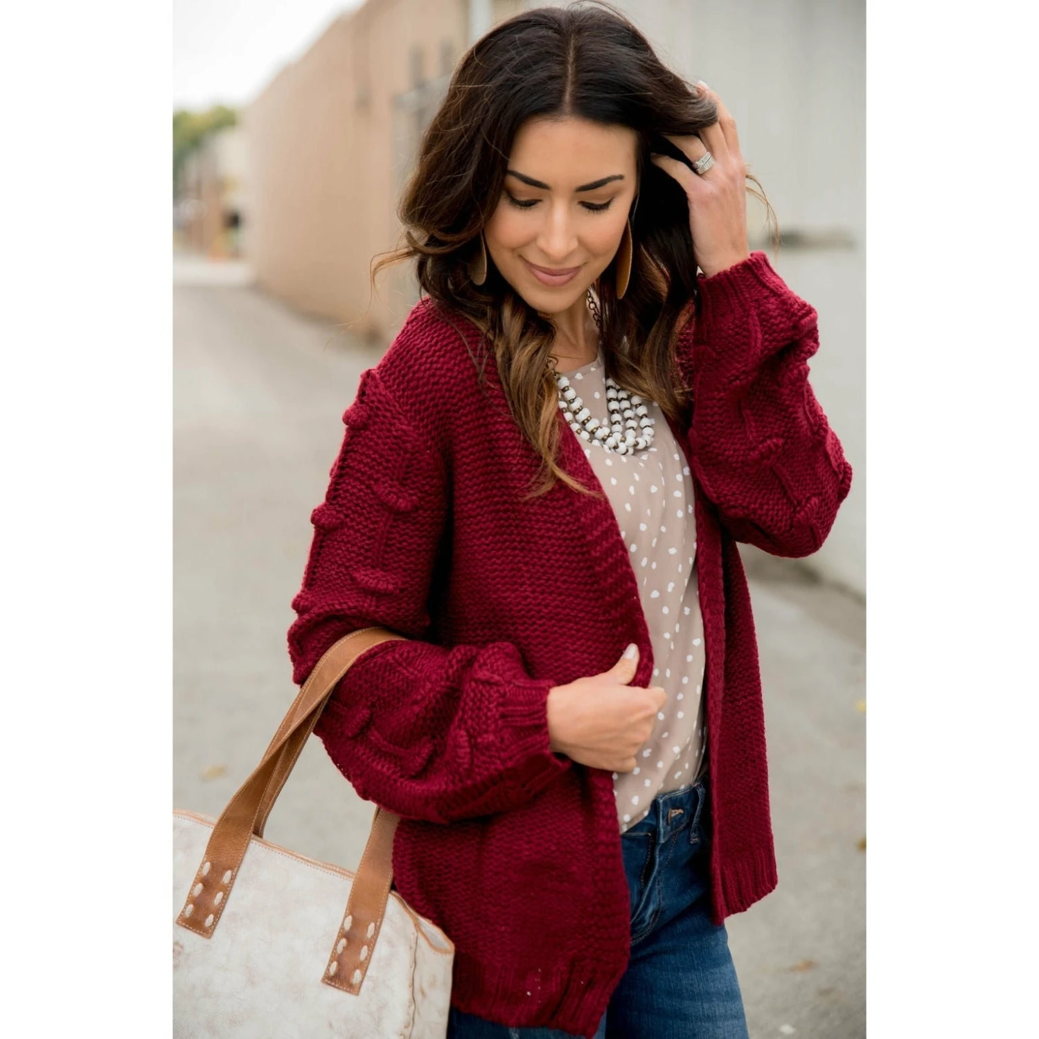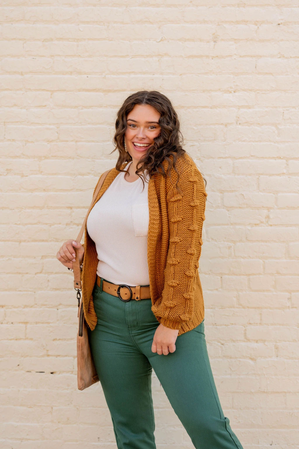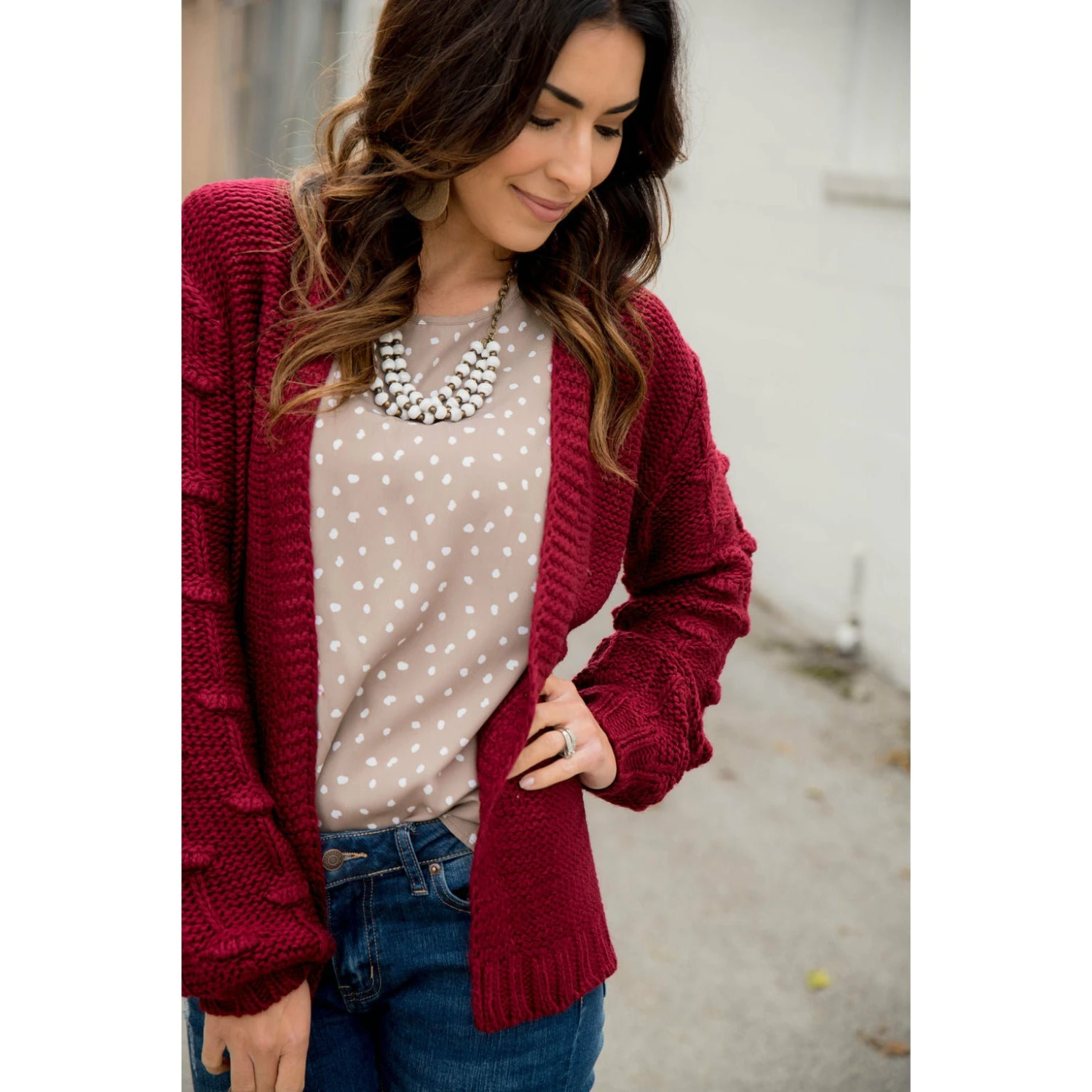 How cute is this cardigan?! The sleeves have special details to it to give you a fun look! This looks great over any tee or blouse!