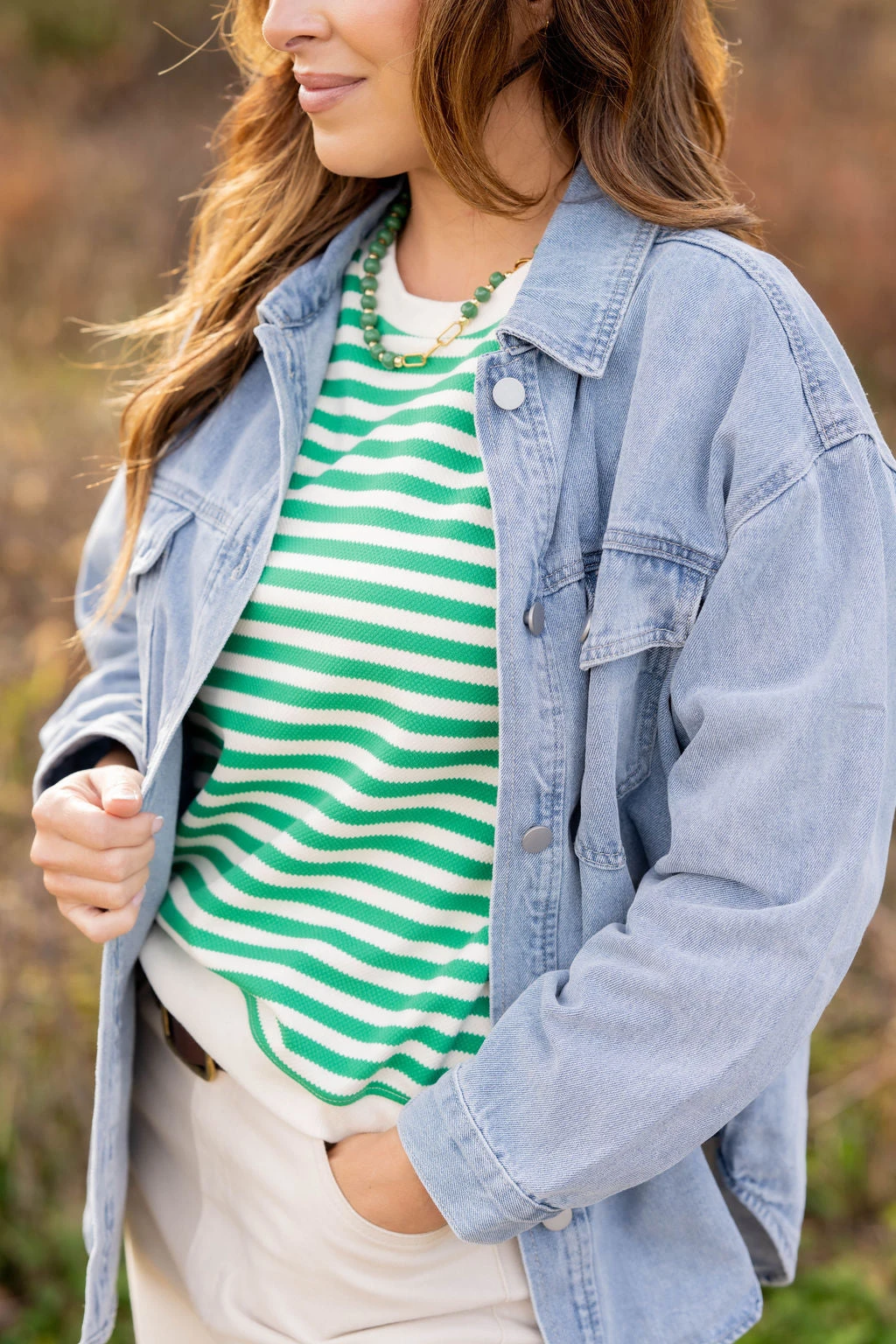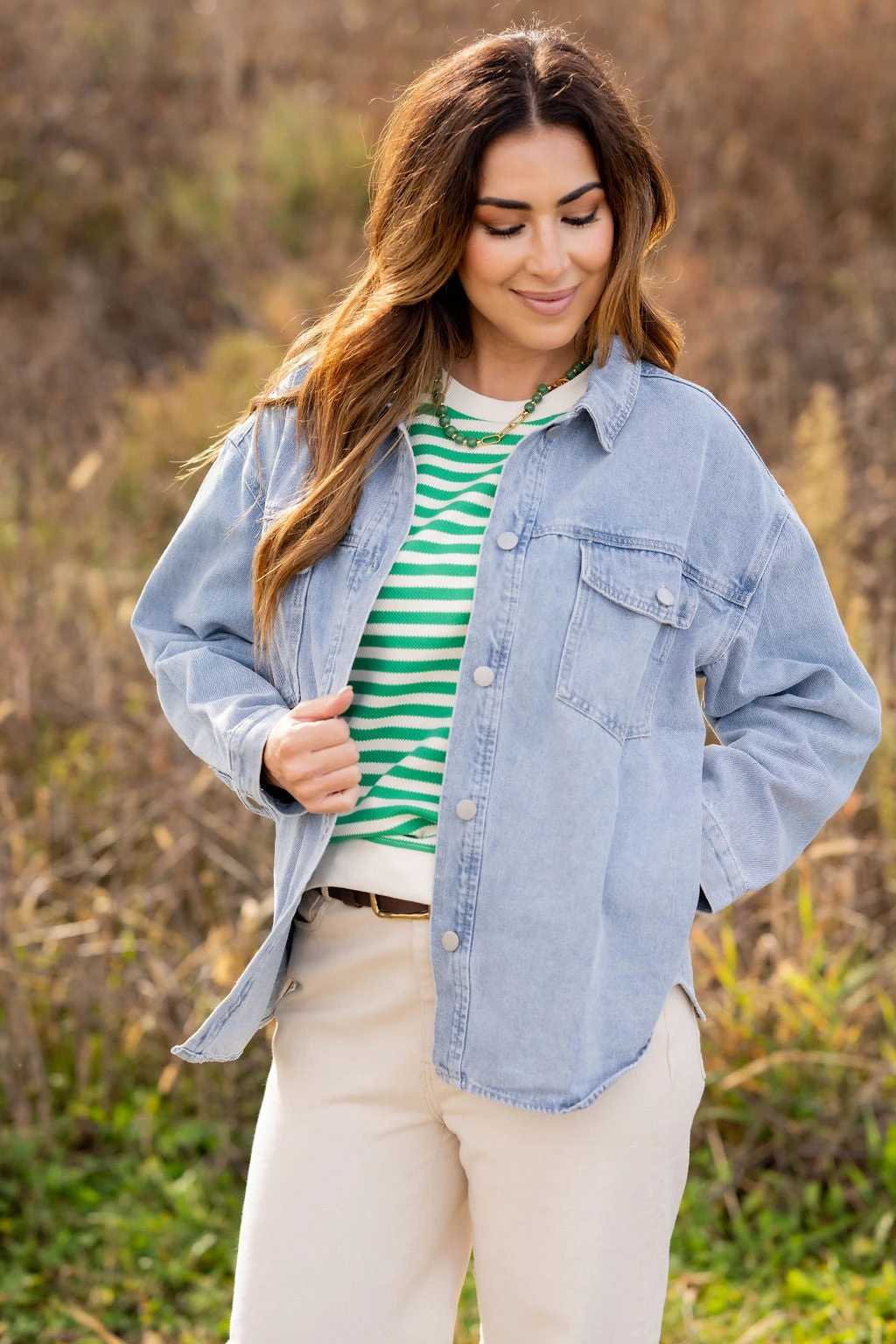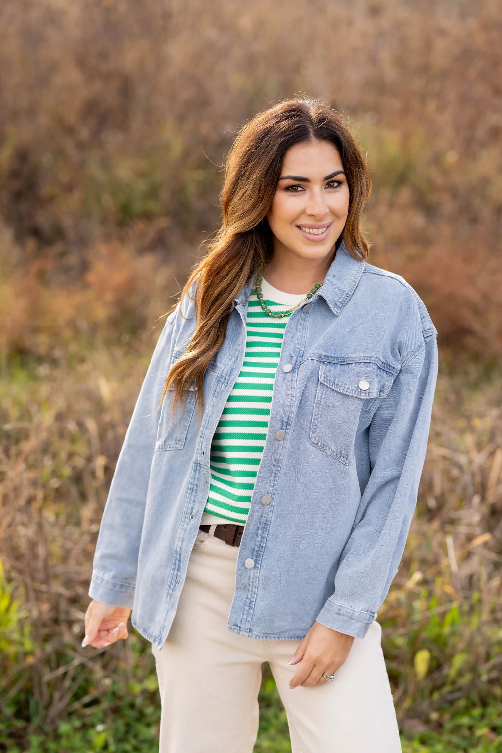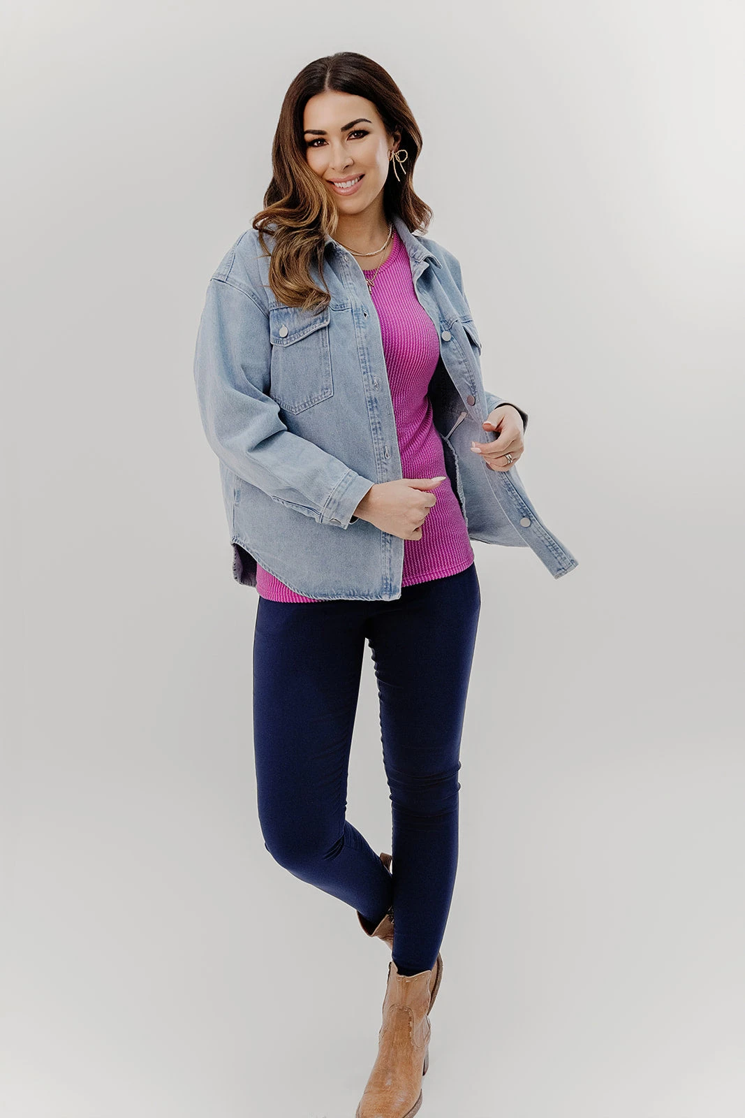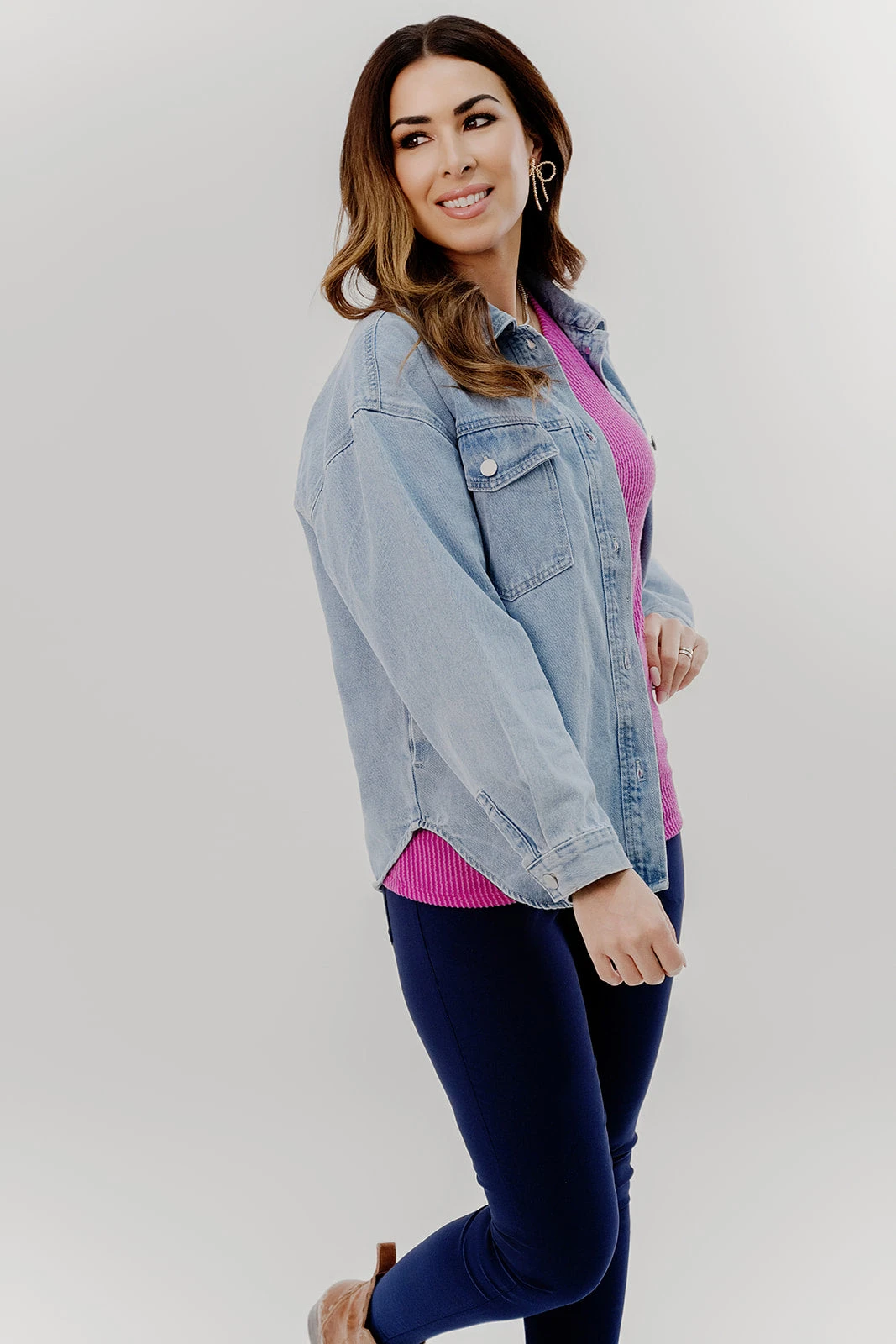 Denim button-ups are always in style. The acid wash gives a more modern, casual look! Whether you pair this with a dress, blouse and Betsey’s Jeggings, graphic tee and leggings, or even a sweatshirt and joggers, we just know this will be a staple piece in your wardrobe!