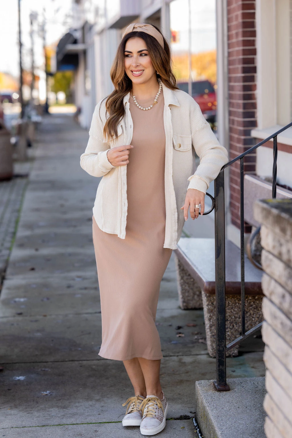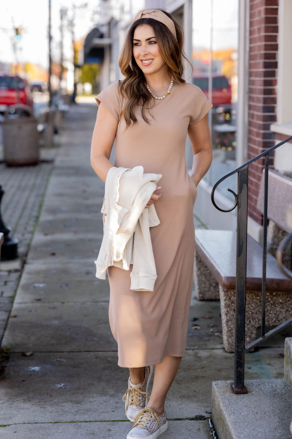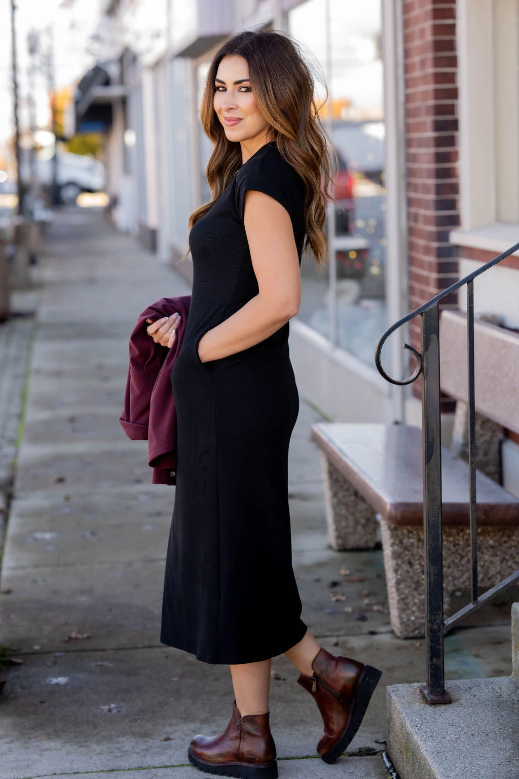 Basic enough to dress up or down to fit your style, but bold enough to stand out on its own! This dress features a midi length, making it appropriate for the office, the classroom, or Sunday service! This dress can be worn alone for the warmer months but can easily be paired with a denim jacket or cardigan for the cooler ones! With so many ways to style, we just know this dress will surely become a staple piece in your closet!