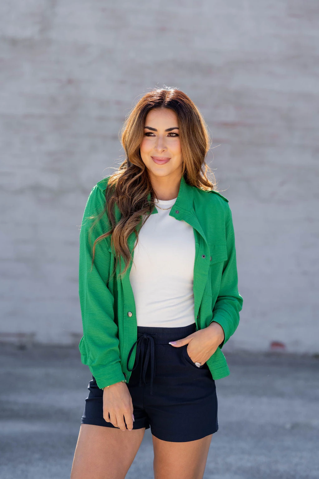 We just don’t think you can ever have too many jackets! This lightweight jacket is perfect to transition you through seasons and can be paired with virtually any outfit! Throw on over a cute sundress, a graphic tee and shorts, a basic tee and leggings, a blouse and your favorite denim, anything!