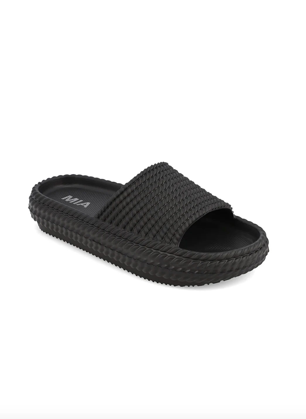 The LUVLY is here for your poolside adventures. This sandal is crafted with a thick rubber sole and thick strap across the foot. Waterproof and made for all day wear.
