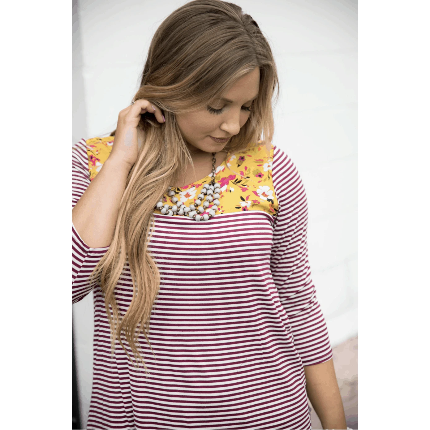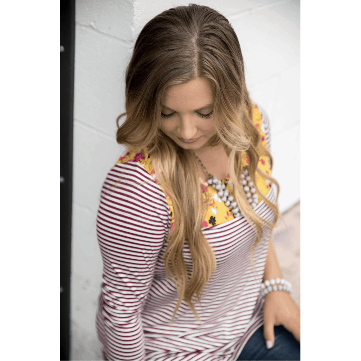 Pattern mixing is a favorite around here! We love how the stripes in this tee compliment the floral top design.
