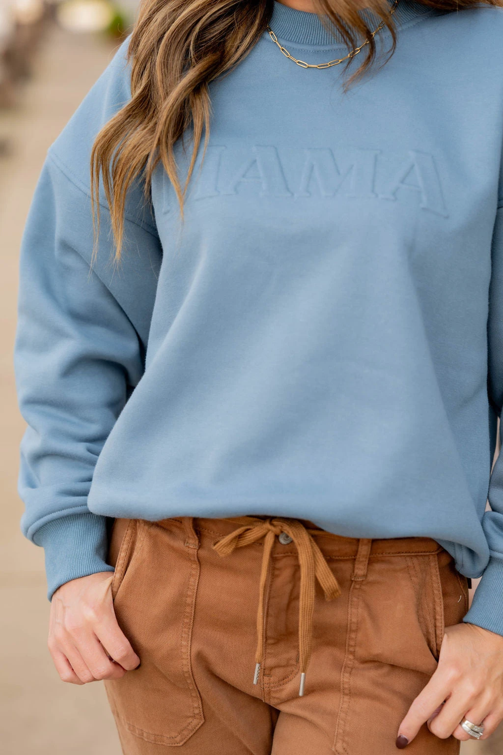 Crewnecks are a staple in every girls wardrobe! Easy to style and super comfy. This can be paired with shorts to transition you through warmer weather or with your favorite denim, joggers, or Betsey’s Jeggings for the cooler months! Chilly? Add a vest or jacket with ease! The embossed look makes this super unique.Â