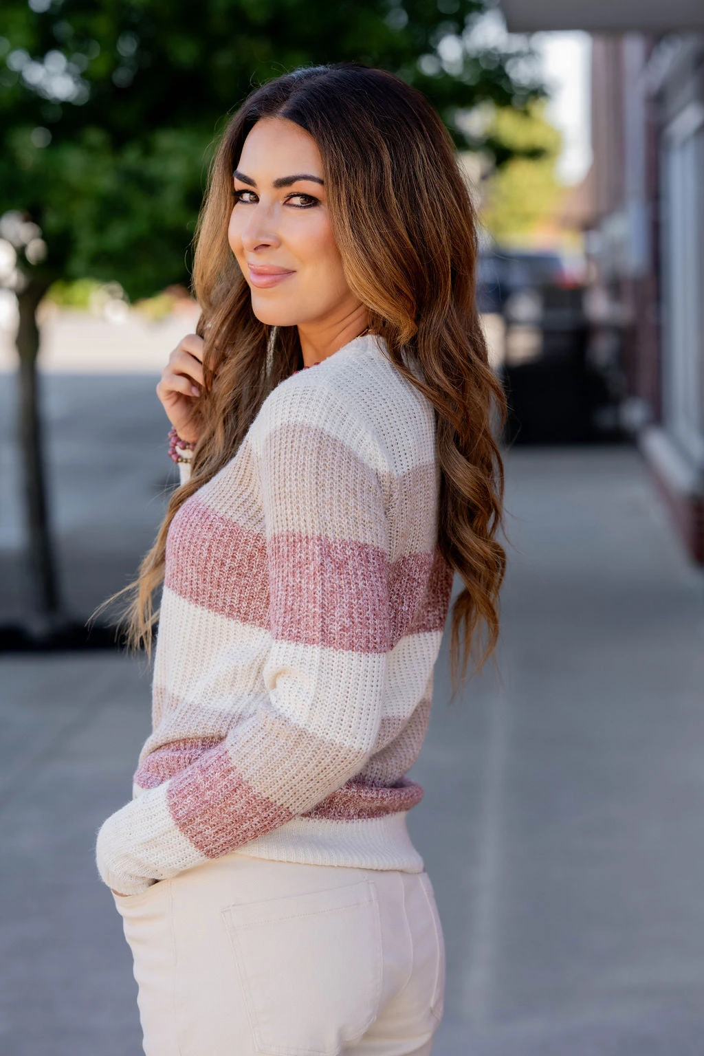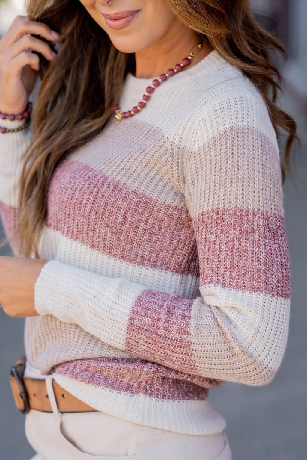 Sweater weather is upon us and we’re in love with this one! The marled look and the color blocked pattern are so simple yet so chic! Pair this sweater with jeans, accessorize and add your favorite pair of shoes for a quick, stylish look! Chilly? Add a vest or jacket with ease!!