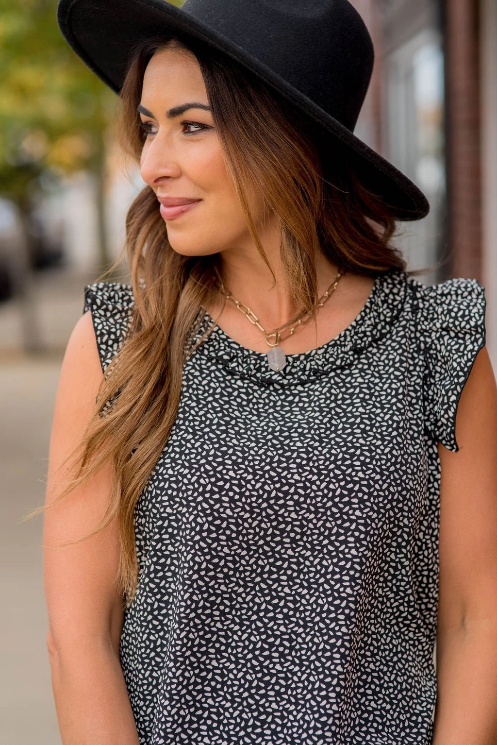 We’re obsessed with this top!! The fun confetti print, the ruffle trim, and the lightweight material set this apart from the rest! Wear with a bold-colored pair of shorts for the warmer months, or with your favorite denim or Betsey’s Jeggings and a cardigan or denim jacket for the cooler ones!Â