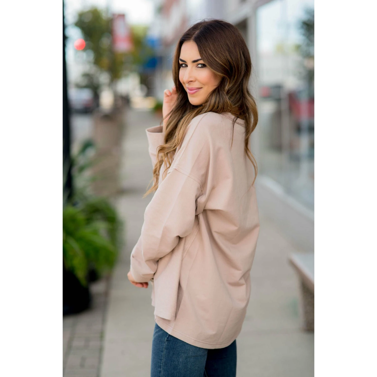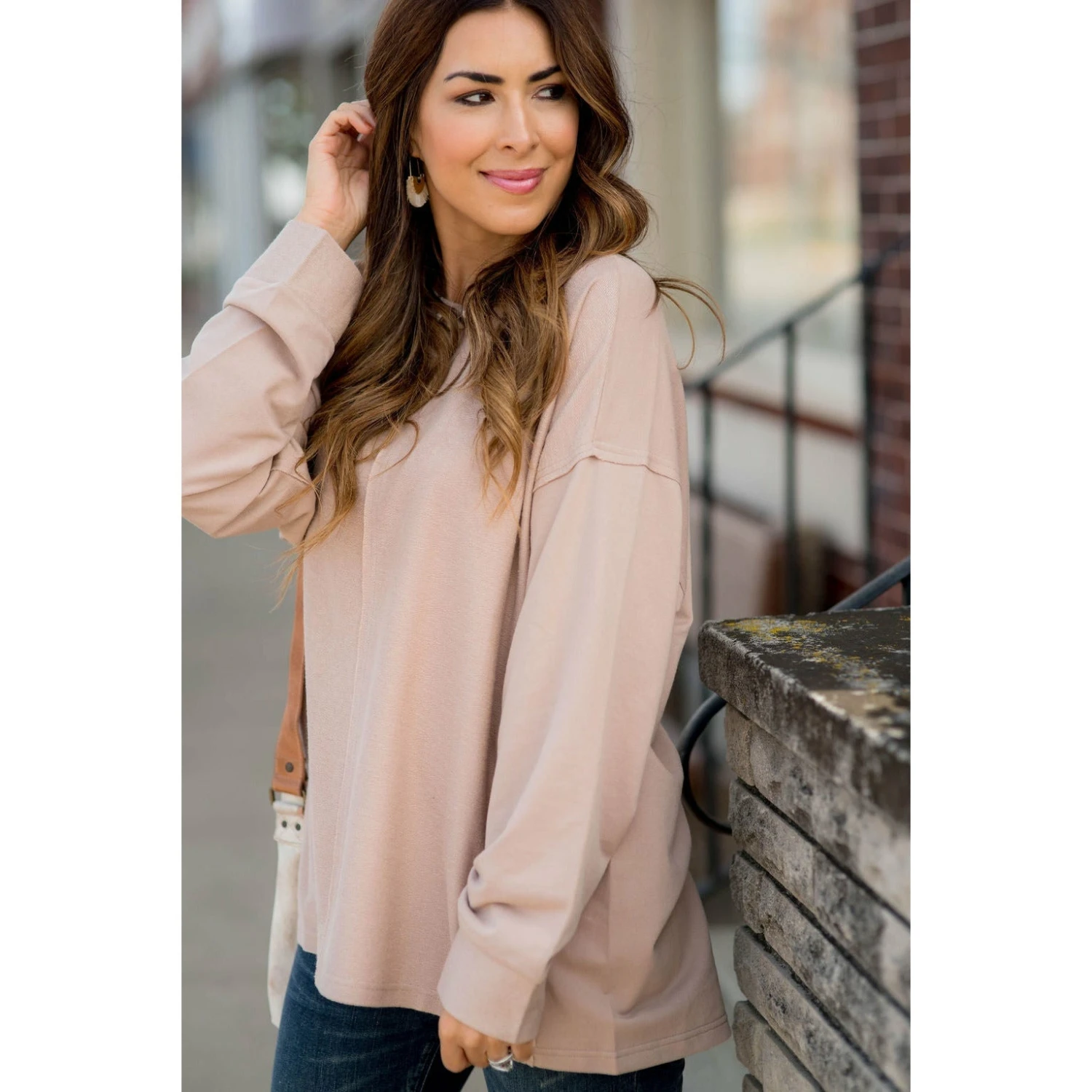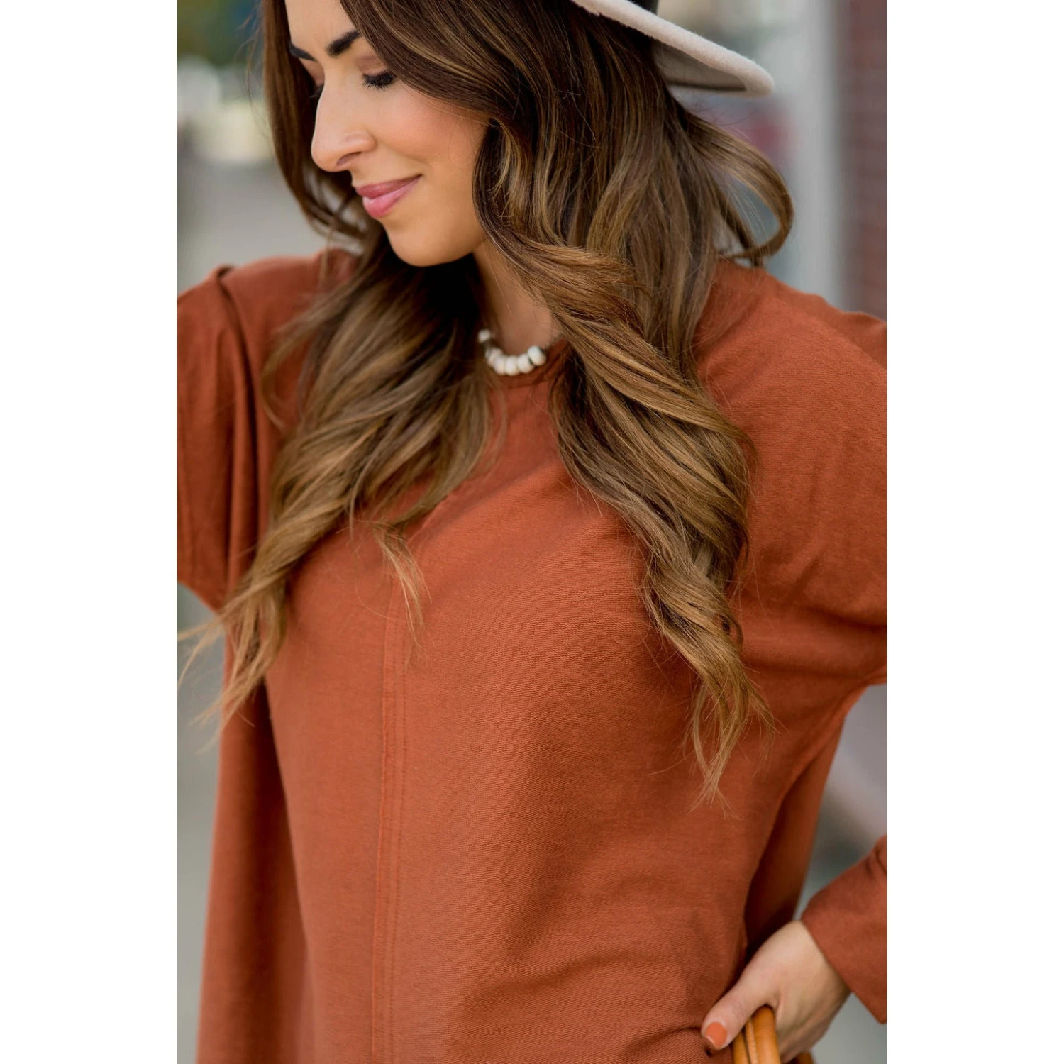 We are loving this long sleeve tee! With its relaxed fit and raw stitch, it is one you are sure to love, too! Wear it with Jeans, jeggings, or leggings, depending on your mood!