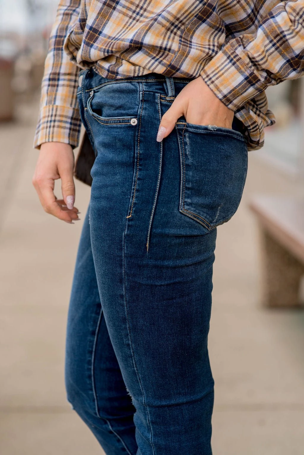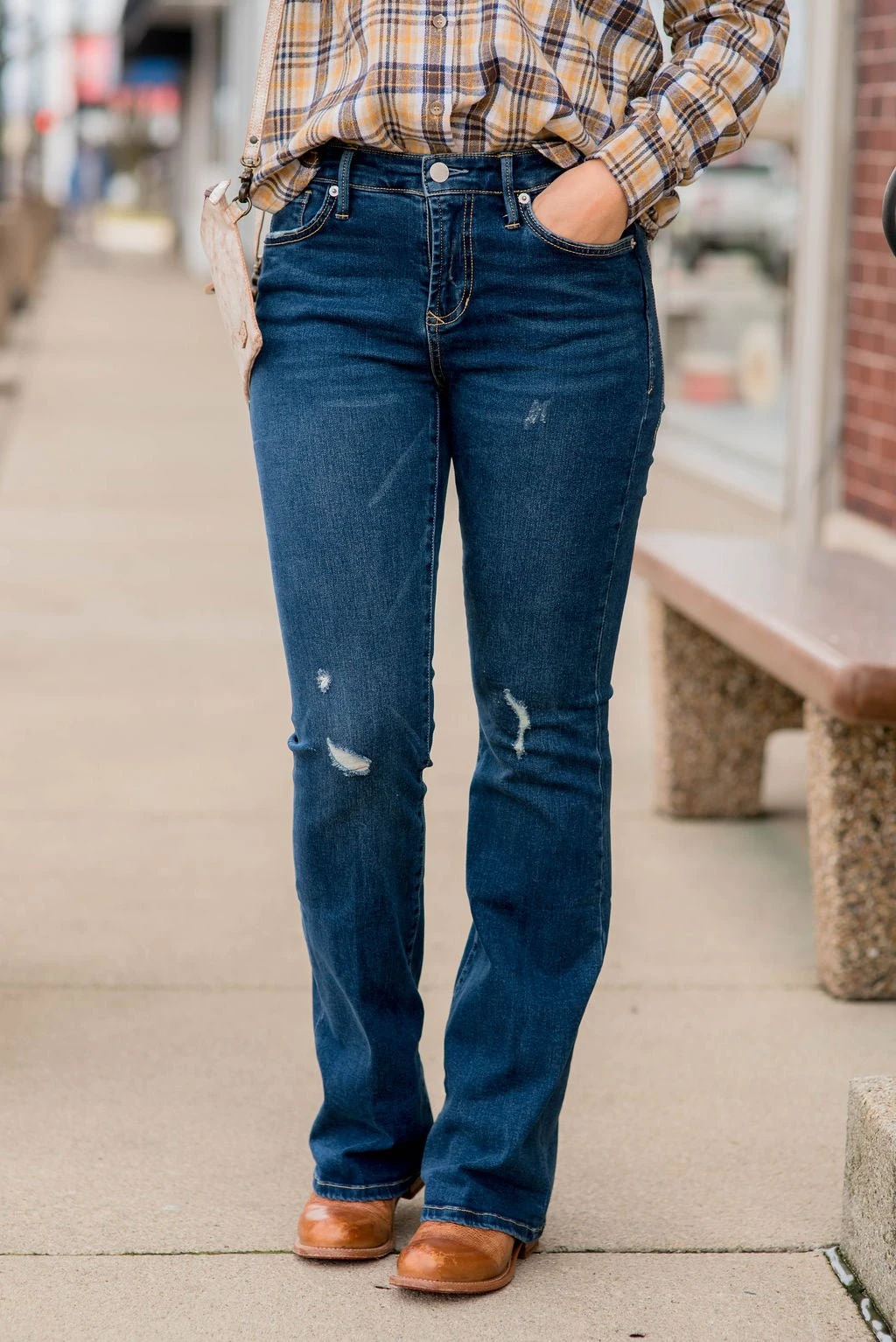 With the perfect amount of distressing on these flare-leg jeans, these have quickly become our new go-to’s!