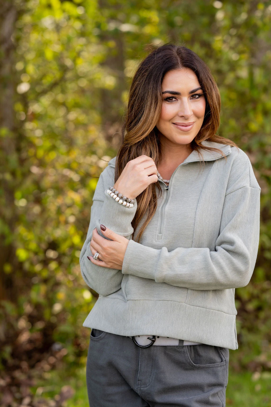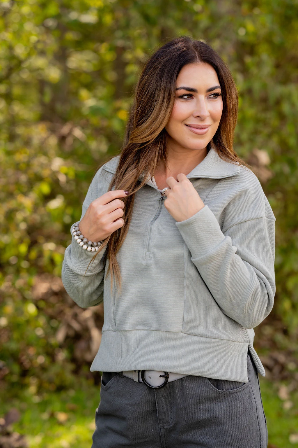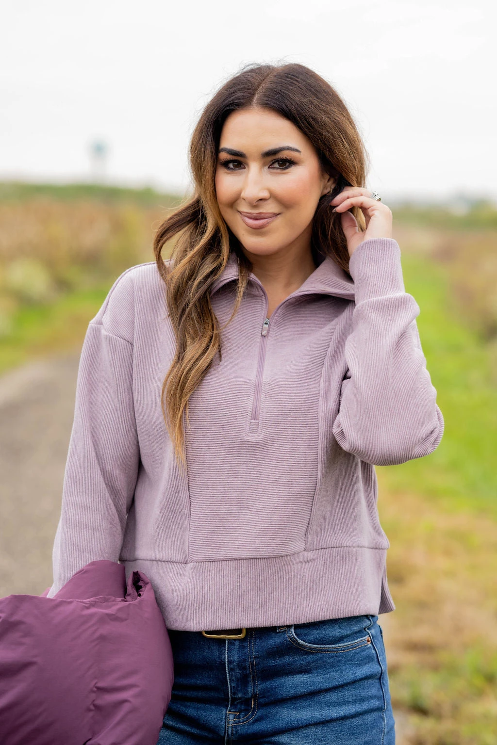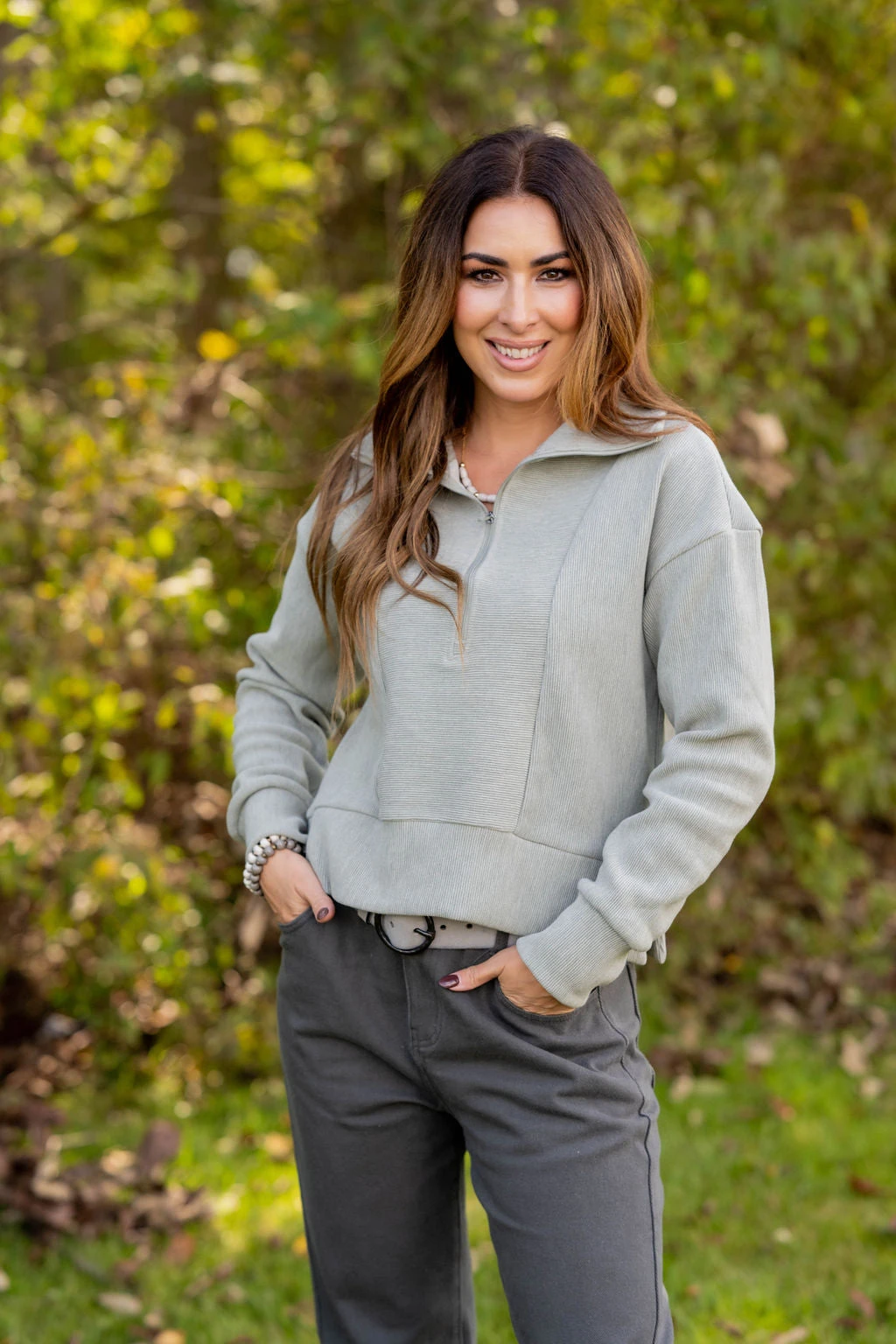 Your new go-to pullover has arrived! With the perfect transitional weight, this can be worn with shorts in the warmer months or leggings, denim, or joggers in the cooler ones! We love that this can take you from the gym to busy days on-the-go! The mixed ribs texture with the heathered look and quarter zip accent really make this one-of-a-kind!