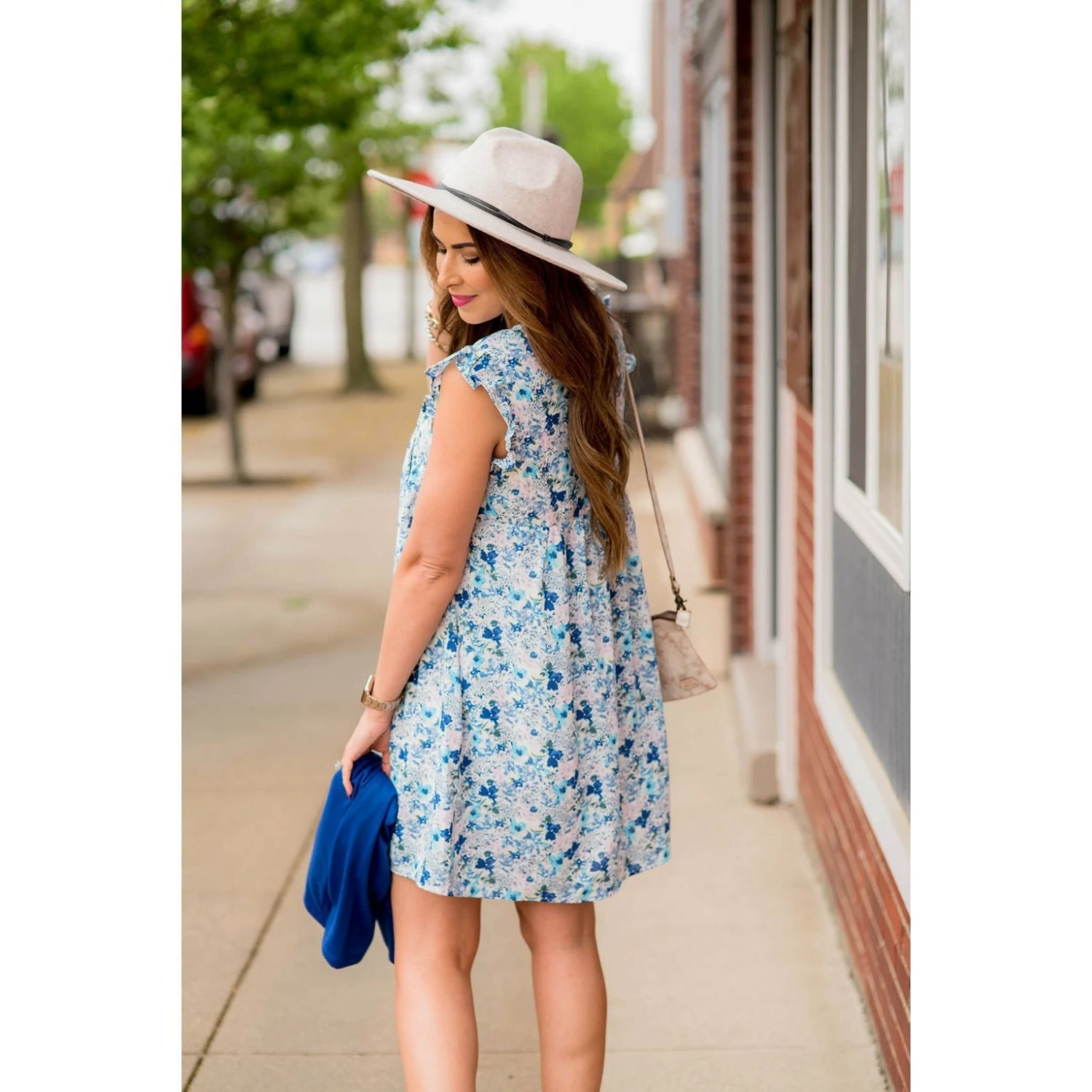 We’re loving how feminine and flirty this floral print is! This dress is made of a lightweight and breathable material, making it perfect for the warmer months but can be layered with a denim jacket or coordinating colored cardigan for the cooler months. The flutter trim add the perfect little detail to this dress, and the flowy fit making it perfect for any body type!