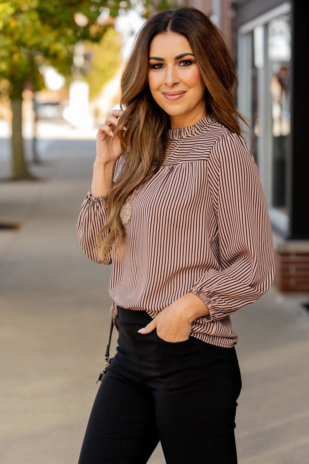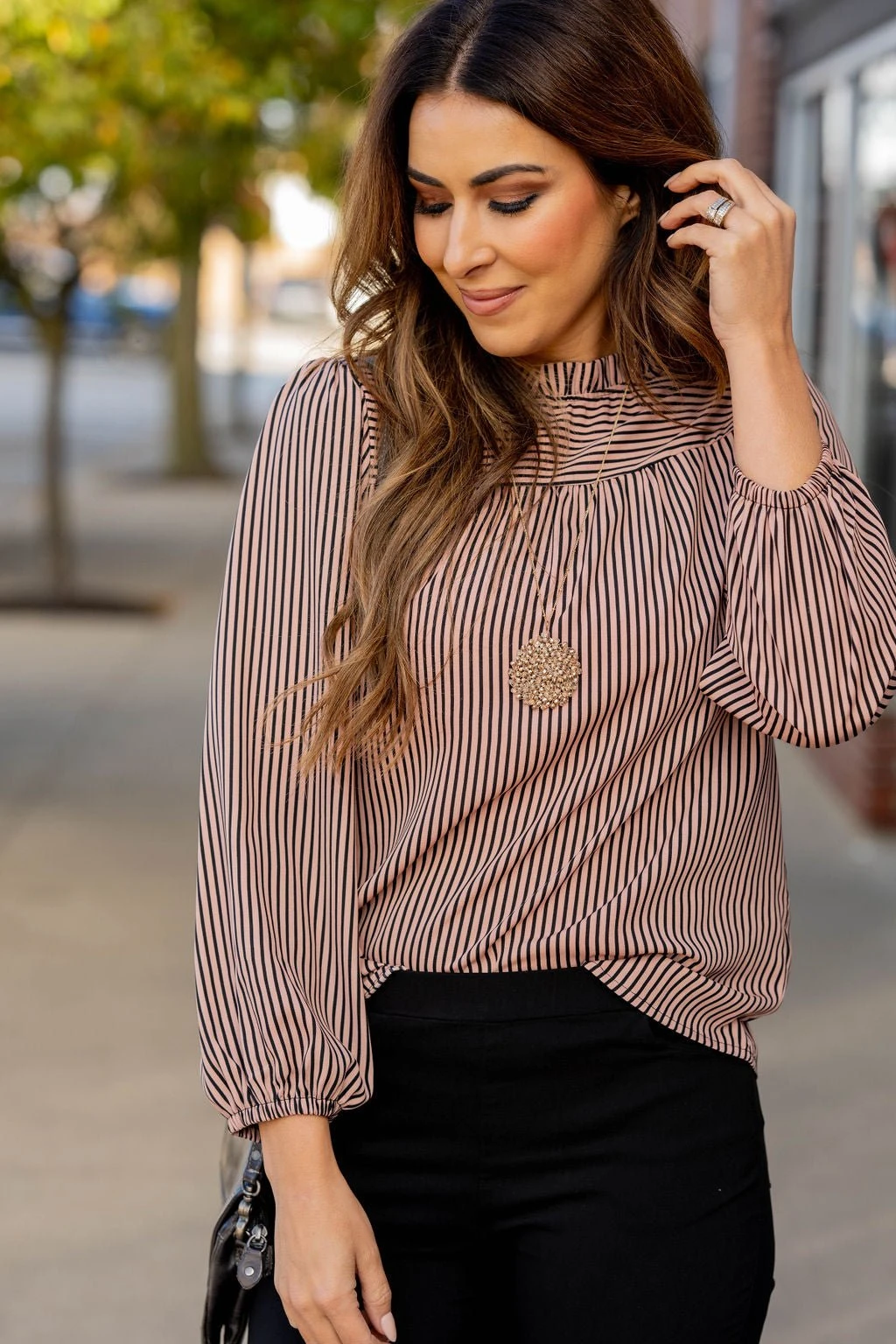 The mixed stripes and cinched trim elevate this blouse! The lightweight material allows you to wear this year-round. Dress this up or down for wherever the day takes you!