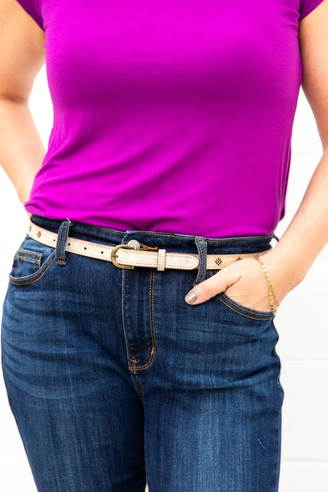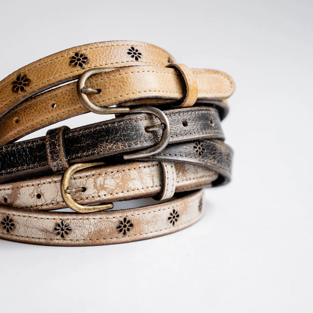 Monae II is a versatile belt crafted from a strip of premium leather adorned with meticulously hand-stamped details. Its detachable metal buckle adds a customizable touch, and with a range of sizes available, it ensures a perfect fit for your waist. Elevate your ensemble with this refined accessory.