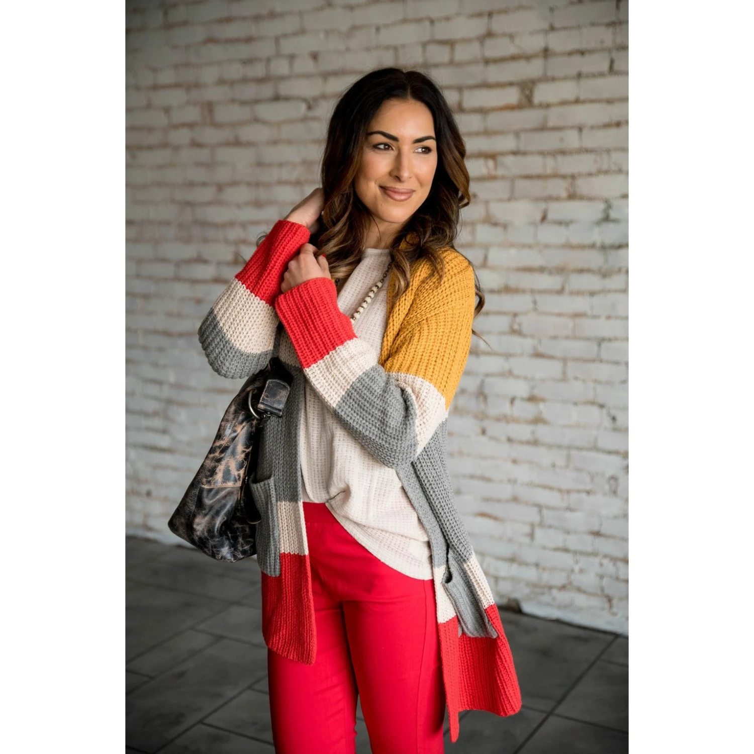 This cardigan is so fun! It will keep you warm and will be cute for any occasion!