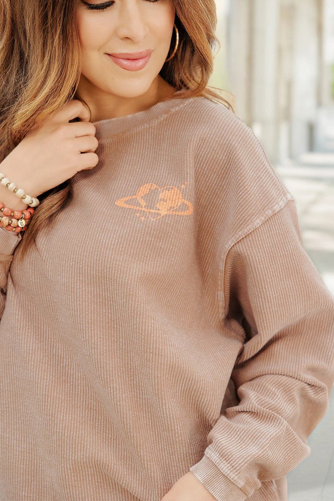 Our graphic crewnecks are already a fan favorite but with the elevated ribbed texture, this is a must-have! Throw on with shorts for a cute transitional look or with leggings, joggers, or denim in the cooler months!