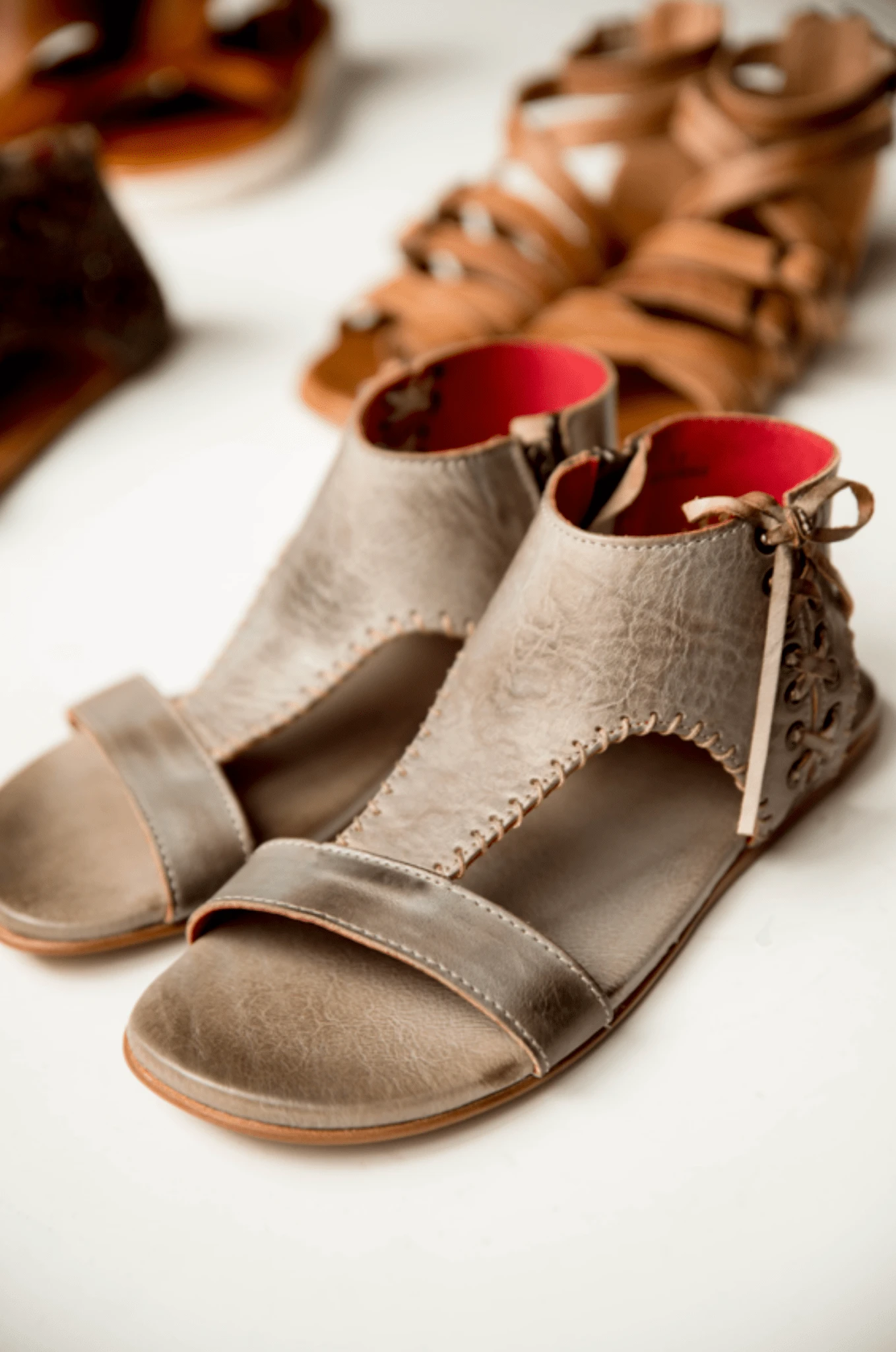 NINA is the new flat leather sandal you need in your closet. She comes equipped with an inner zipper, adorned with whipstitch details and a corset tie up the side. Open toes call for warm days and sunshine, NINA has a smooth leather sole, lightweight for all day adventures at the shore. Perfect for any outfit, bring NINA anywhere the sun shines.