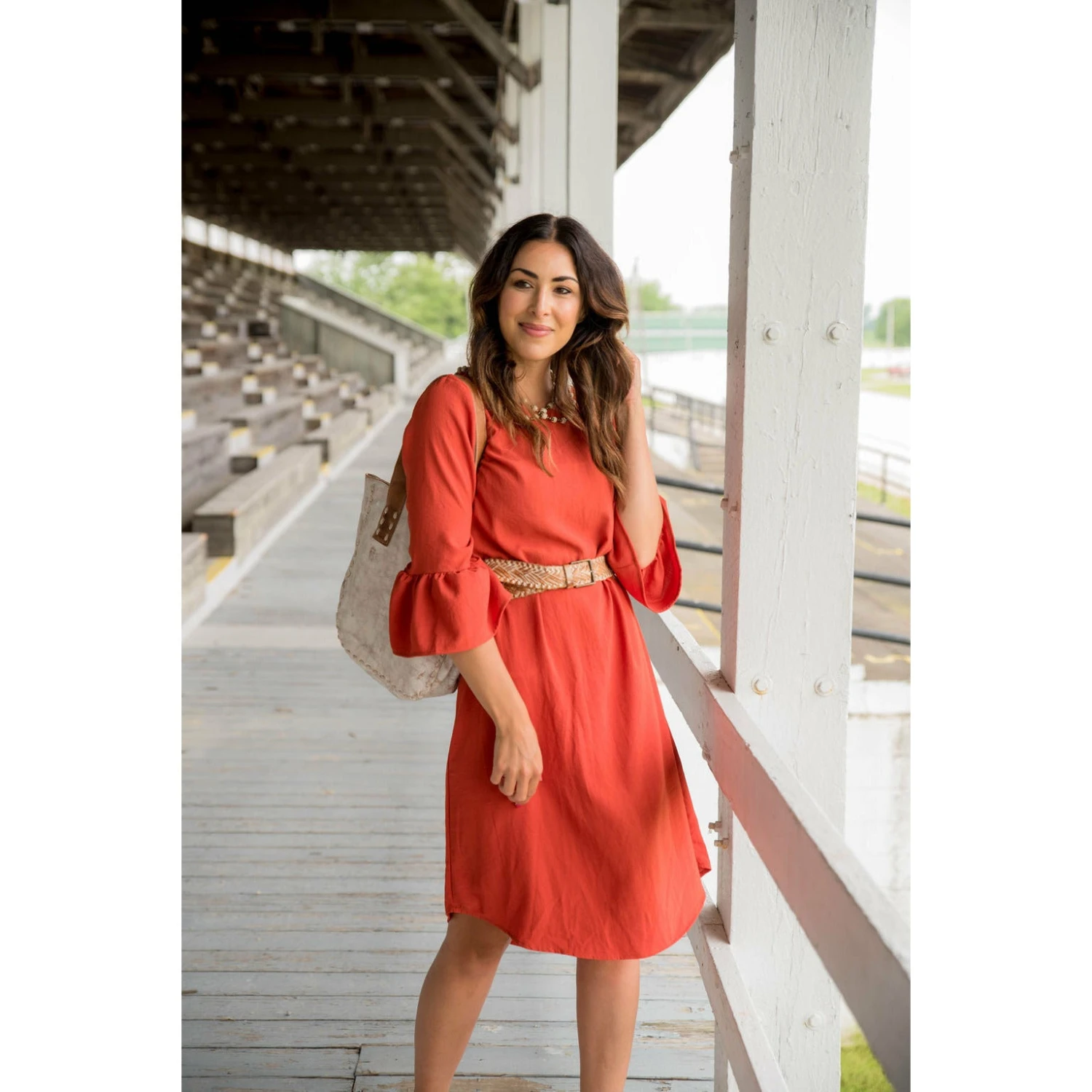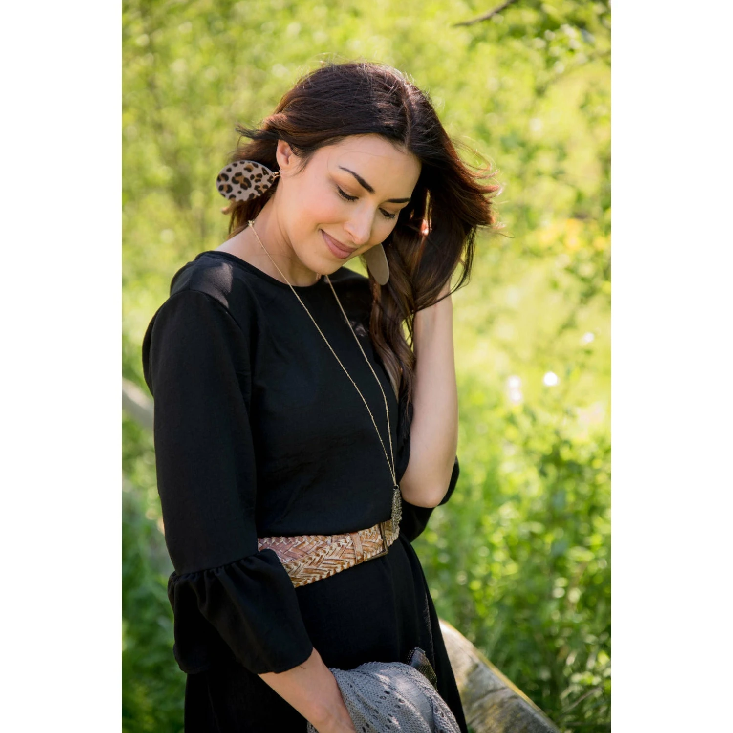 This Peplum Sleeve Dress has looser, flowy sleeves and is a look you will love! The soft material makes this dress comfortable to wear all day! Don’t forget to add one of Betsey’s Bloom Necklaces to make this look even more intriguing!