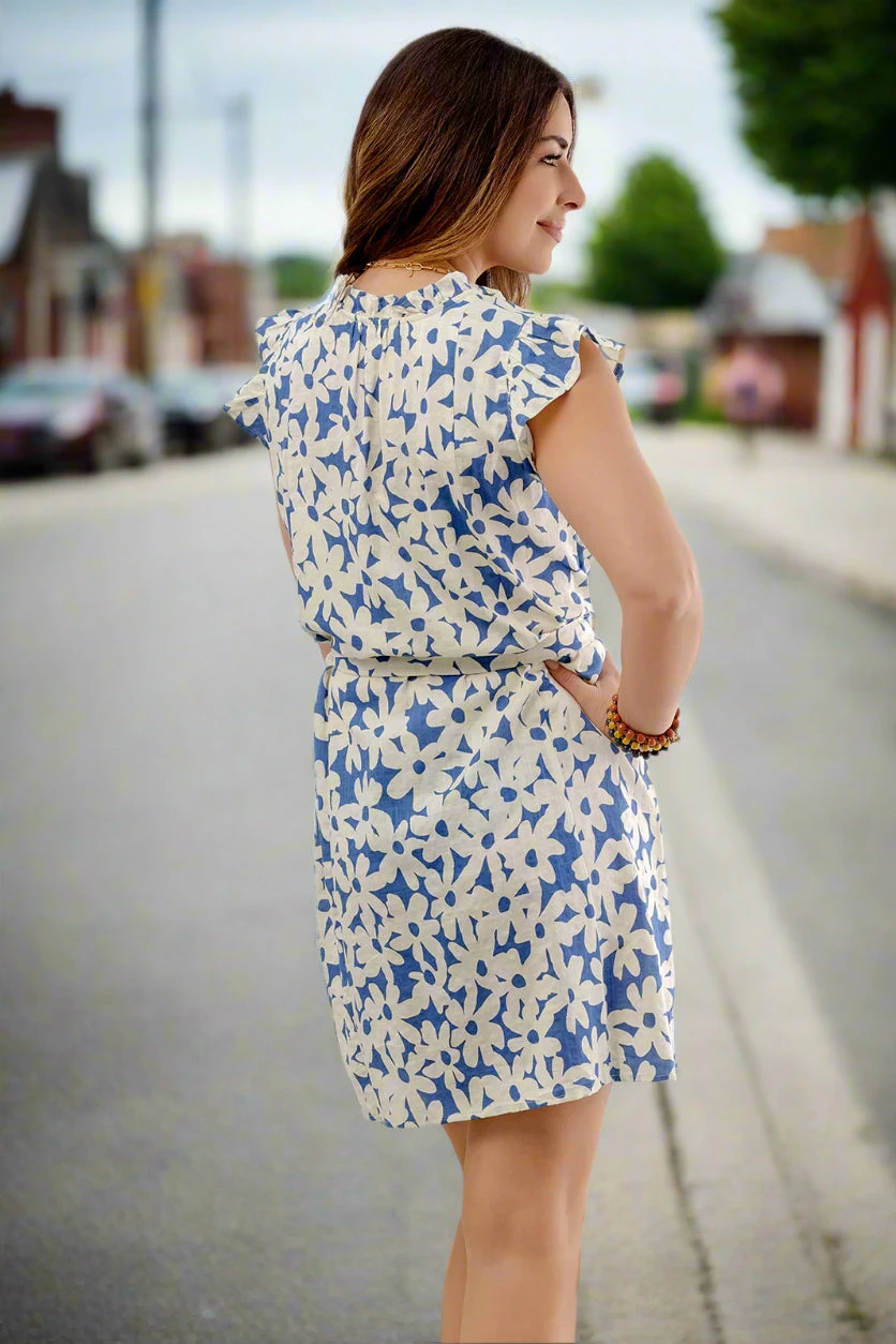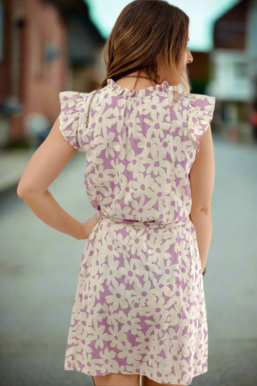 The fun florals and color really comes to life in this dress! This features ruffle trim, and a slimming tie waist to bring it all together! Just add your favorite accessories and footwear for church, a wedding, date night, work, or anywhere! Pair with a blazer, cardigan, or jacket and boots to bring you into those cooler months. This one is sure to go fast!