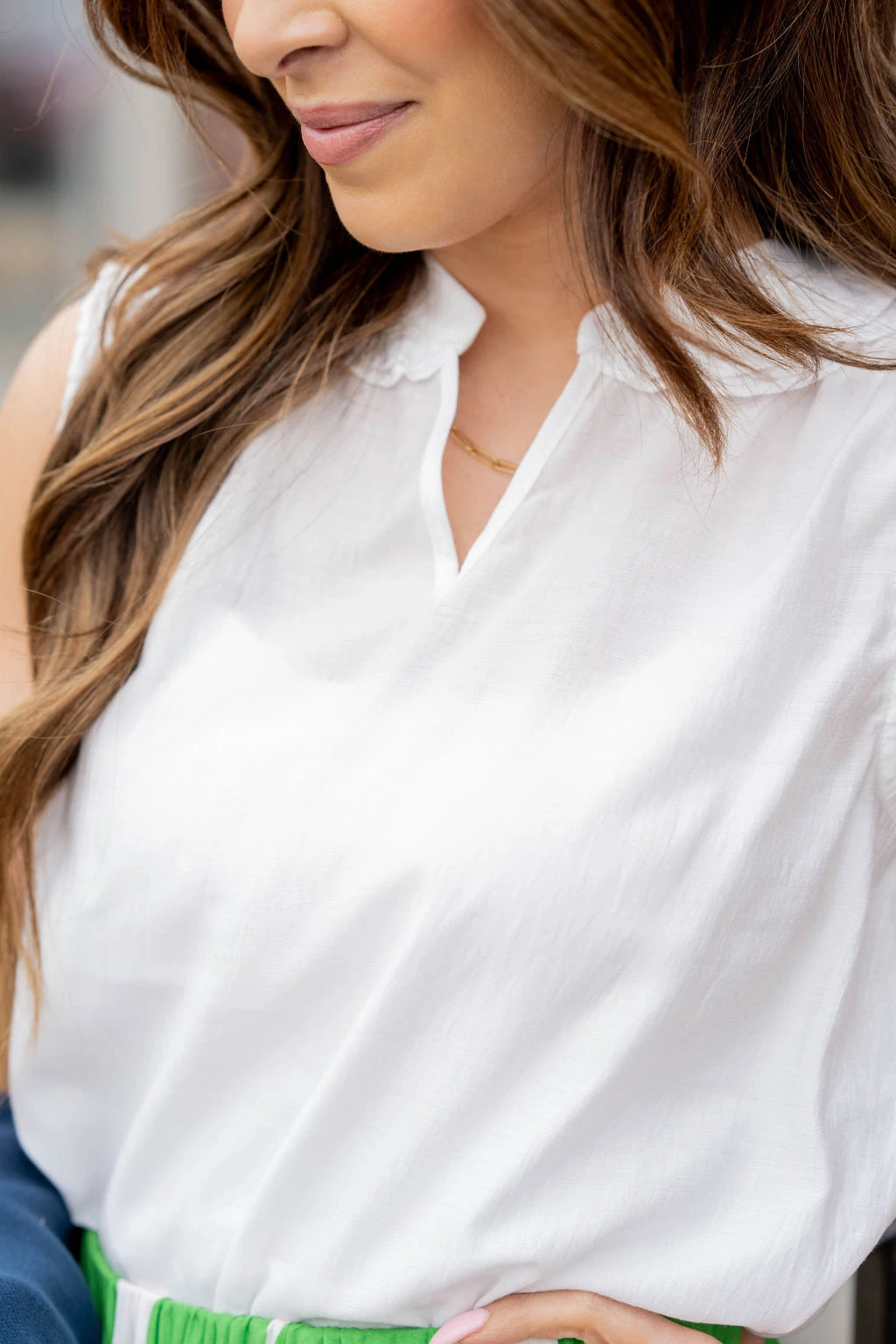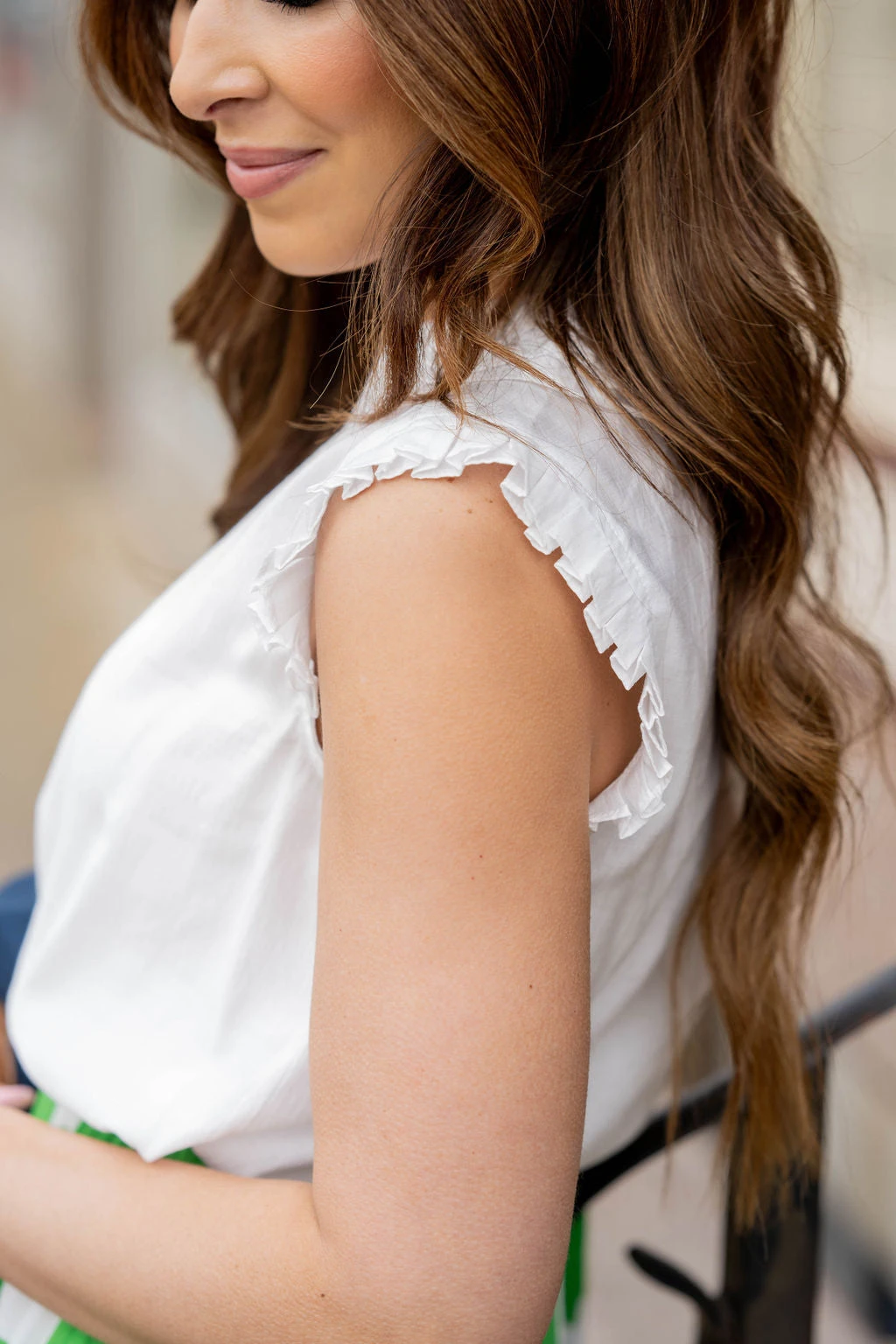 Everything looks better with ruffles! The plated ruffle trim accents on this tank set it apart from the rest! Tuck into your favorite high-waisted shorts or patterned skirt for those hot sunny days or use as a layering piece with your favorite cardigan or shacket for the cooler ones!