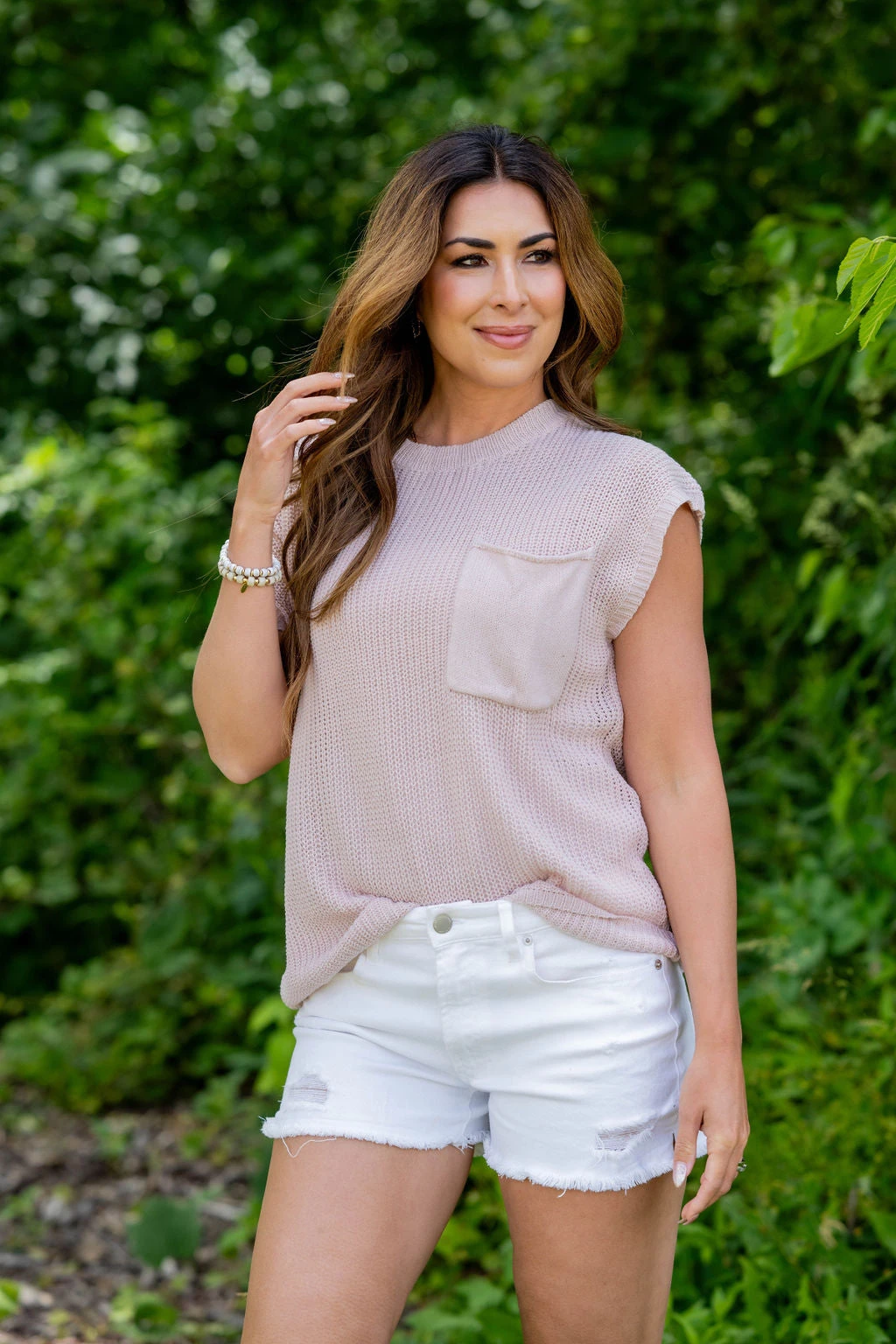 We love this unique tee! The knit material tee and pocket accent make this a must have! Wear alone with shorts or a skirt in the warmer months or use as a layering piece for your cardigans, blazers, or shackets in the cooler ones!