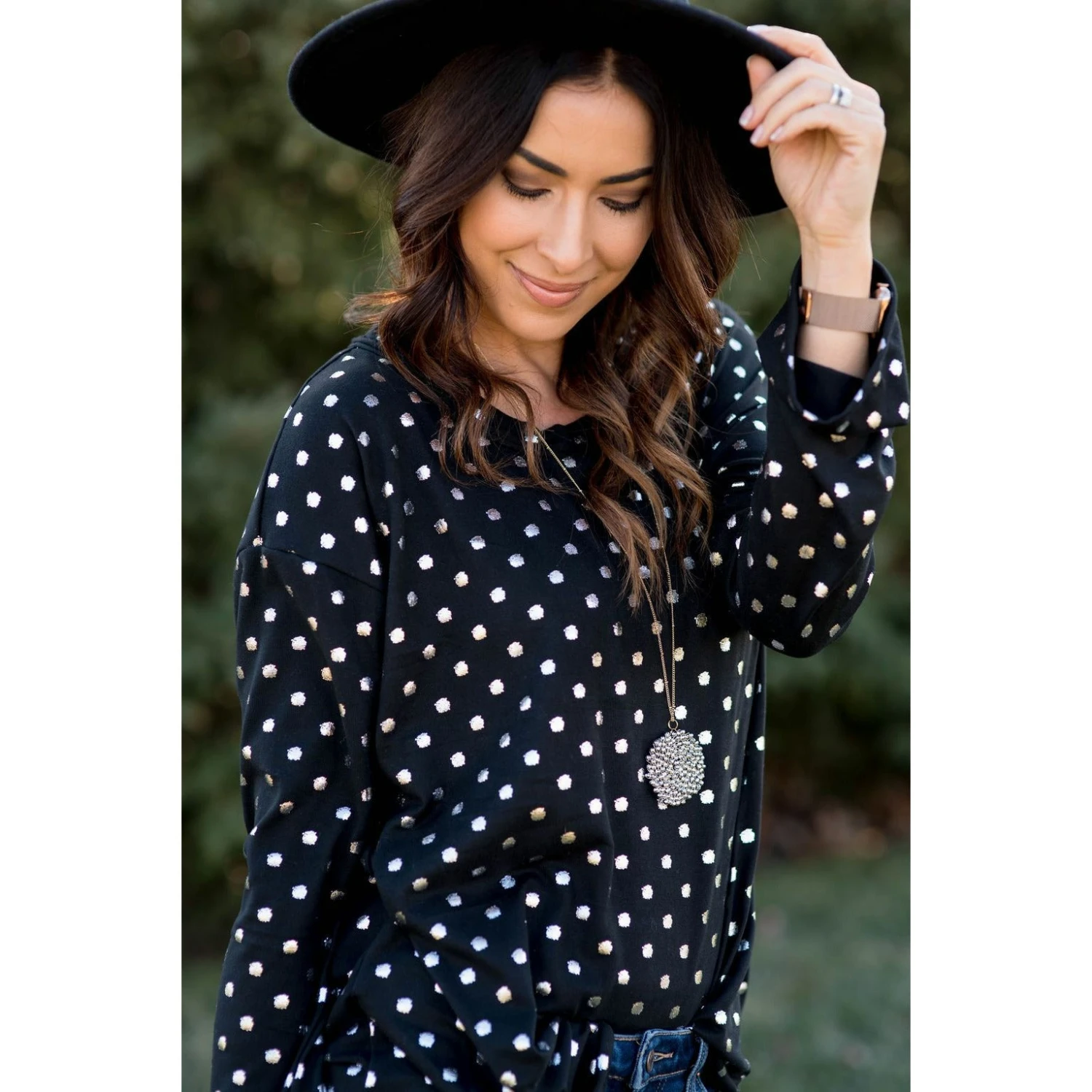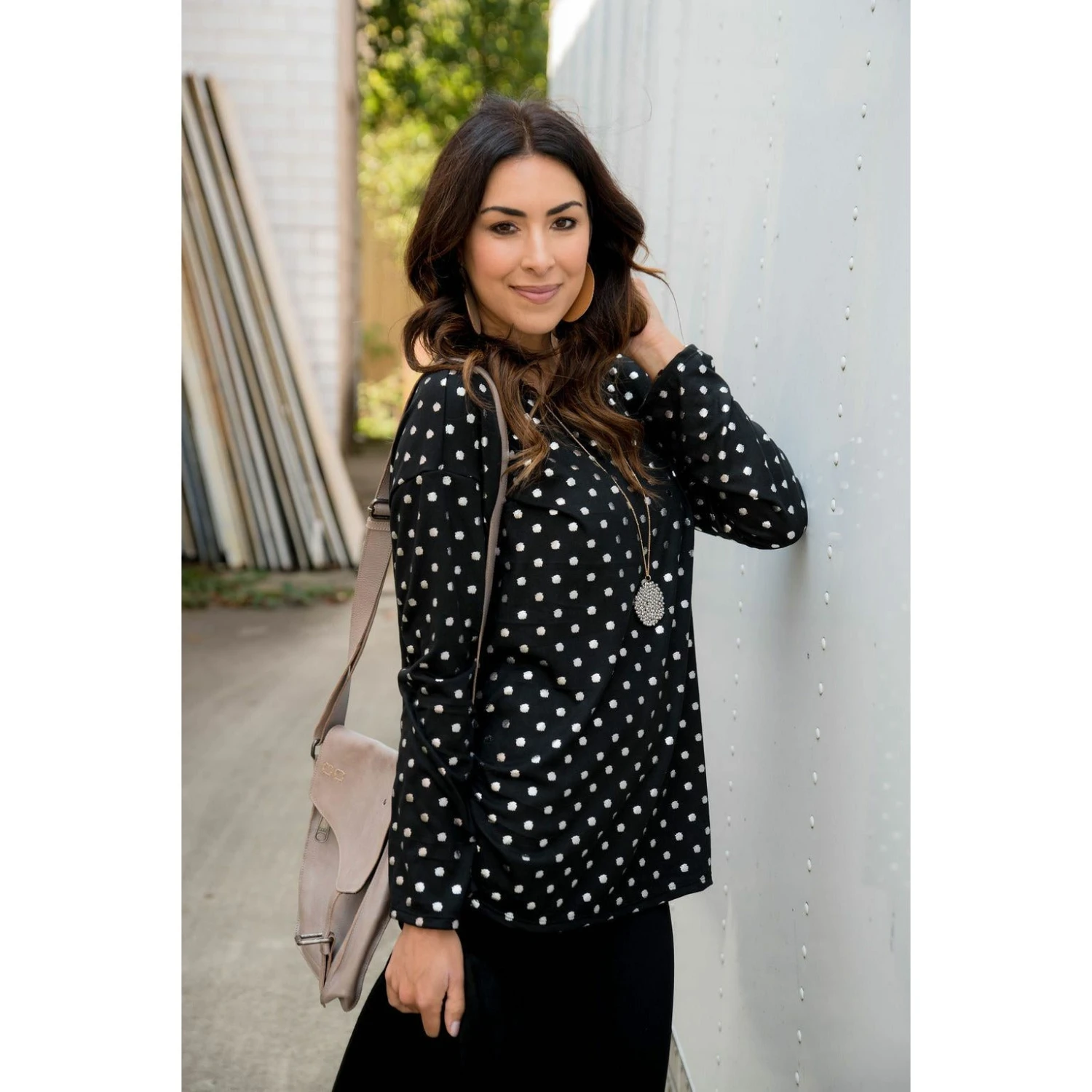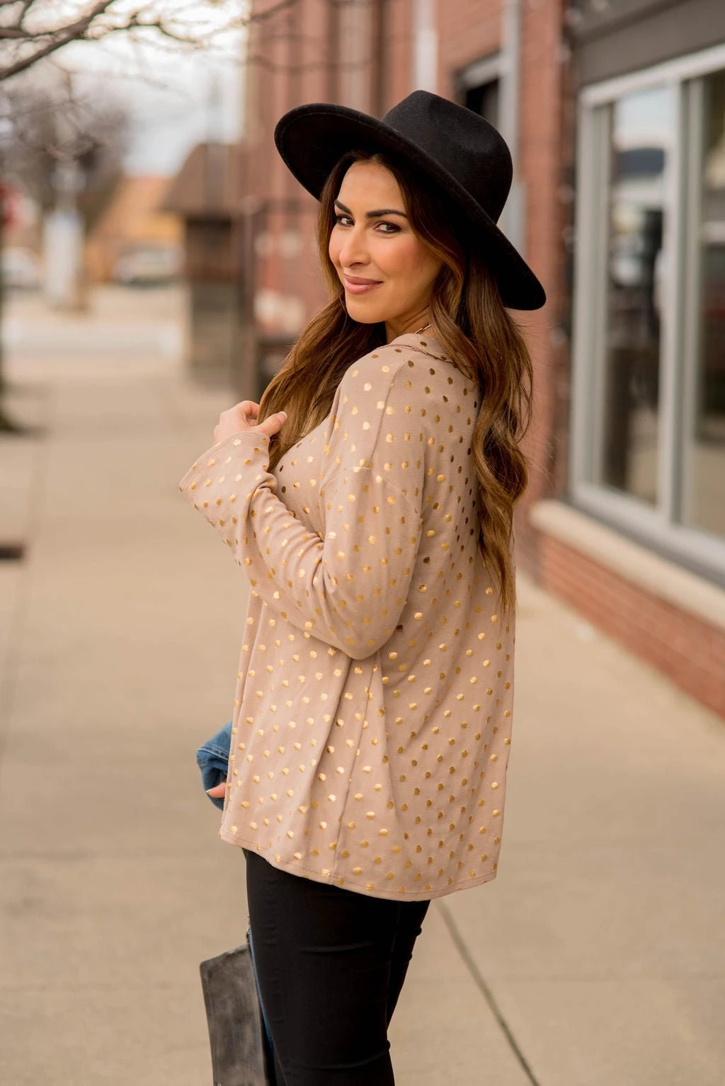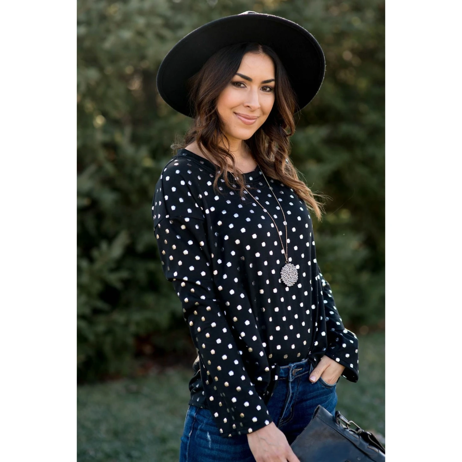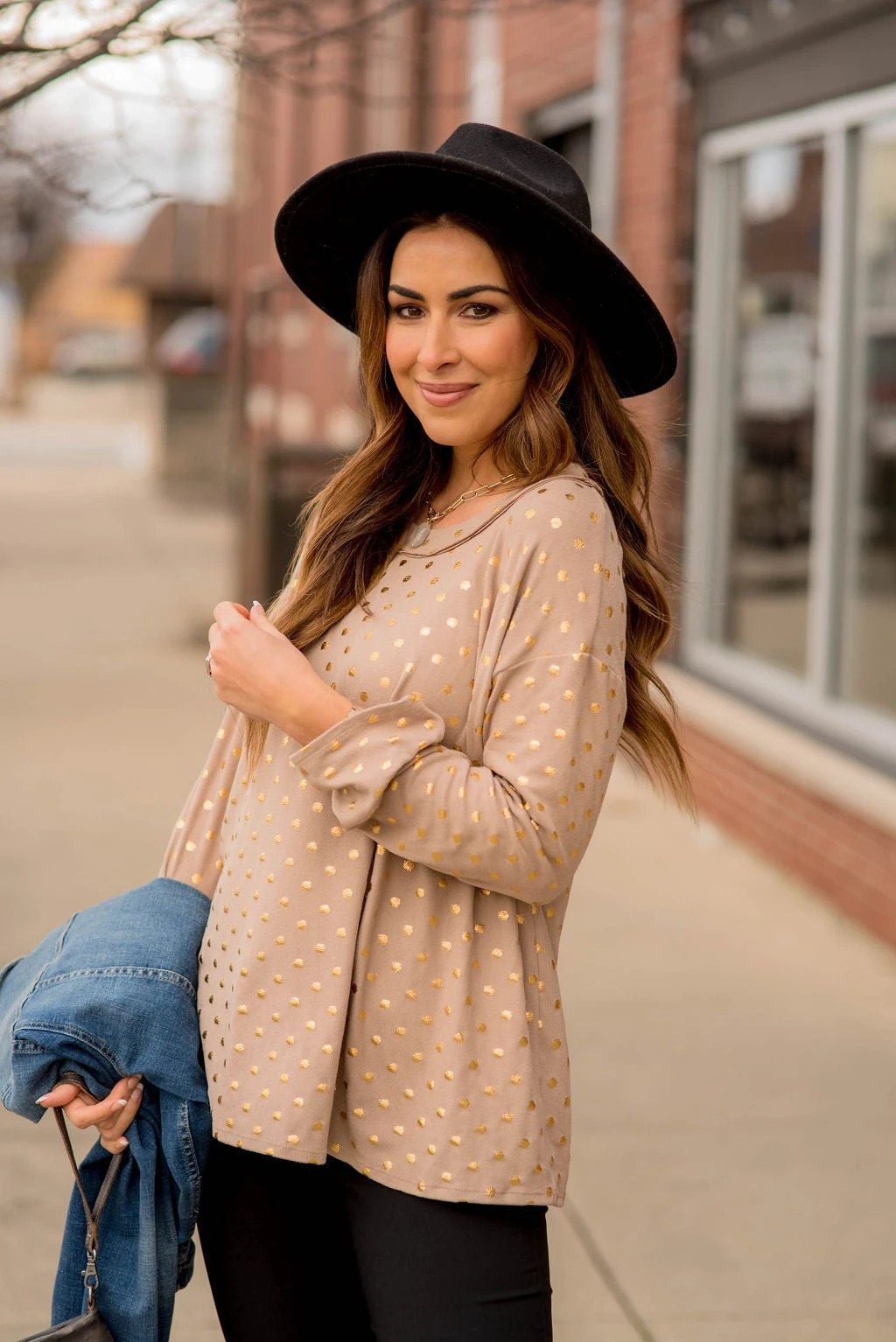 This basic tee is perfect for layering! We love the gold accents, they make the shirt stand out! Add a jacket to take your outfit to the next level!