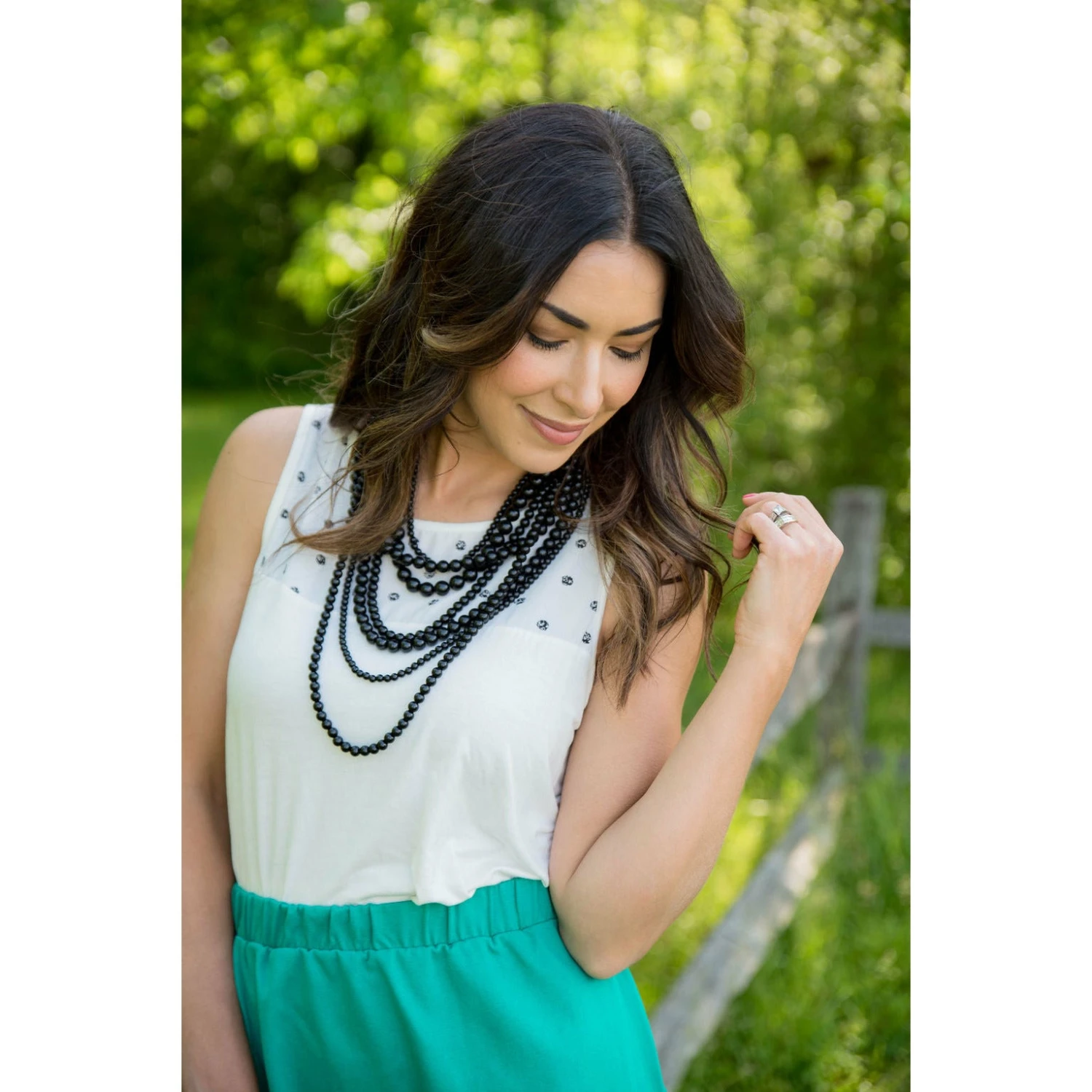 Everybody loves polka dots! This tank offers you so much with how versatile it can be! It can be paired with any cardigan or worn alone for a more casual look.
