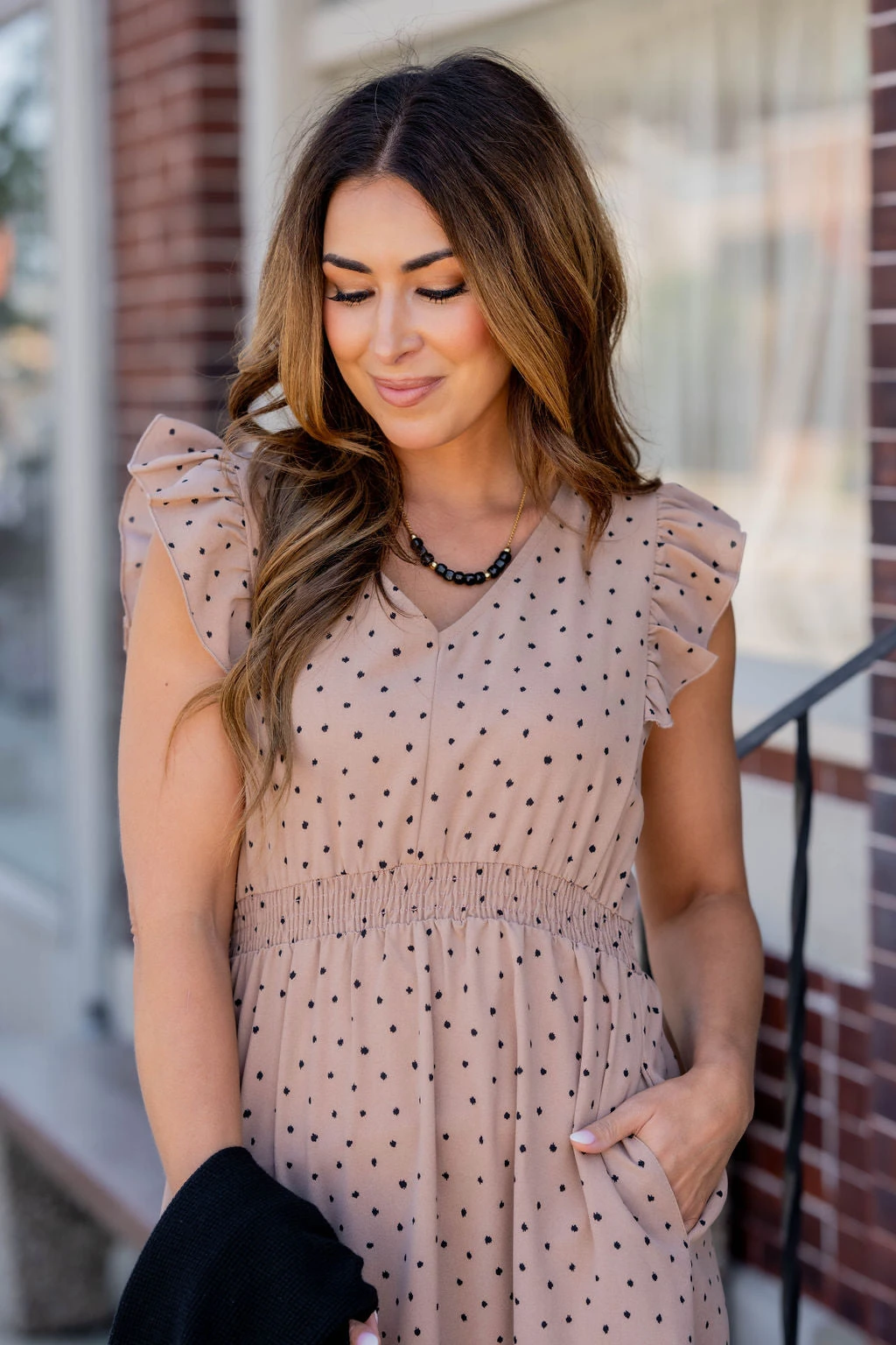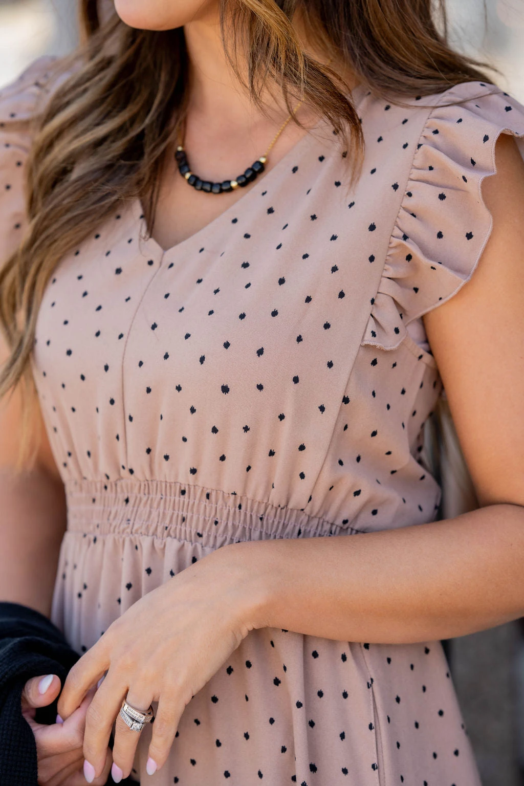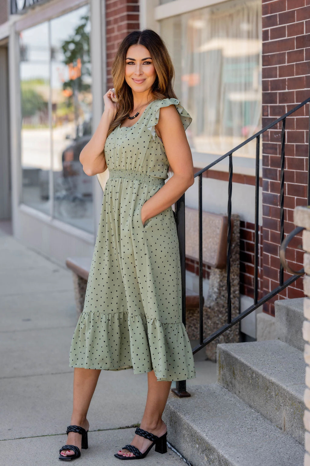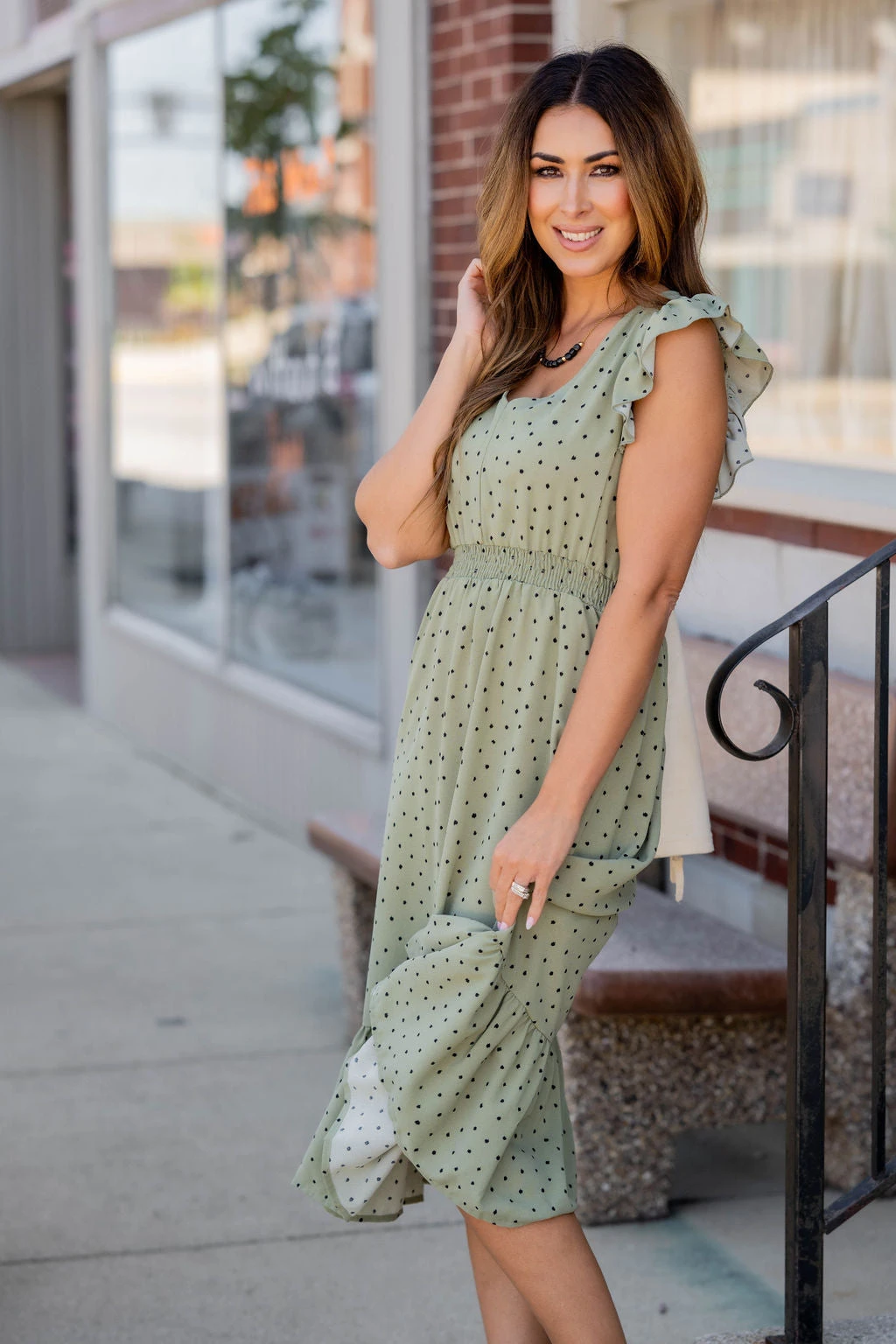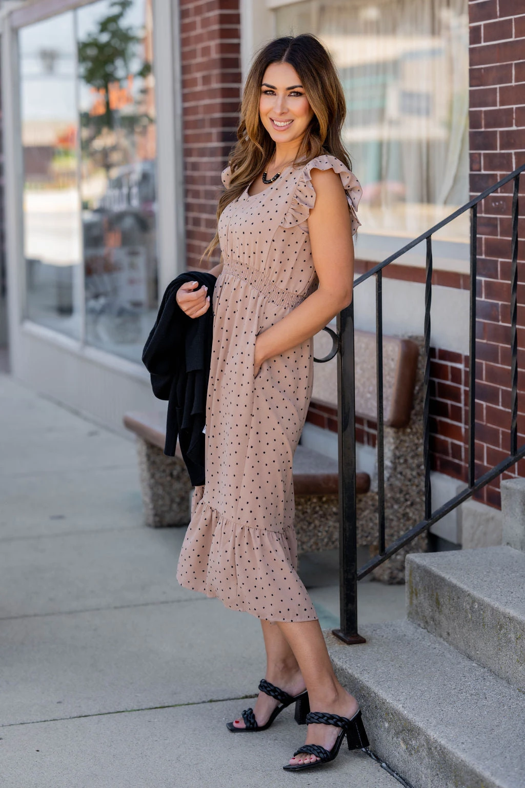 This is the perfect dress for any occasion. The midi length is appropriate for any event, and the lightweight material and flowy fit is great for any season. Wear on its own with the cute ruffle trim for the warmer months, or pair with a colored cardigan and a pair of booties for the cooler ones. We know how matter you wear this, you will make it fit your style!