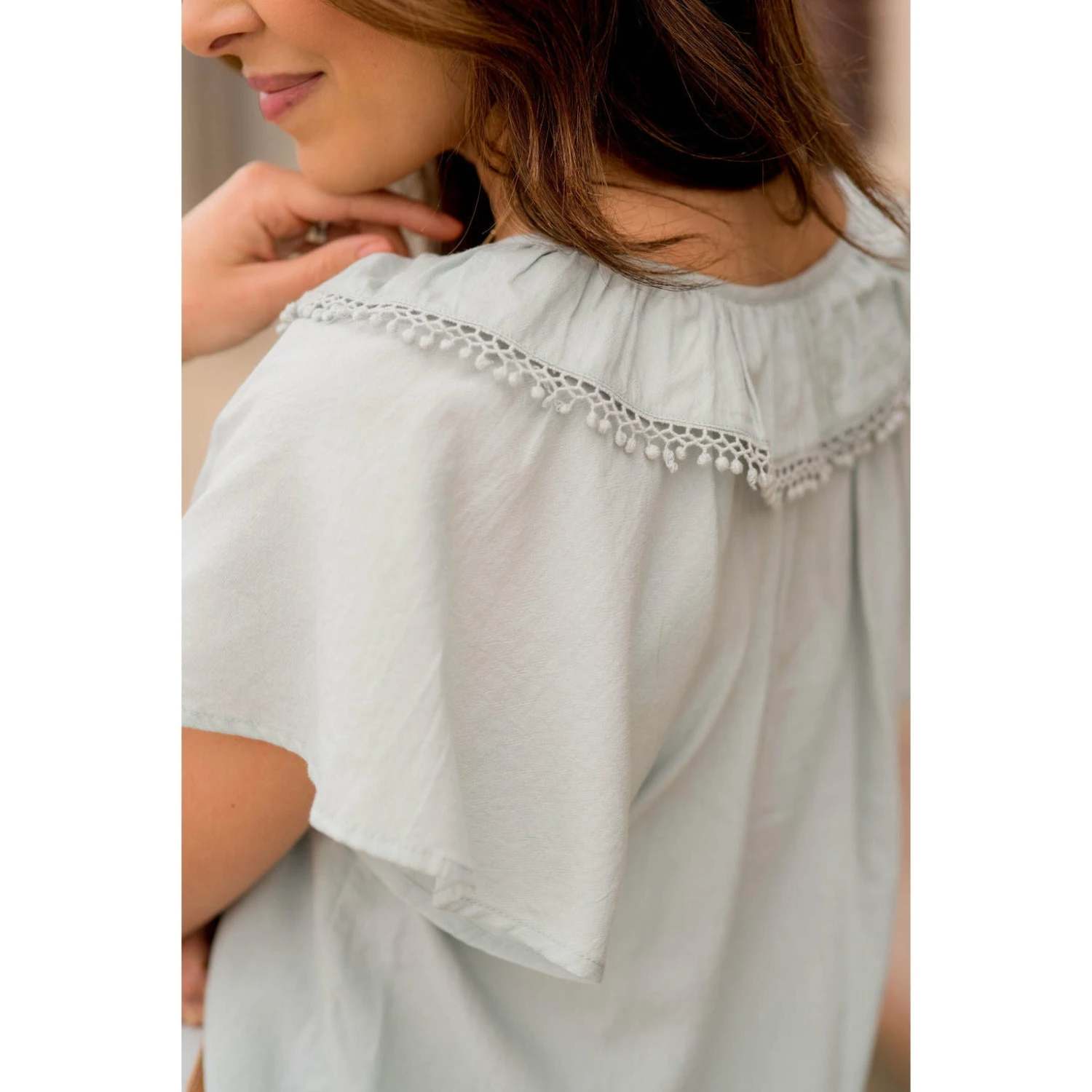 Be the first to review “Pom Trim Flutter Sleeve Blouse” Cancel reply