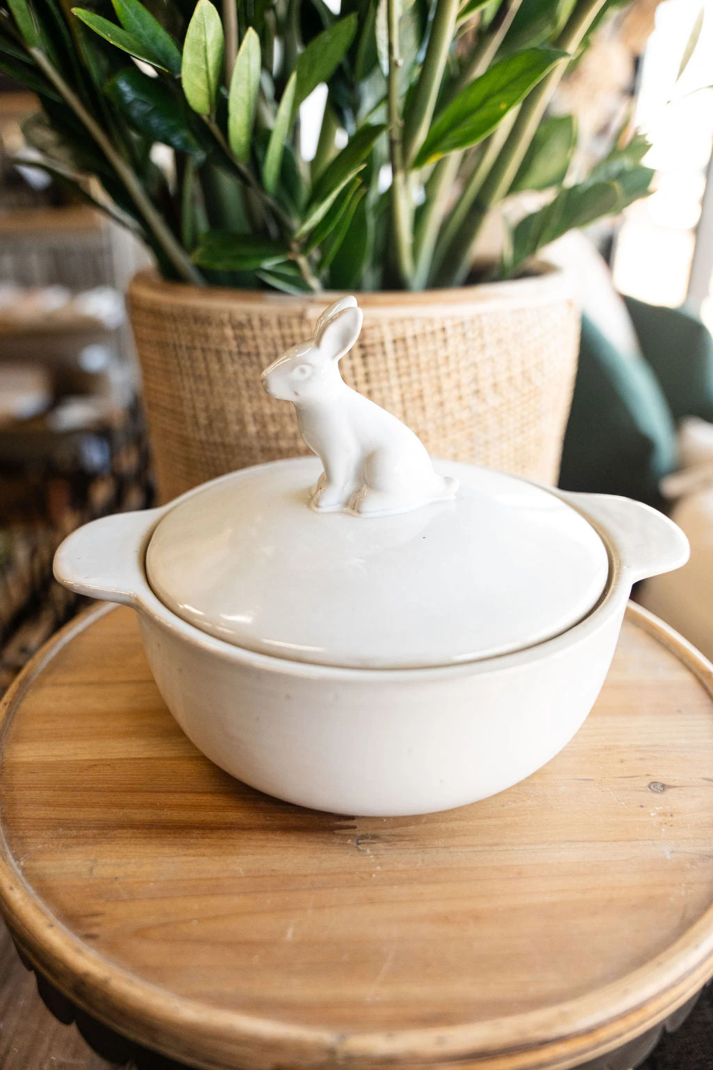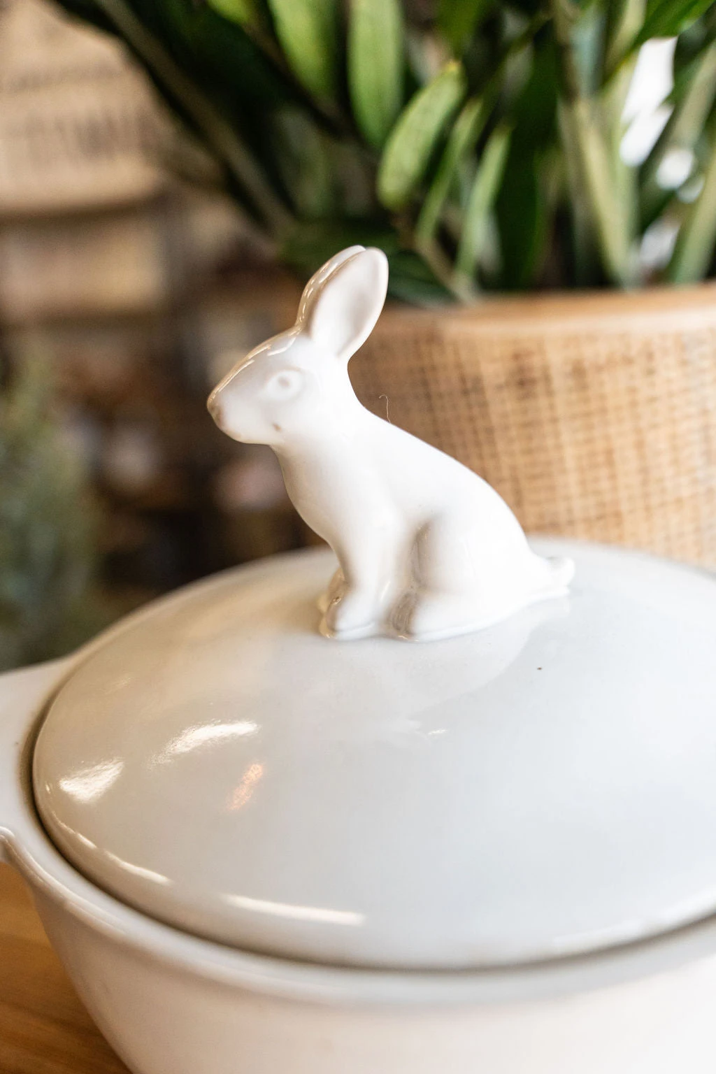 Elevate your serving dishes with this stunning rabbit accented dish! This is one that you are going to want to leave out of your cupboards to show off!