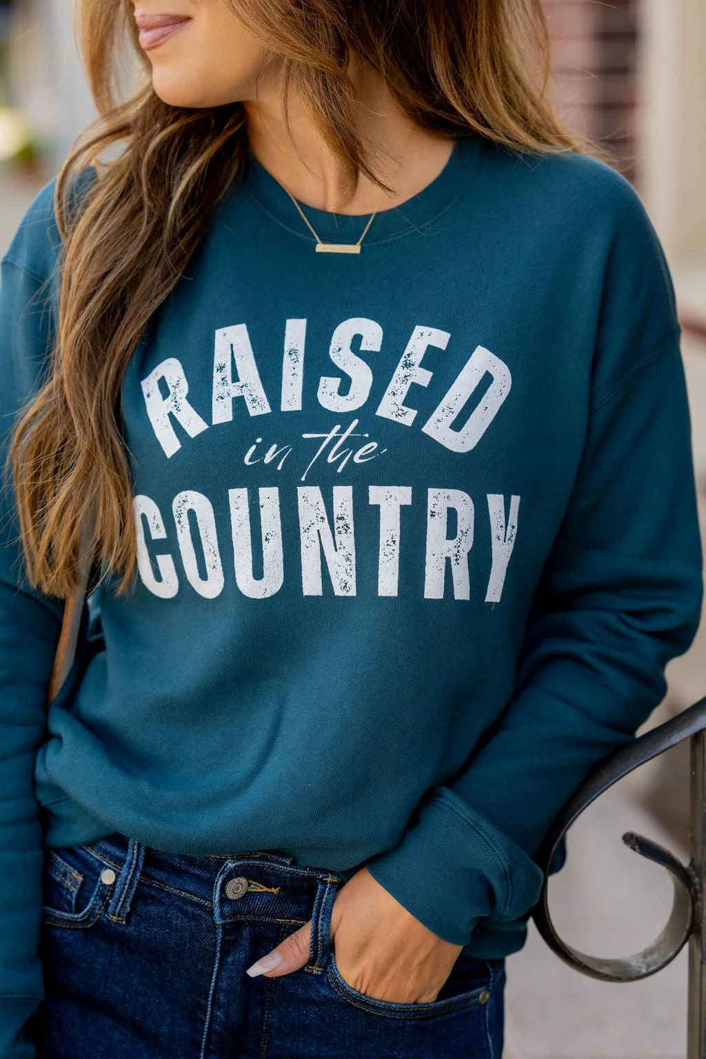 Be the first to review “Raised In The Country Cursive Graphic Crewneck” Cancel reply