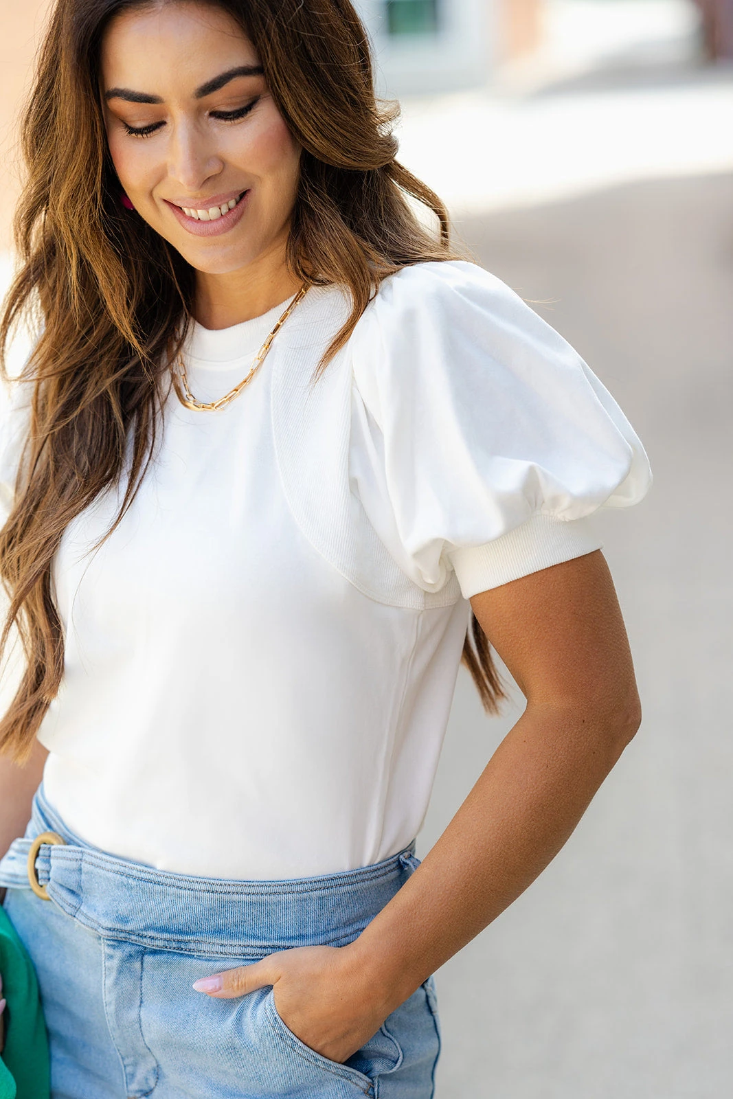 The puffed sleeves and ribbed accents really set this tee apart from the rest! We love that you can pair this with shorts or a skirt in the warmer months or with a pair of denim and a cardigan for the cooler ones! This can be dressed up or down with ease for anywhere the day takes you!