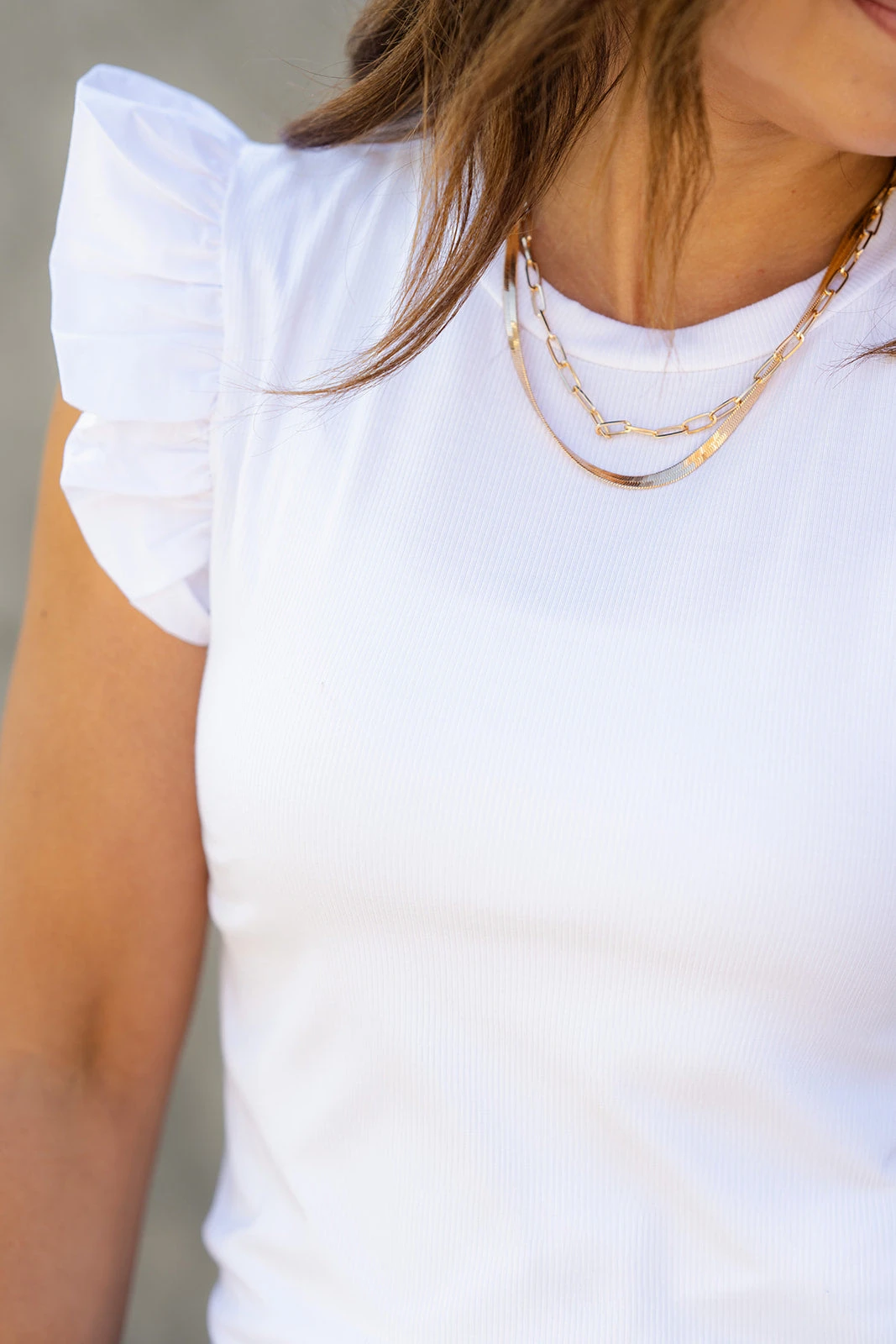 A soft and lightweight tank elevated with a solid flutter trim! This tank can be worn alone in the warmer months with shorts or a skirt or used as a layering piece for all of your cardigans or shackets in the cooler ones!
