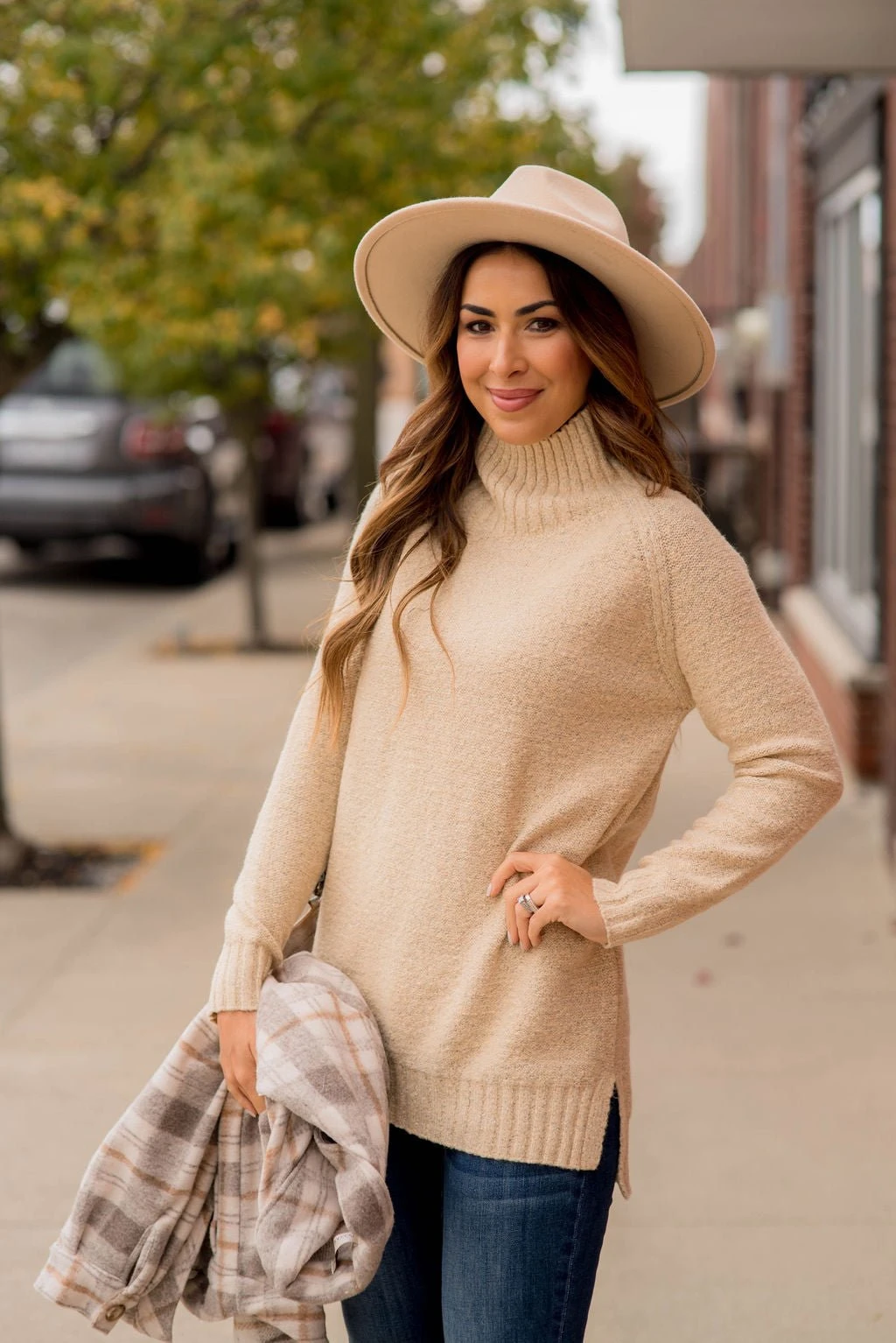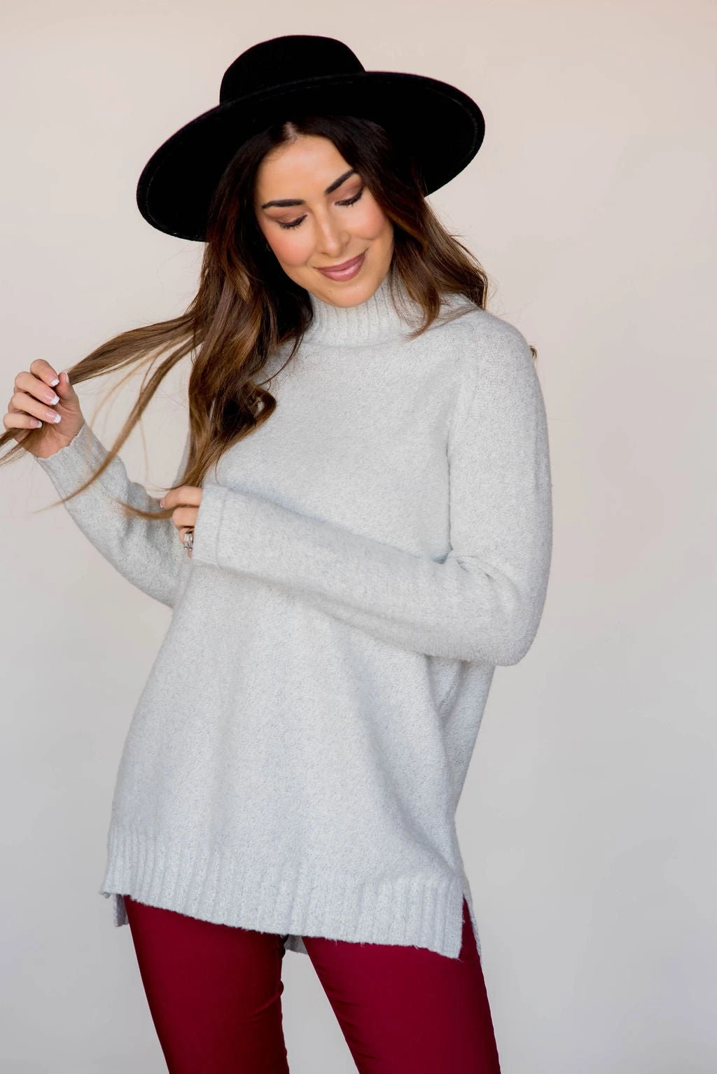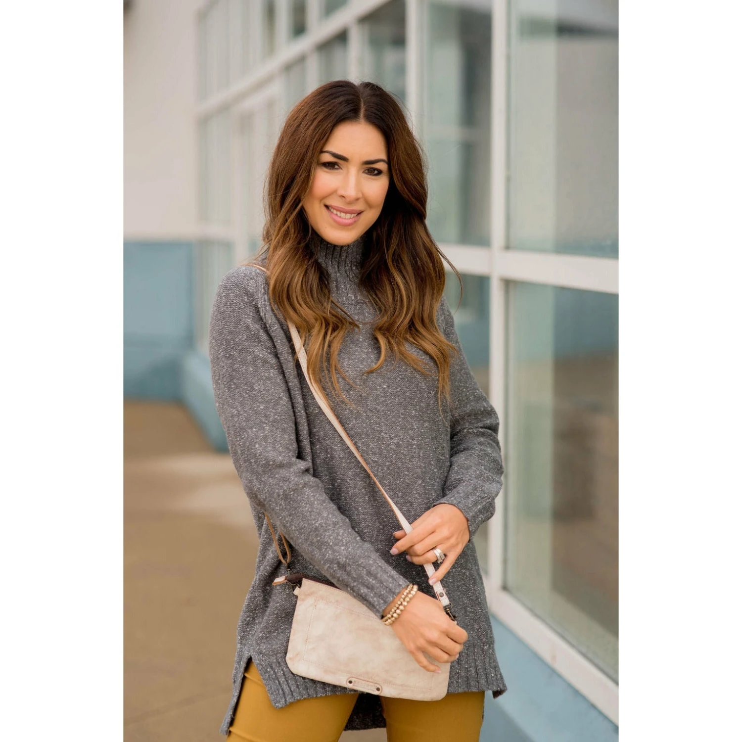 Check out our Ribbed Trim Turtleneck Tunic! This tunic sweater is longer, making it perfect to wear with leggings! Want to complete your perfect Winter look? Wear a pair of Blaire – Graphito Rustic short boots to make this look pop even more!