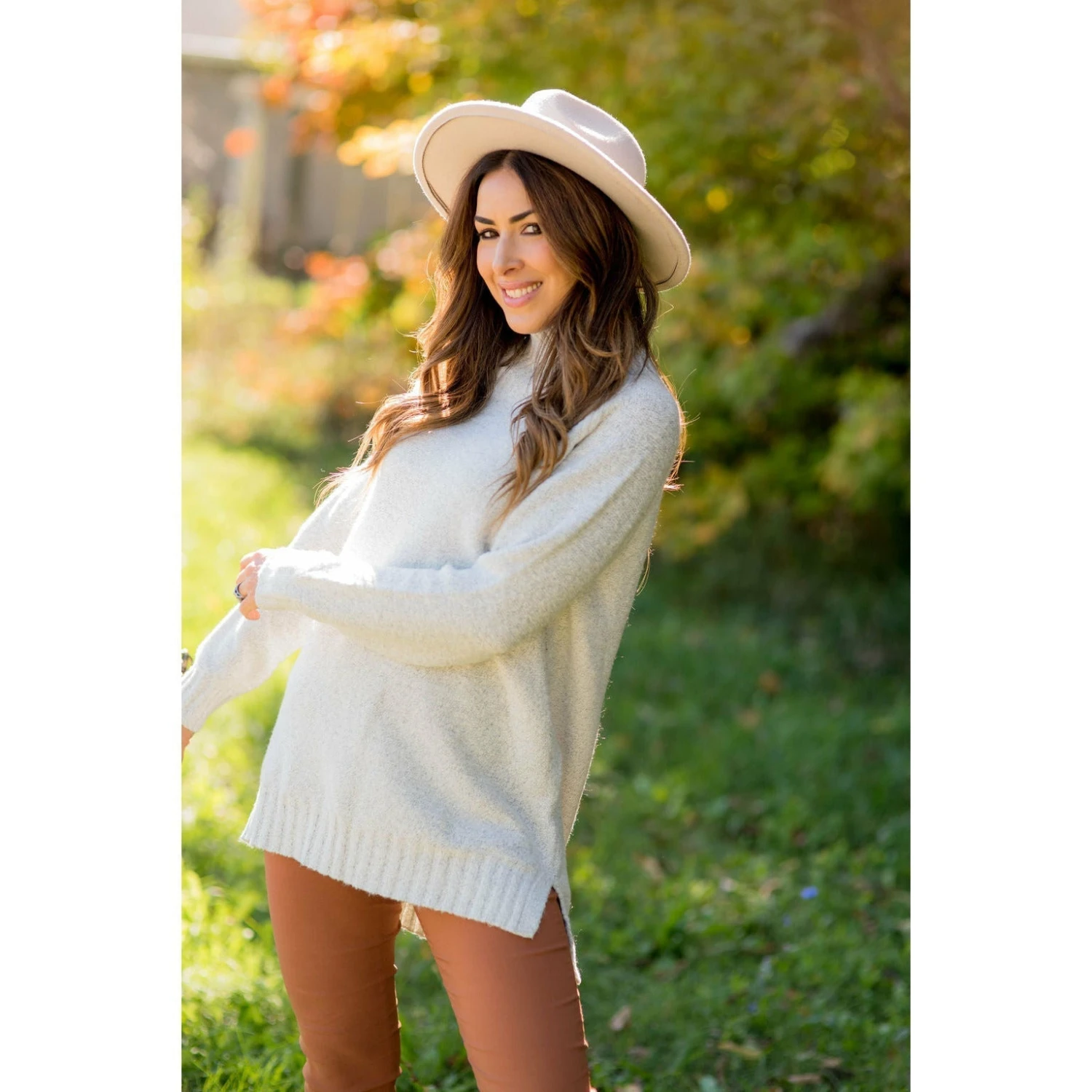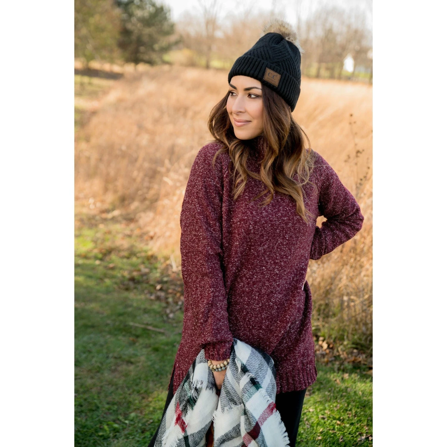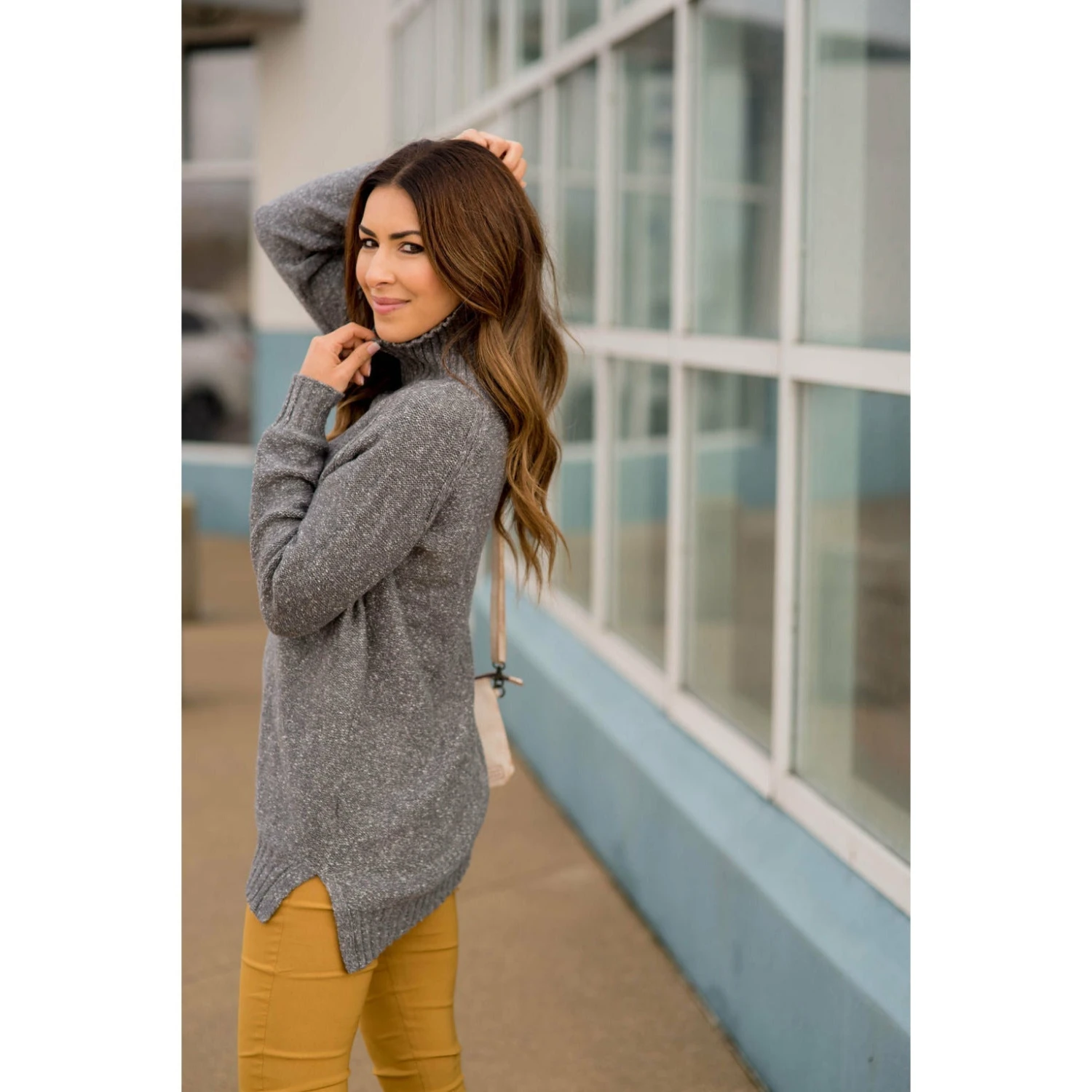 Check out our Ribbed Trim Turtleneck Tunic! This tunic sweater is longer, making it perfect to wear with leggings! Want to complete your perfect Winter look? Wear a pair of Blaire – Graphito Rustic short boots to make this look pop even more!