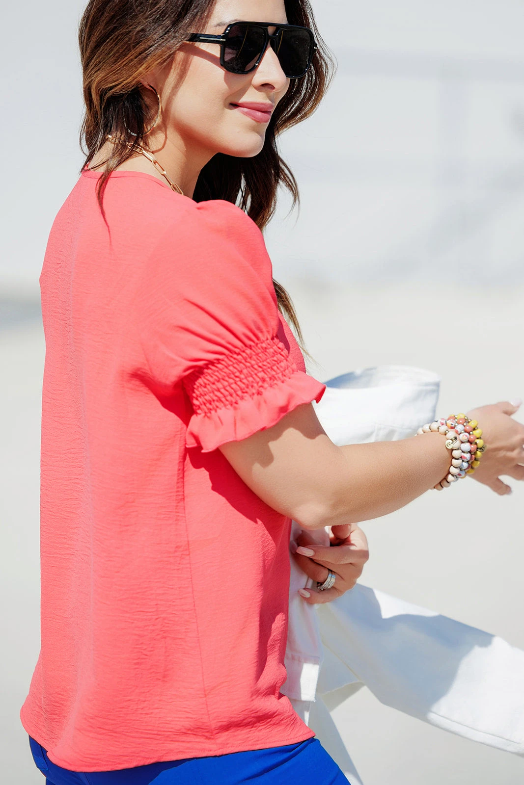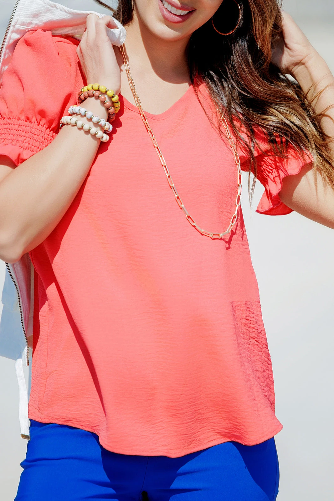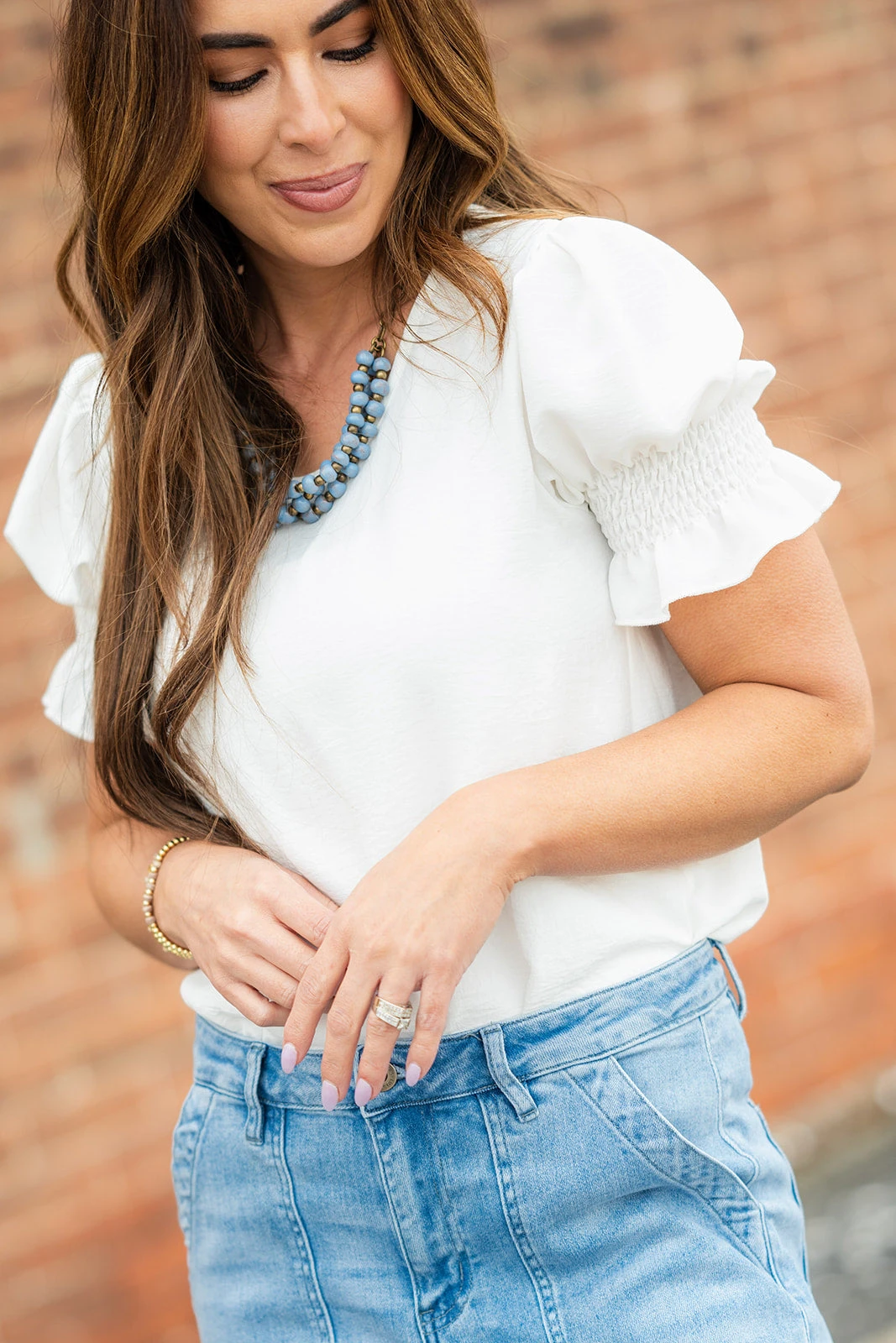 The fun puff sleeves really set this blouse apart from the rest! Pair with shorts or a skirt in the warmer months or with denim or our Betsey’s Jeggings in the cooler ones! Don’t forget your favorite accessories for a complete Betsey’s look! The simplicity of this allows you to dress it up or down with ease, making it ideal for everyday wear!