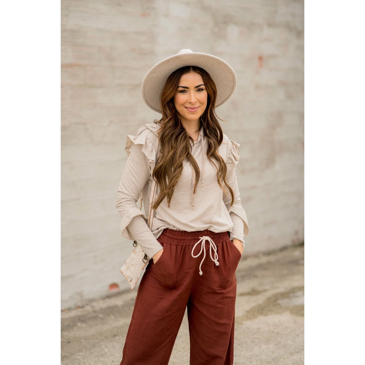 Who doesn’t love ruffles?! Add it to a hoodie and it just makes this such a flattering and fun top.