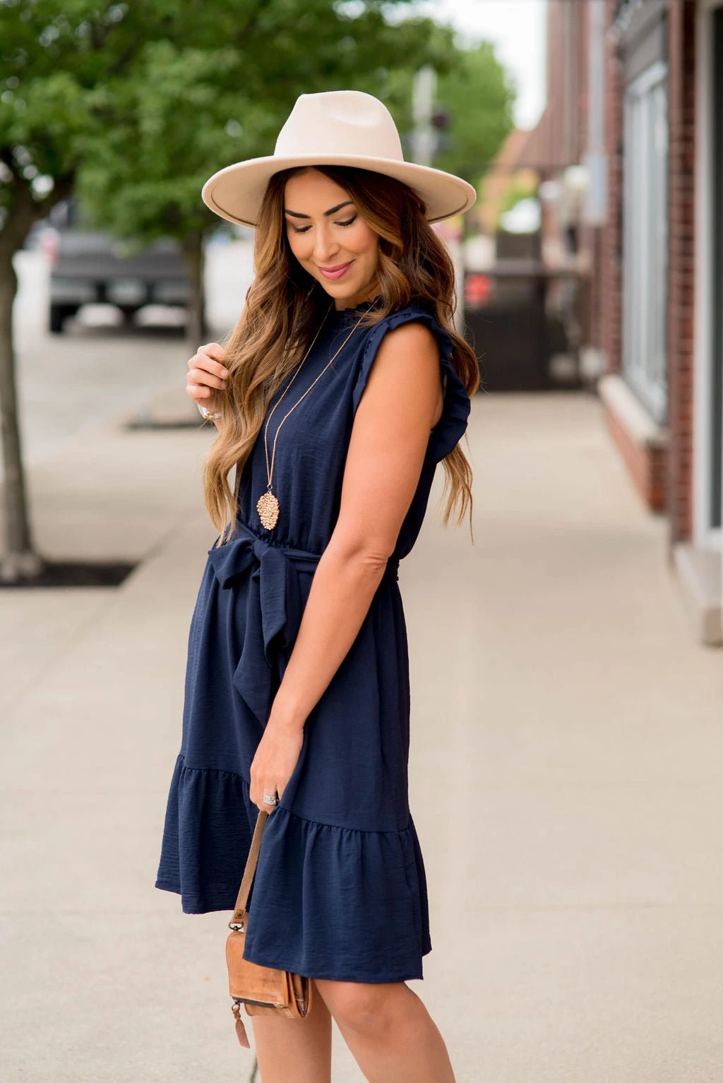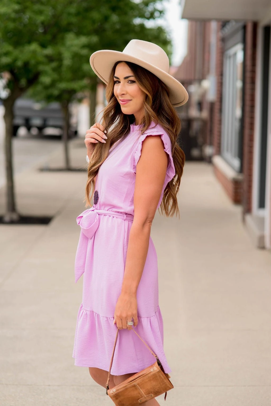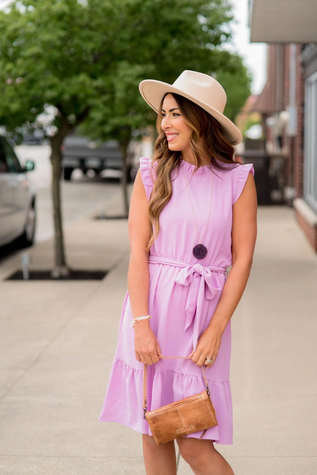 Looking for a dressy or casual outfit? Or both? This ruffled sleeve dress is the one for you. Cinched at the waist with an added tie, this outfit can be dressed up or down, depending on the mood you are in! Good for every season – add a cardigan and boots for Winter or Fall, sandals for Summer or Spring. This is a dress for all year!