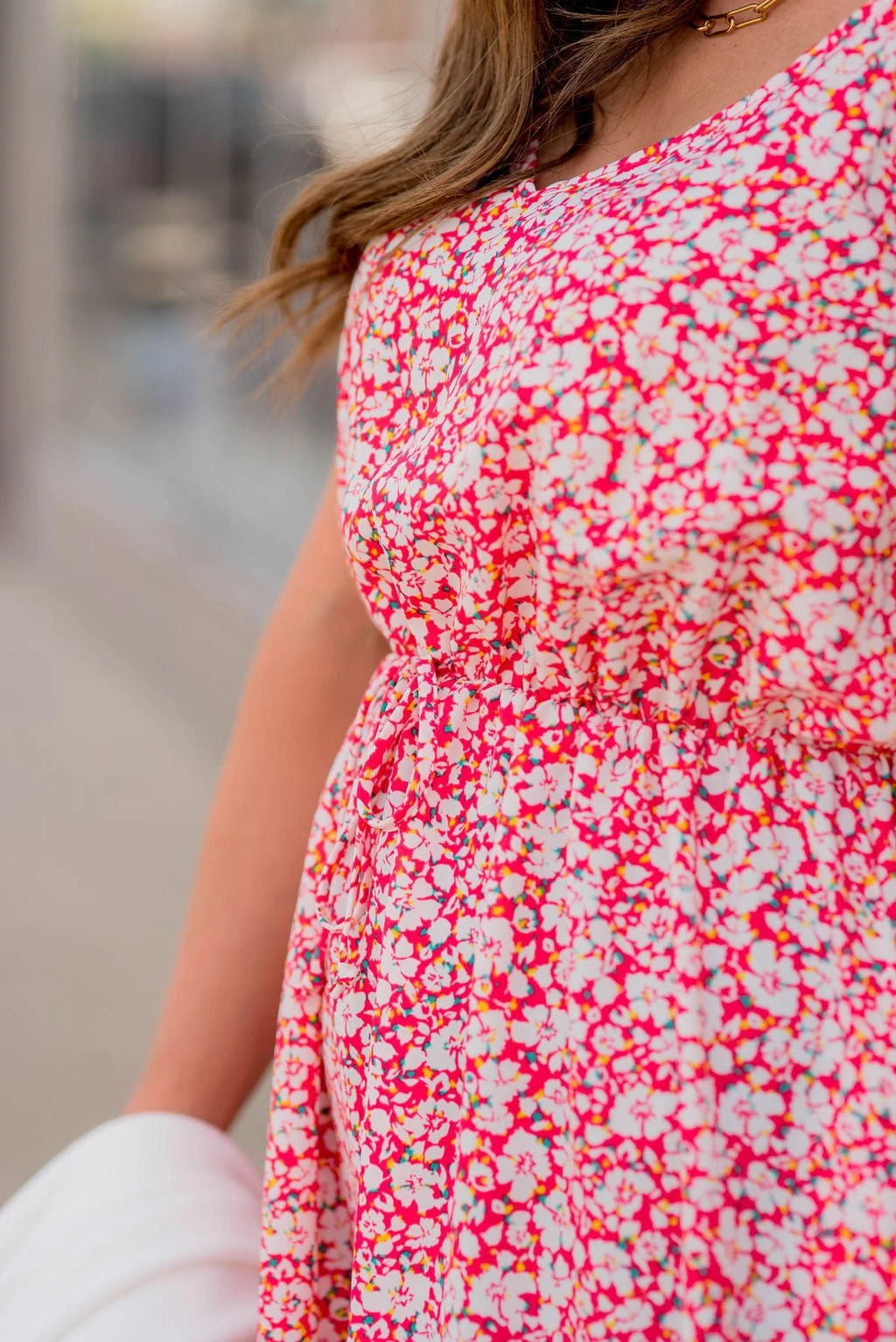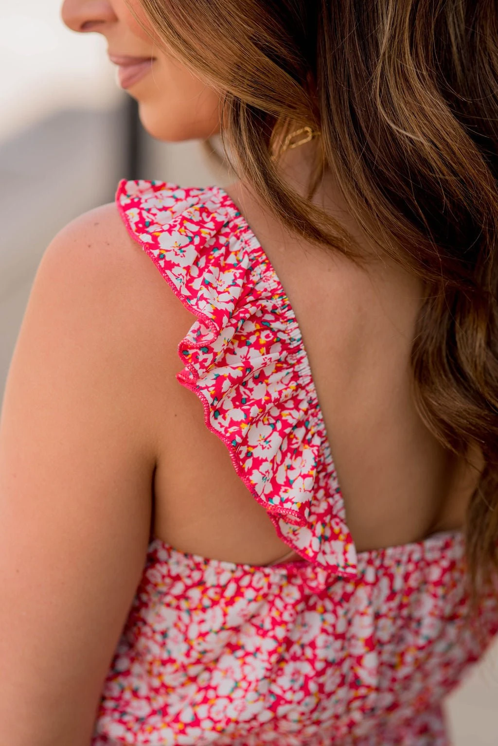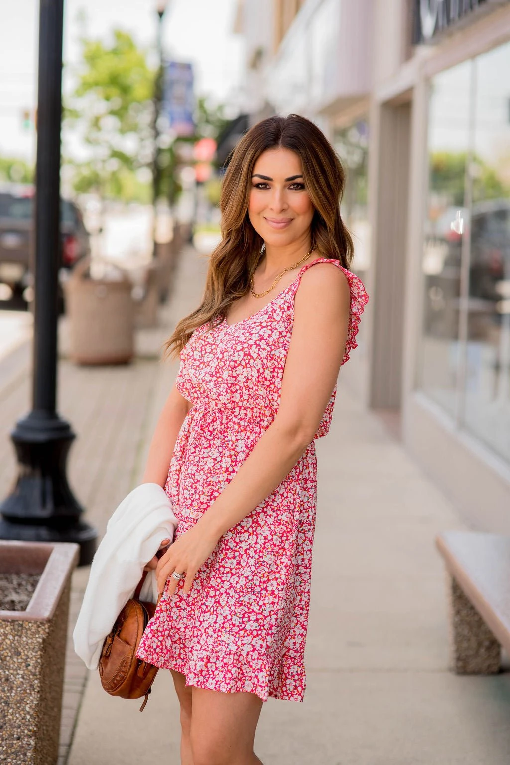 A super fun and flirty dress that’s perfect to take you from the office or the classroom to date night with ease! The bright and bold floral print is elevated with the ruffle accents on the straps and at the bottom! Wear this alone or layer with a cardigan, blazer, or jacket for the chillier days! Don’t forget your favorite accessories to really make it yours!
