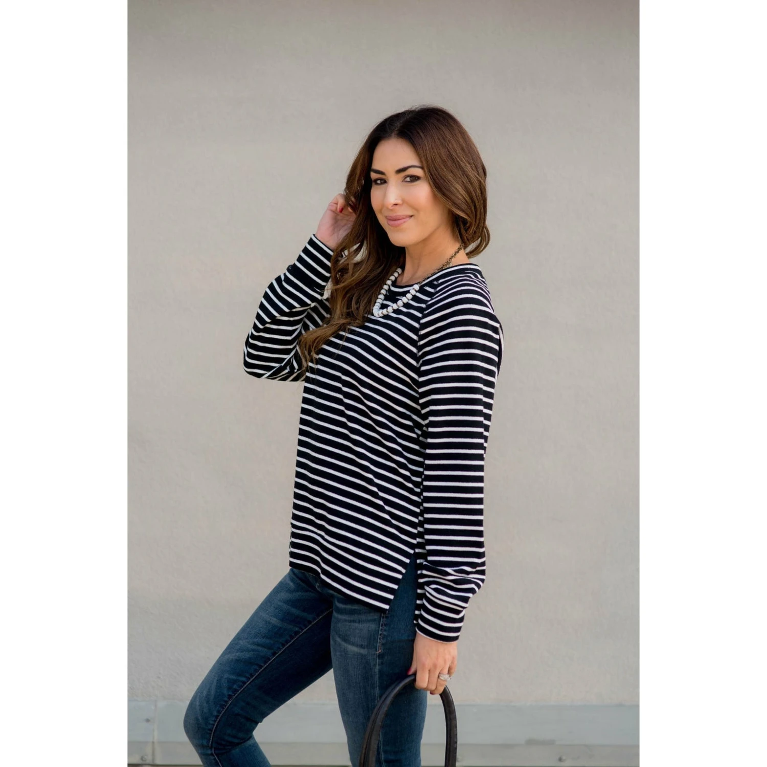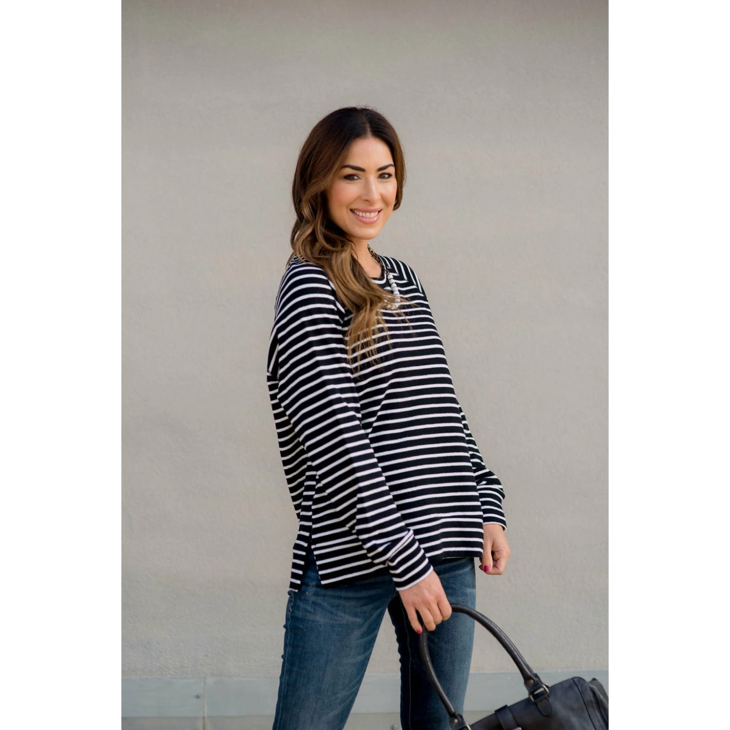Be the first to review “Sassy Side Split Striped Sweatshirt” Cancel reply