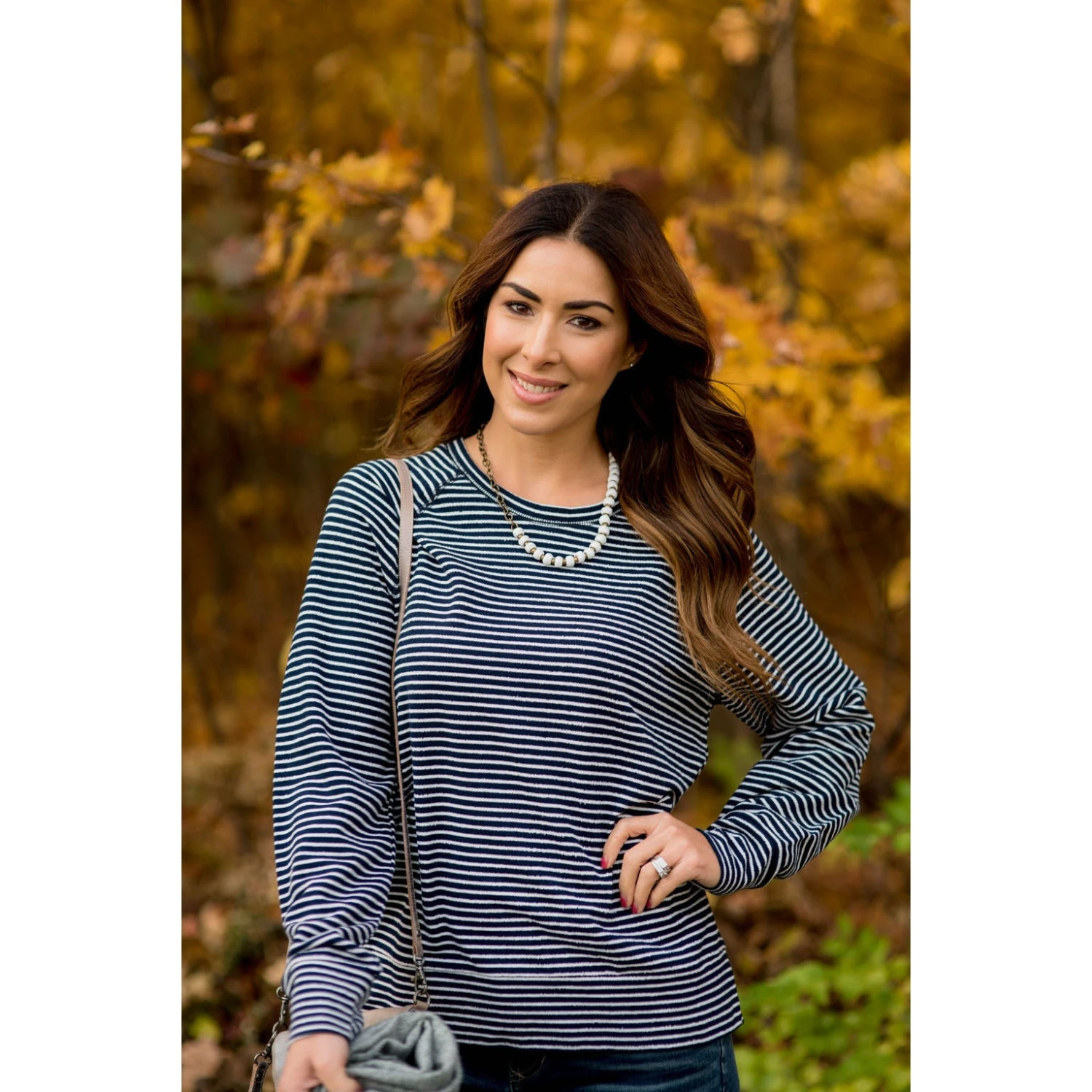 Want to be comfy, but still look cute? This is the sweatshirt for you! It is so soft and lightweight, yet still gives you that pulled together look! Wear it with jeans or jeggings!