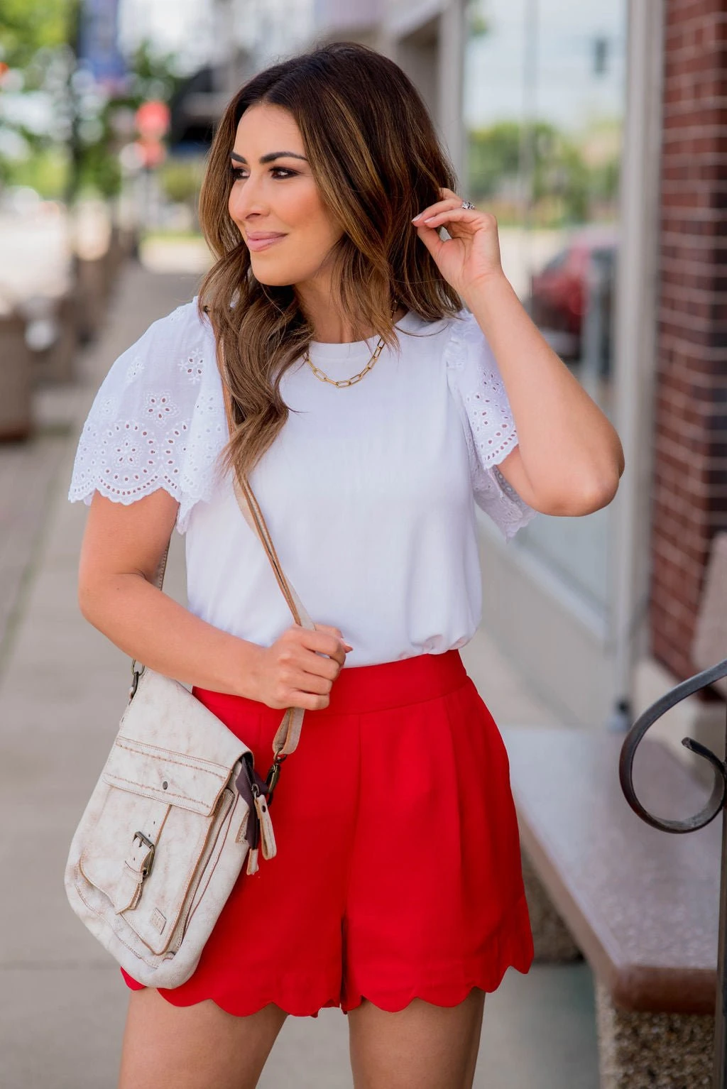 We’re loving the scallop trend! These scallop shorts are super cute and versatile! They can be dressed up by tucking a blouse into them with a statement necklace or dressed down with a graphic tee and a jean jacket to make them more casual. The high waist makes these shorts perfect for all shapes and sizes and they even have pockets!