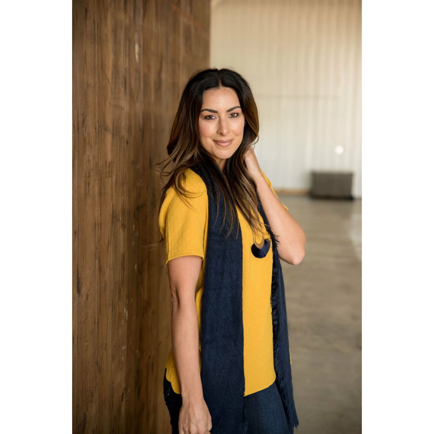Look at the beautiful detail on the back of this shirt! We love the way the scallop detailing layers over each other.