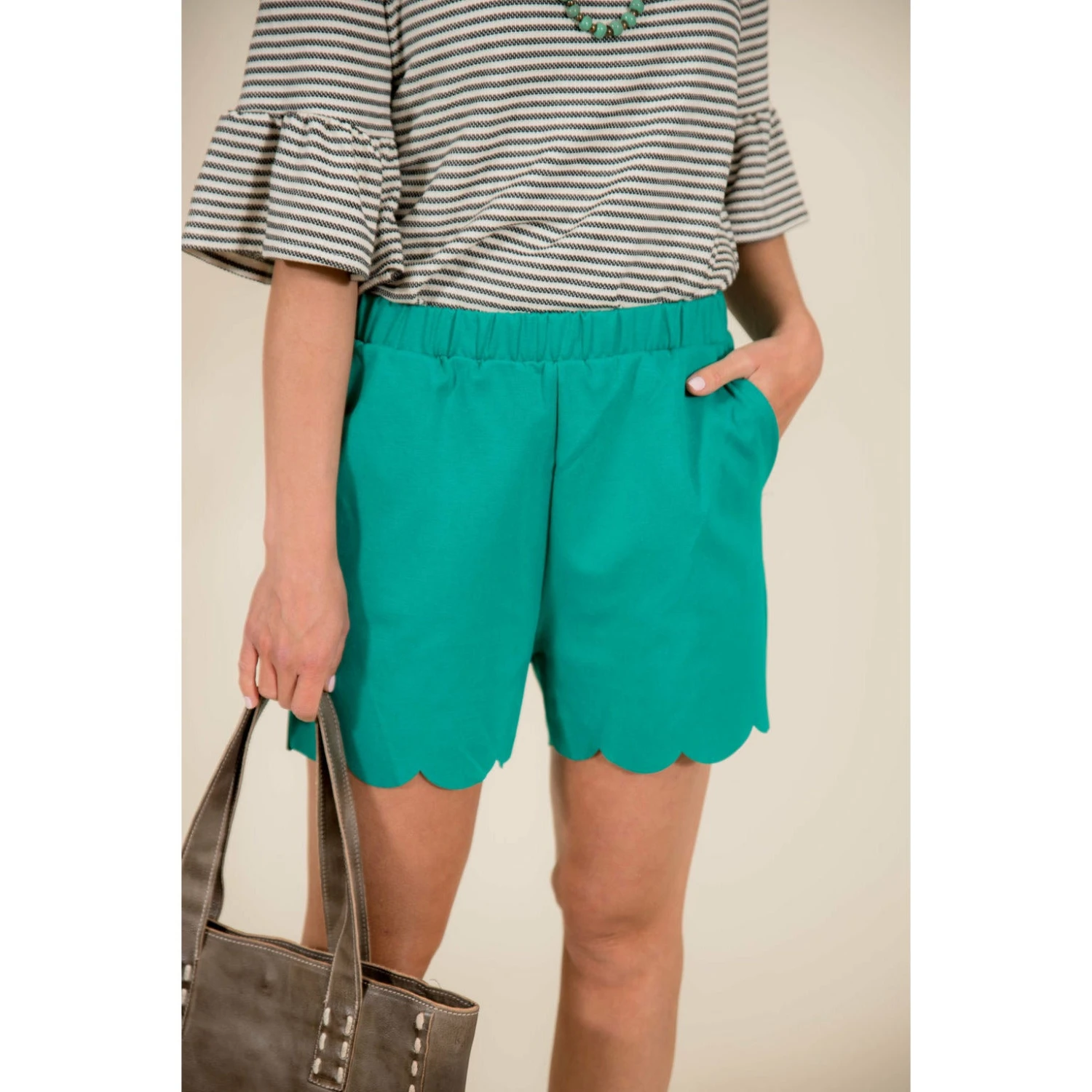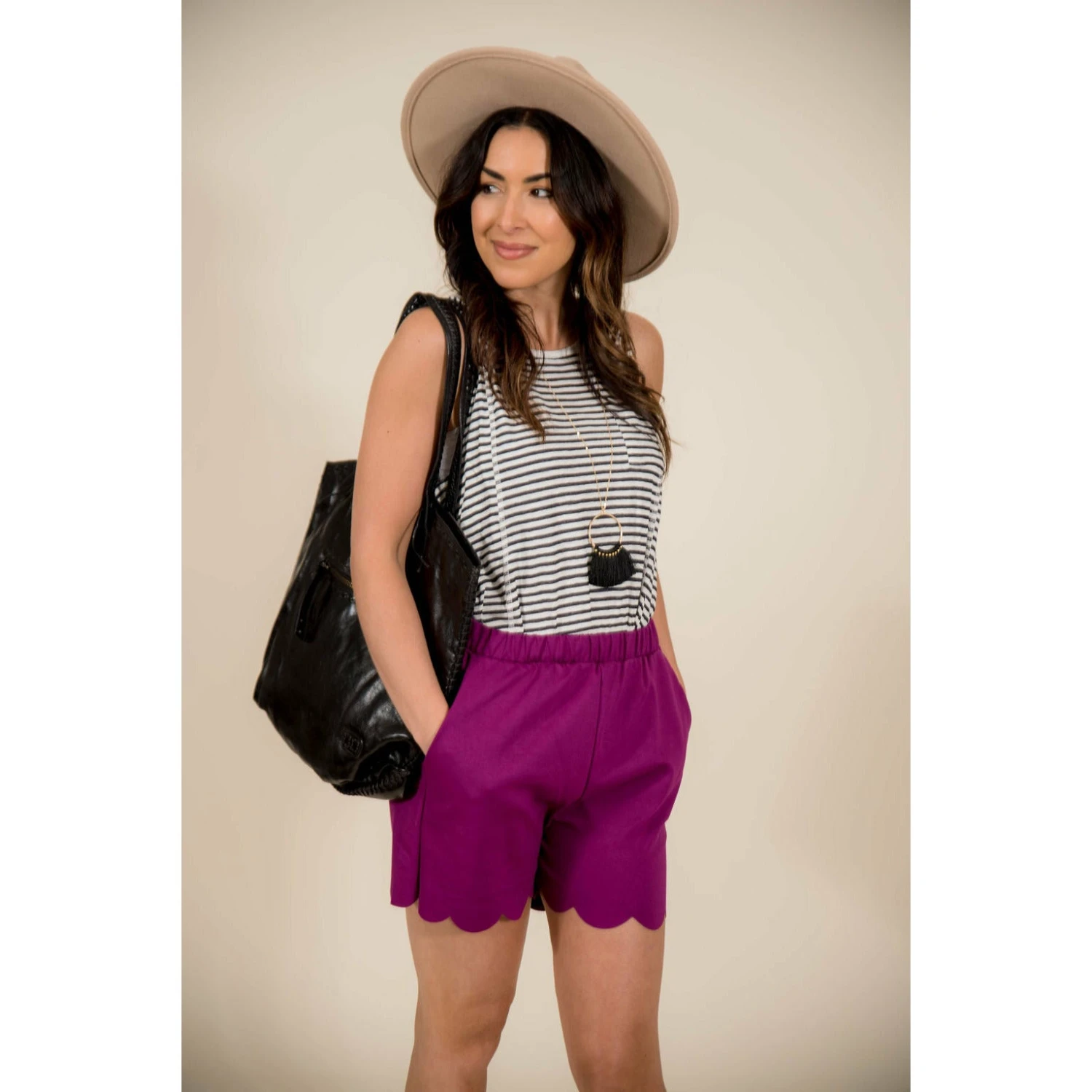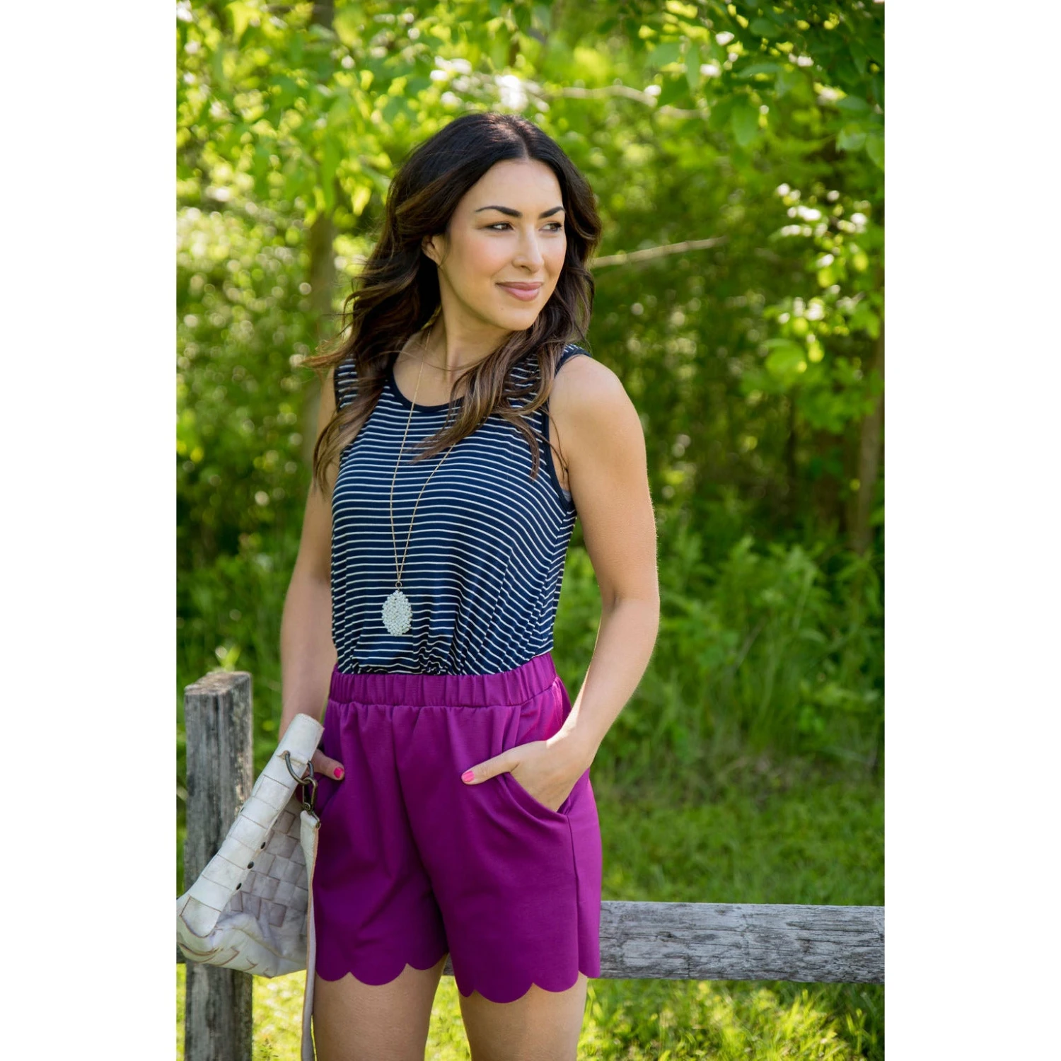We love the scalloped detail on bottom of these shorts. These shorts are super comfortable and they have a little bit of stretch for a great fit. Pair these shorts with a blouse for a complete look.