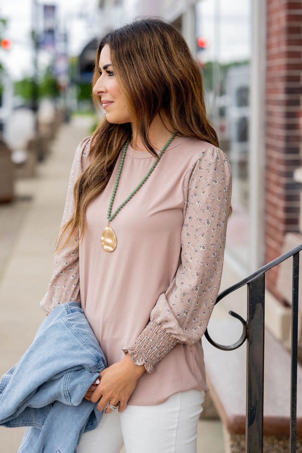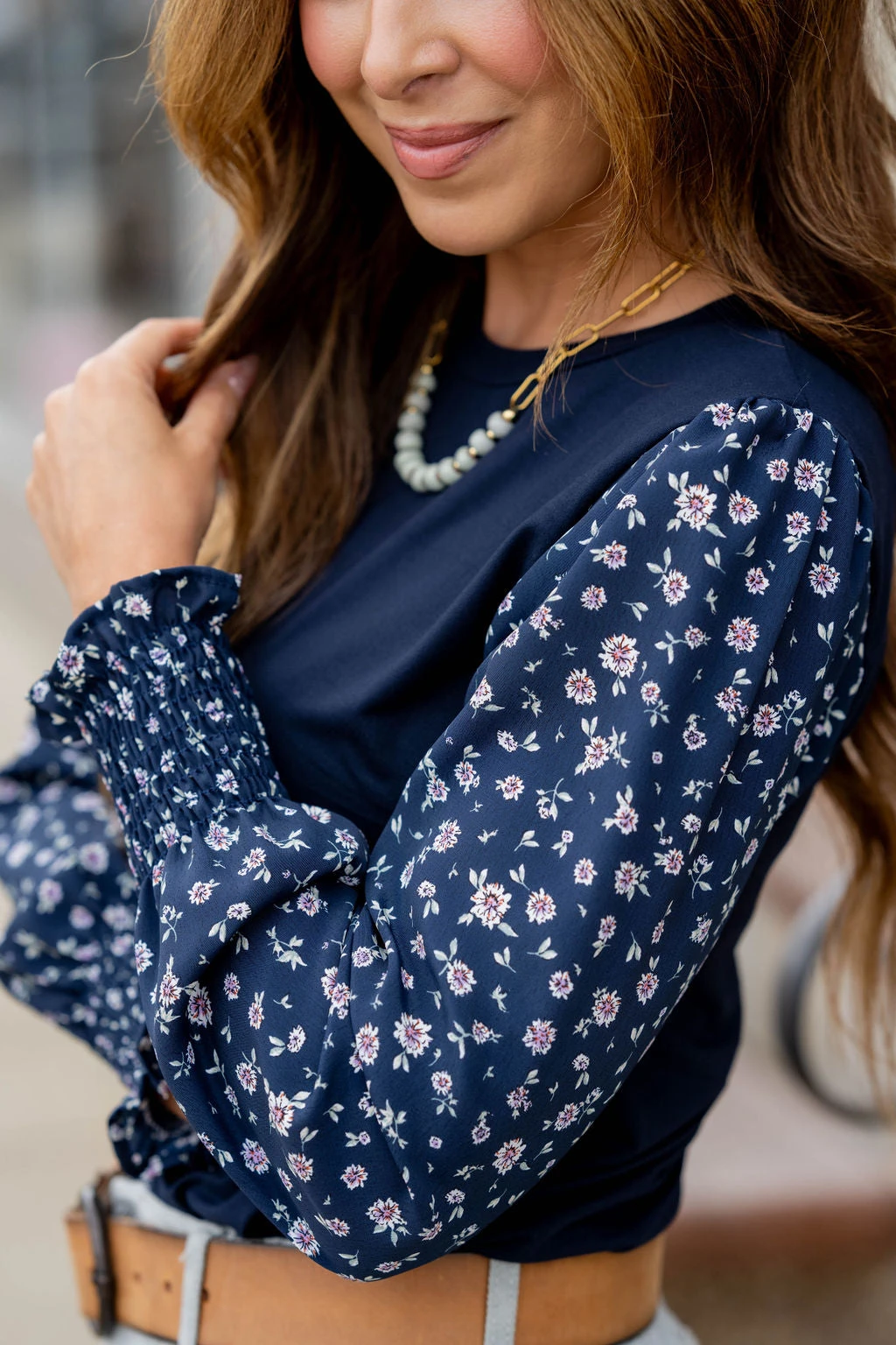 How cute is this blouse?! We’re loving the floral print sleeves against the solid tee-style body! Pair with a bold-colored Betsey’s Jegging and a statement necklace for the office or the classroom, or with your favorite denim for a cute on-the-go look! Chilly? Add a vest!