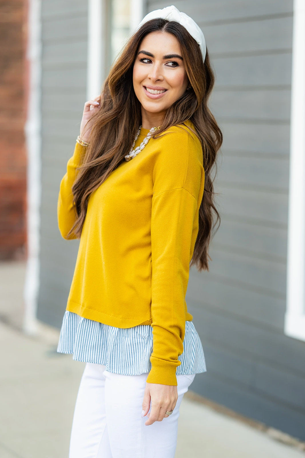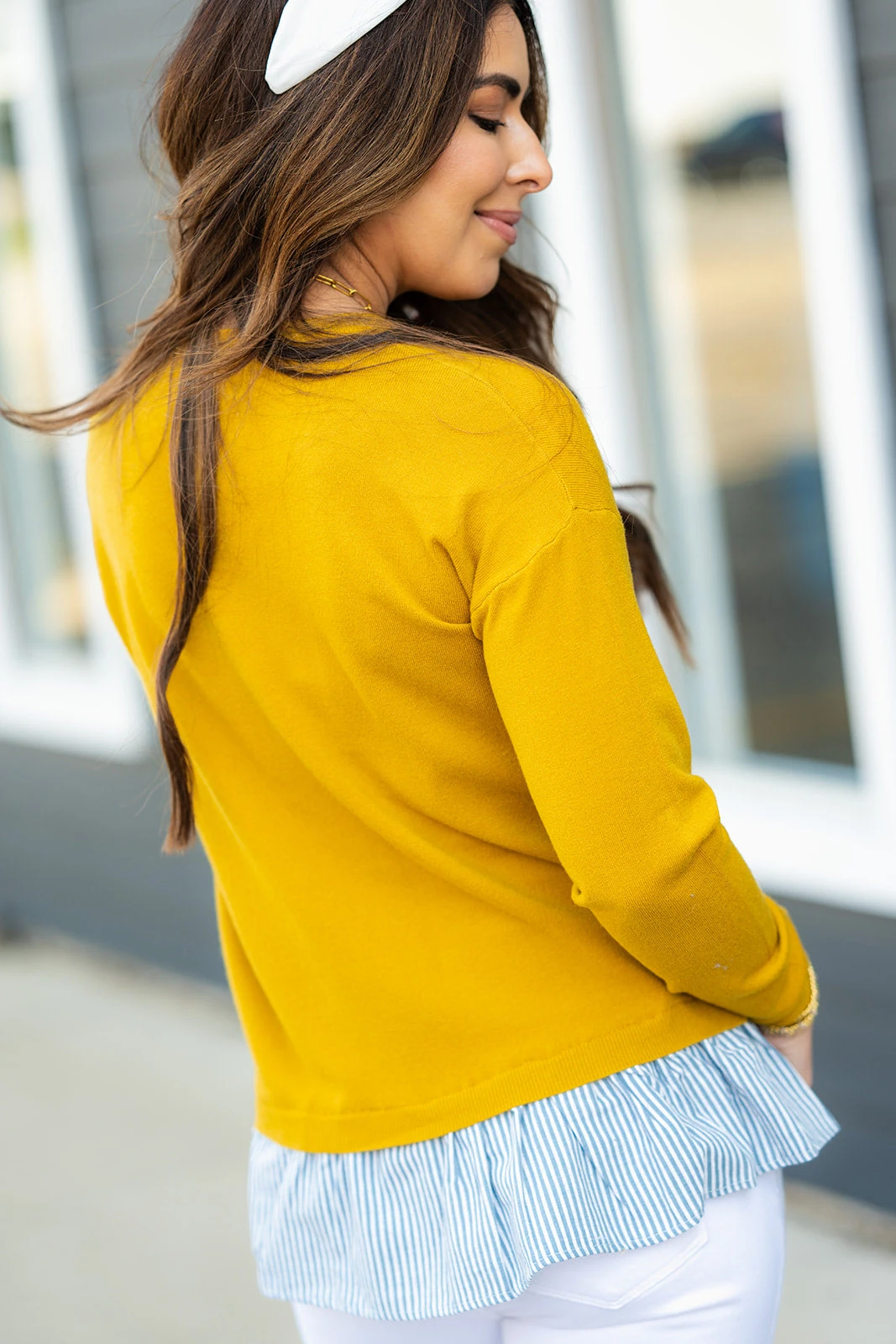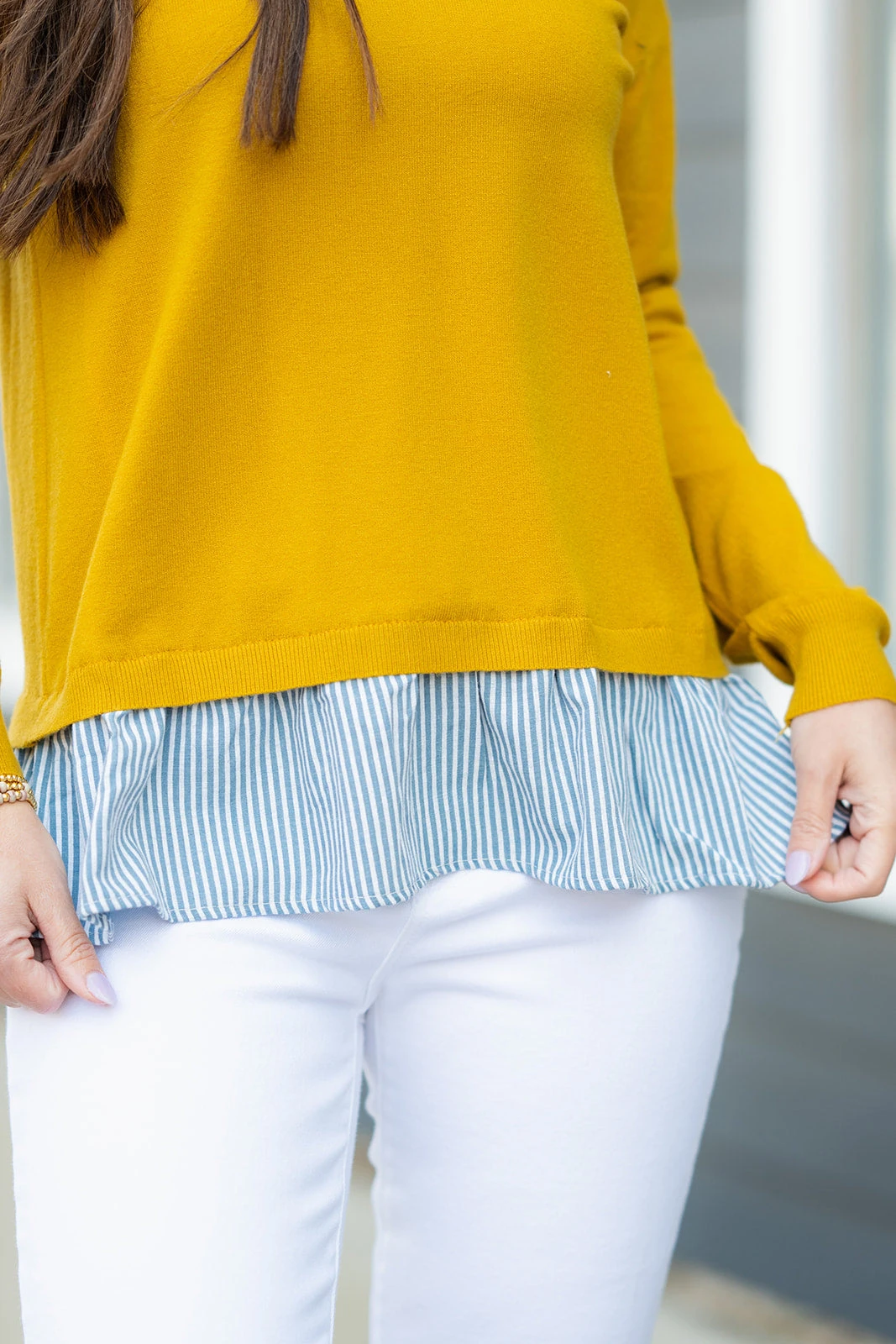 How cute is this tee? The addition of the striped ruffle to the bottom sets this apart from a simple long sleeve tee. Add a statement necklace and a pair of our Betsey’s Jeggings for a comfy yet still cute and trendy look!