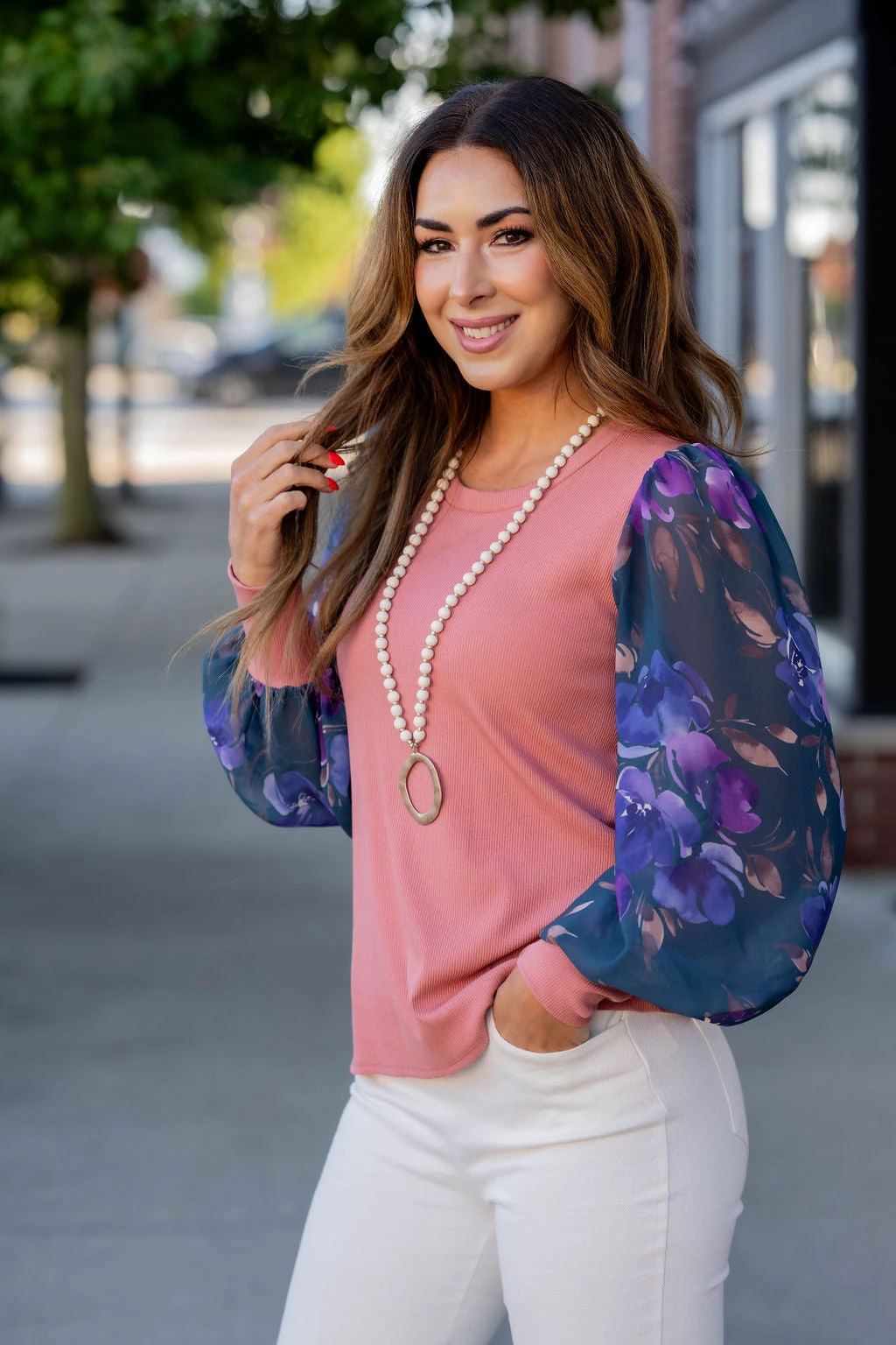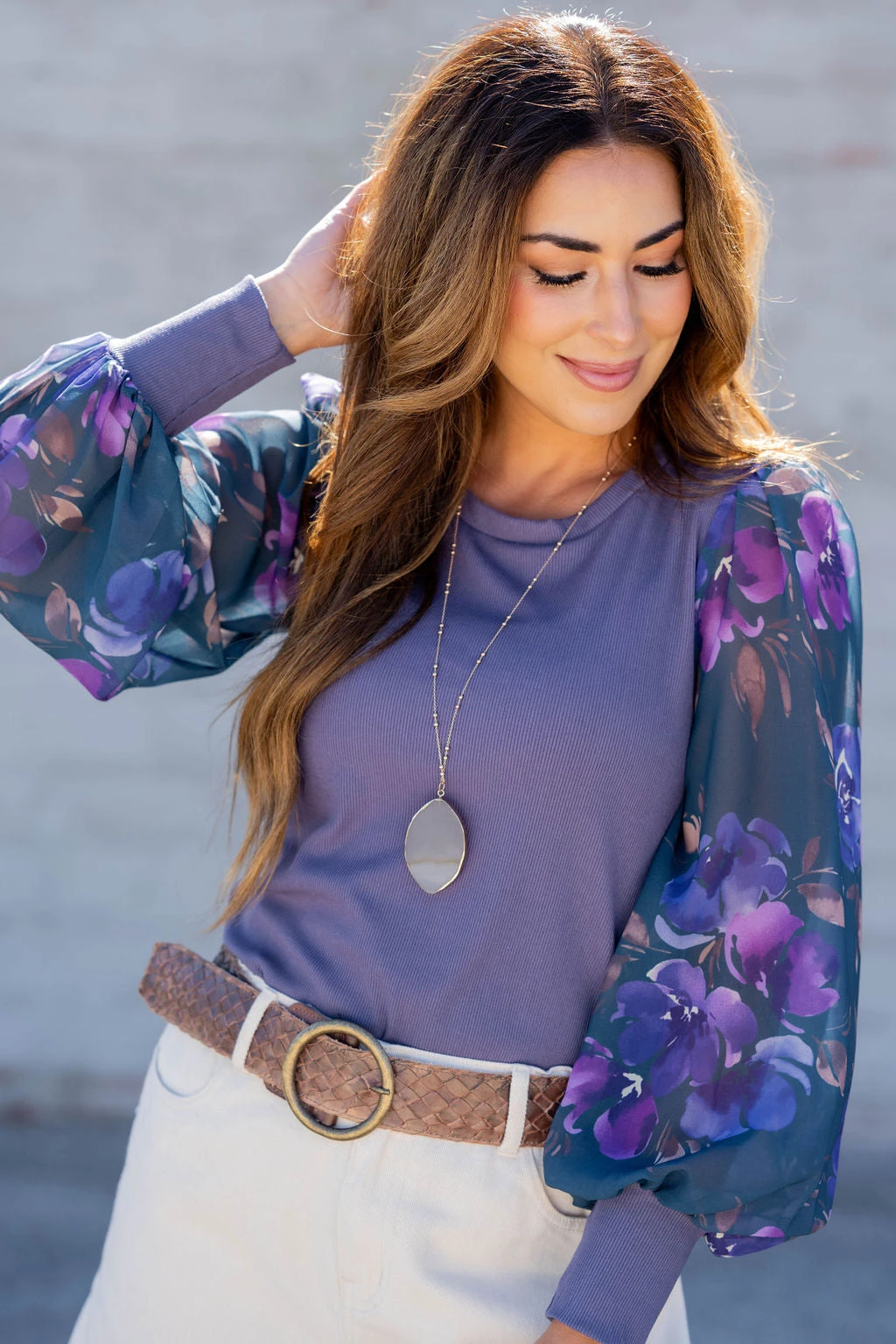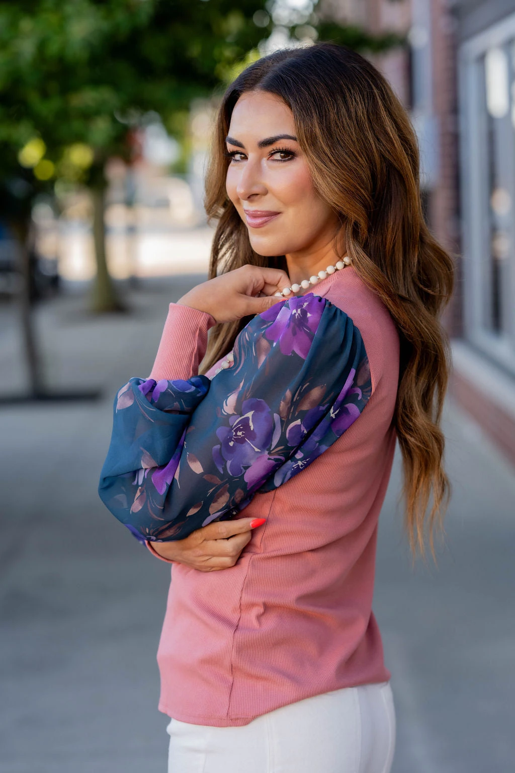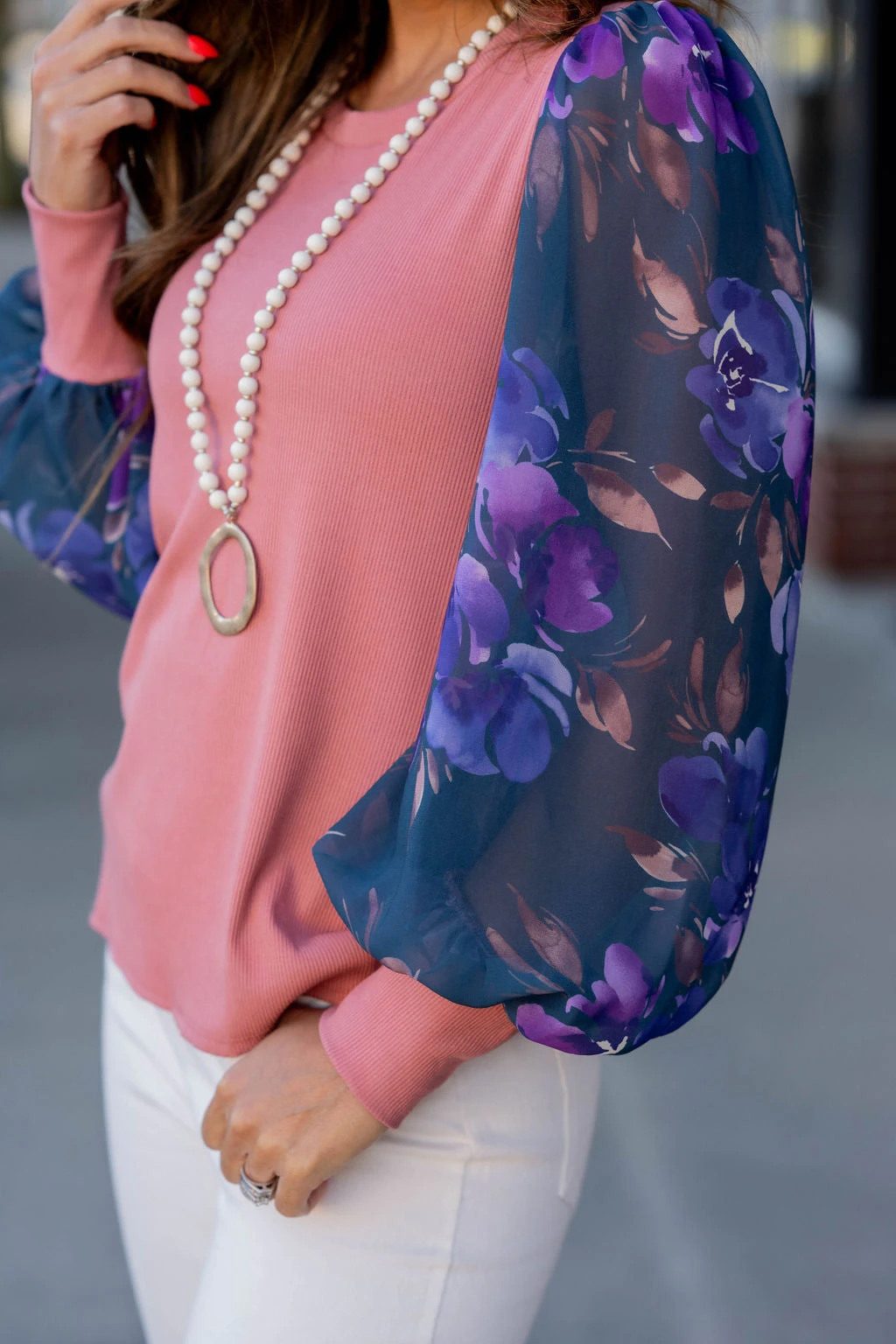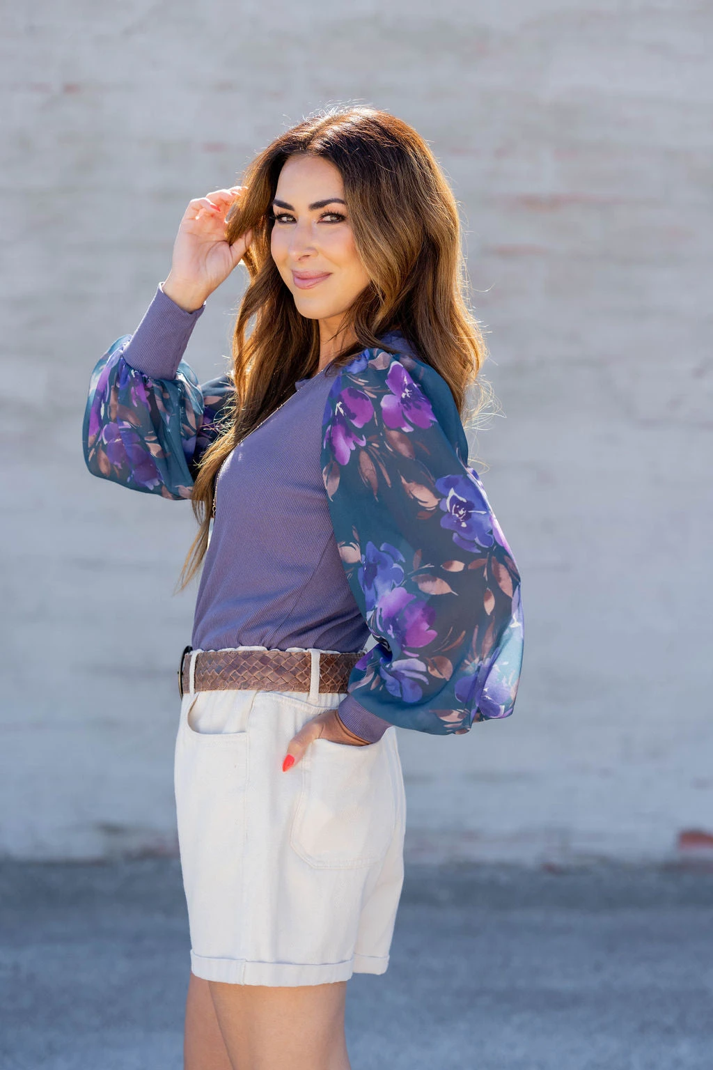 How cute is this tee?! We’re loving the sheer floral print on the sleeves against the solid ribbed body and cuff accents! Pair with a bold-colored Betsey’s Jegging and a statement necklace for the office or the classroom, or with your favorite denim for a cute on-the-go look! Chilly? Add a vest!