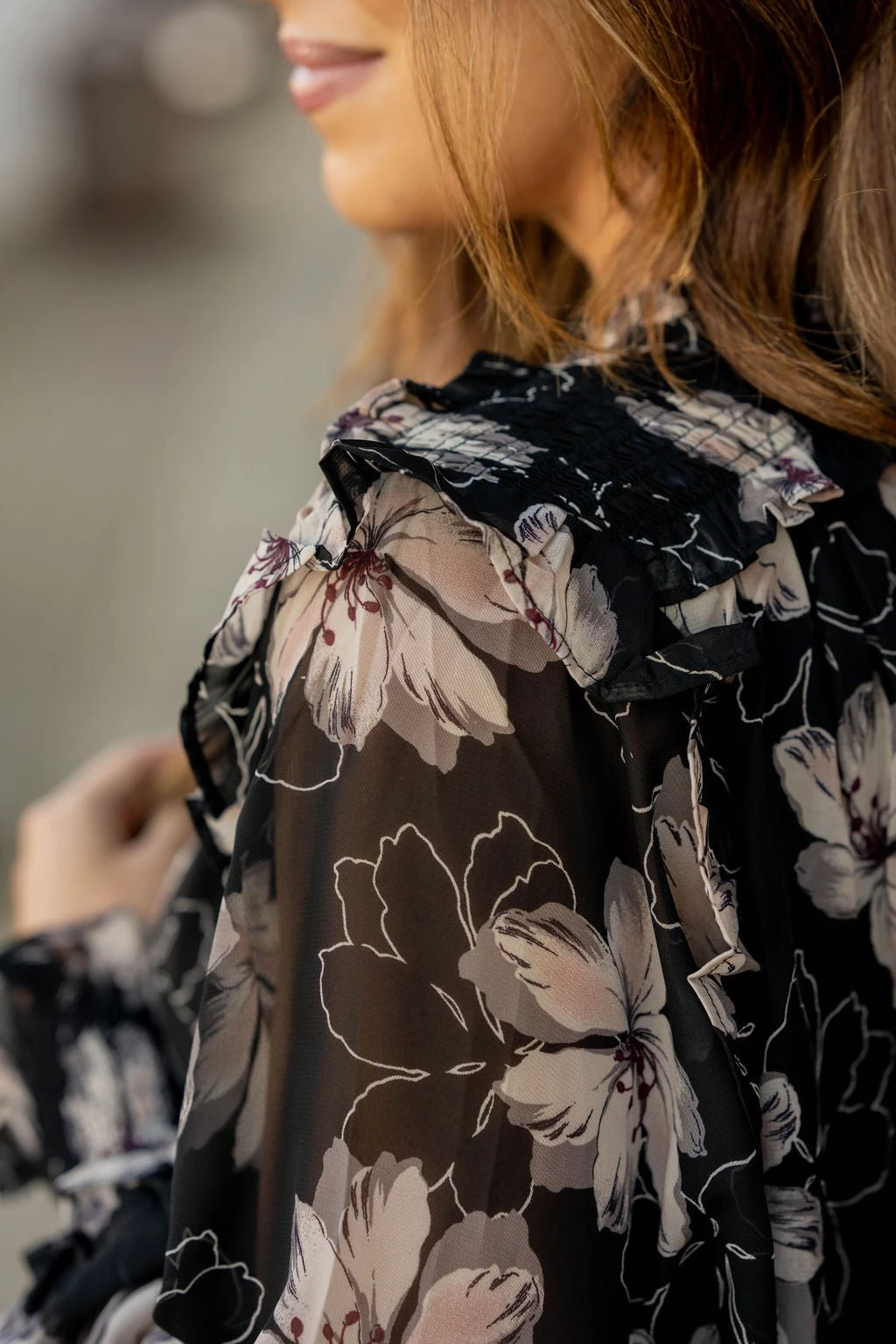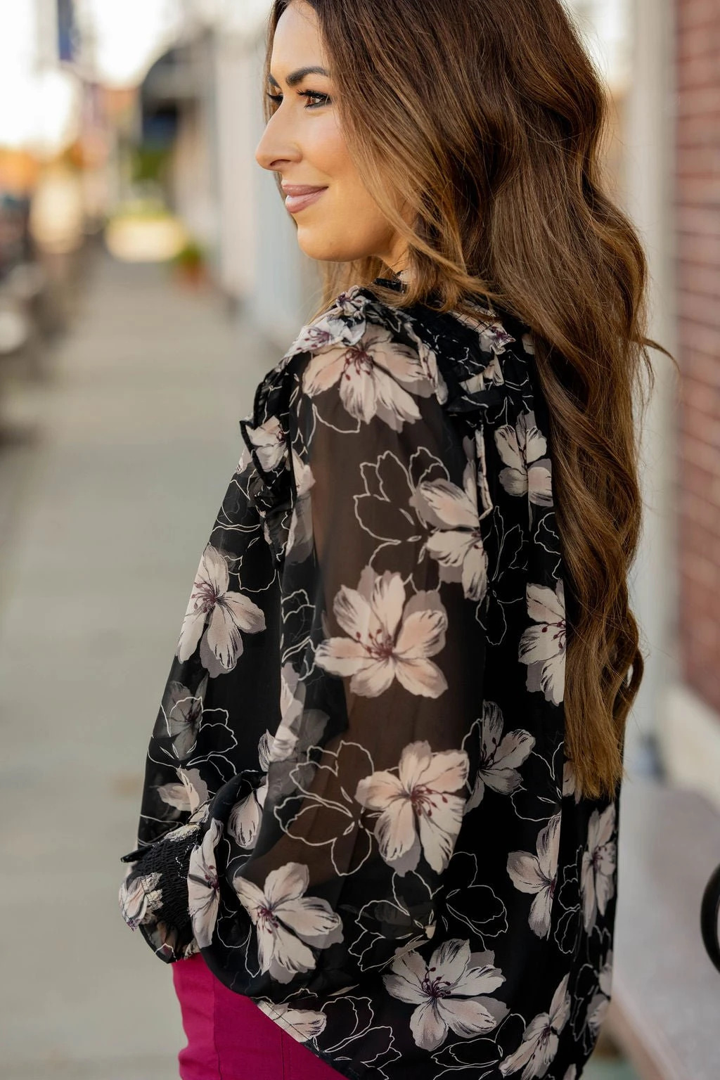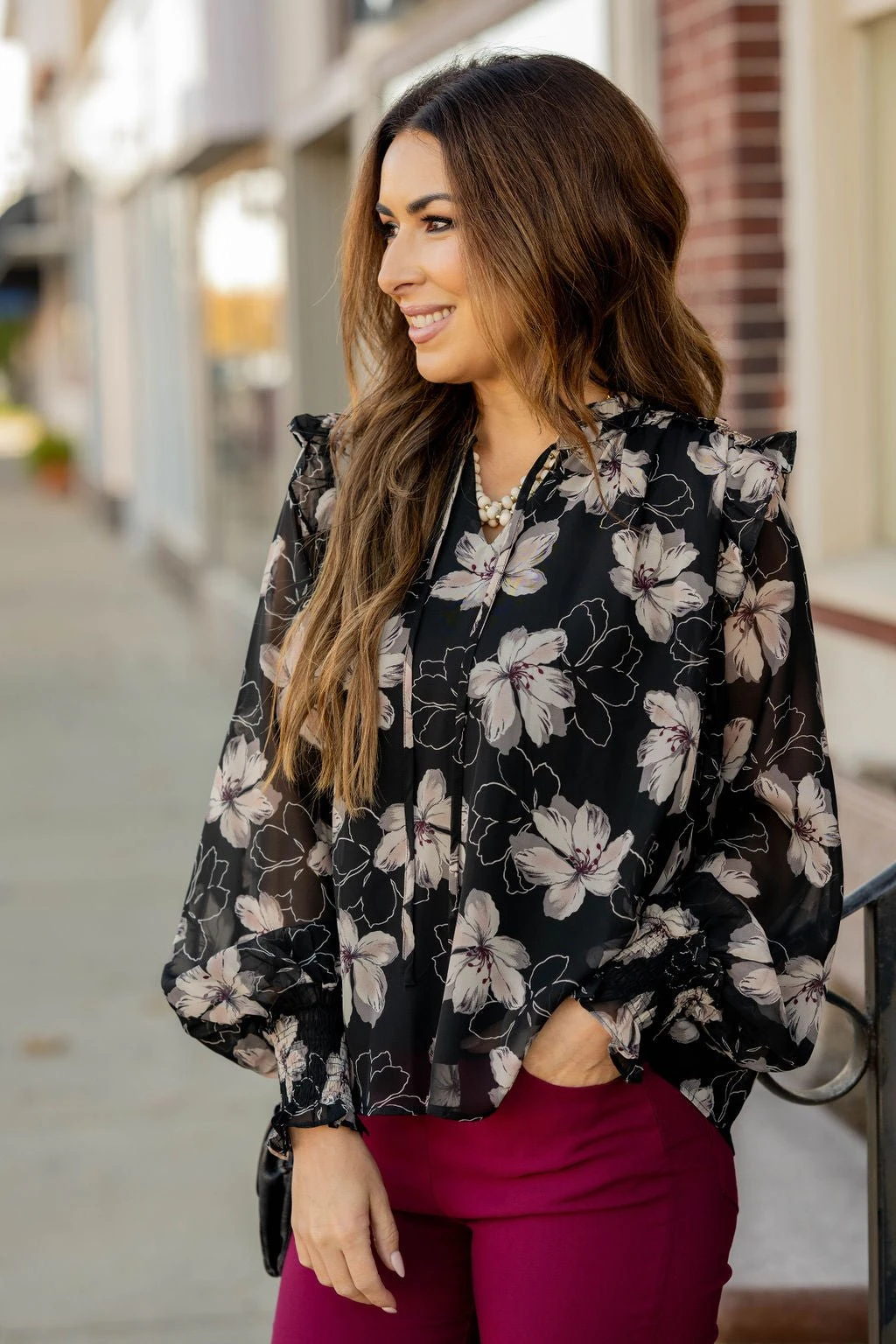 This floral blouse is unlike anything else in your wardrobe! The lightweight and breathable material makes this ideal for any season! Pair with your favorite denim, a bold colored pair of our Betsey’s Jeggings, or even just some leggings for a unique look!
